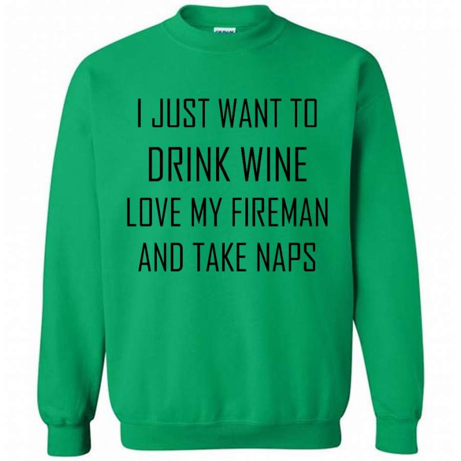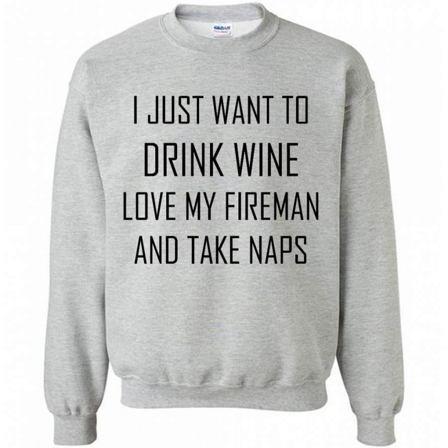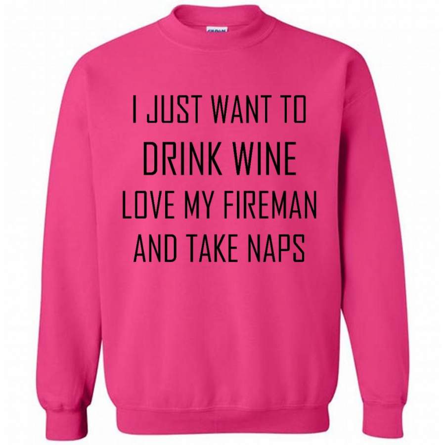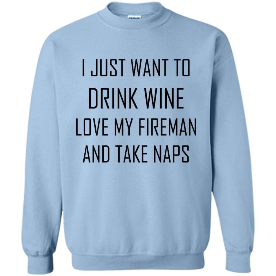 I Just Want To Drink Wine Love My Fireman And Take Naps – Gildan Crewneck Sweatshirt