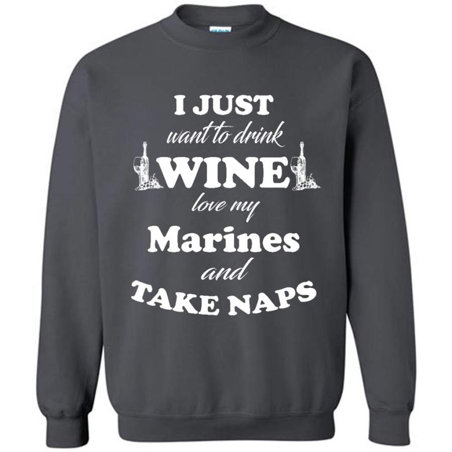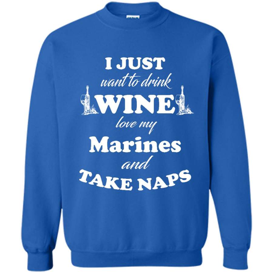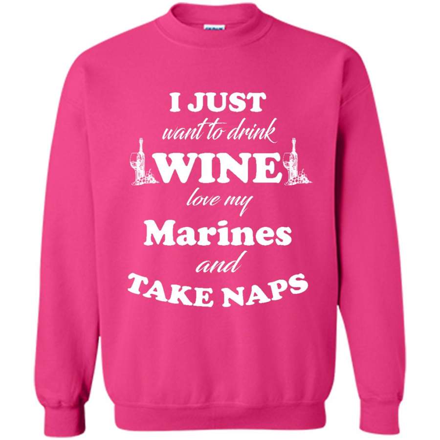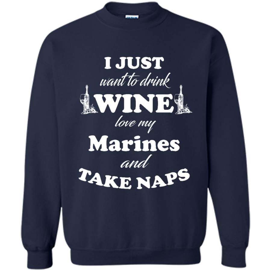 I Just Want To Drink Wine Love My Marines And Take Naps – Gildan Crewneck Sweatshirt