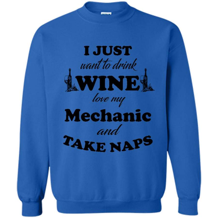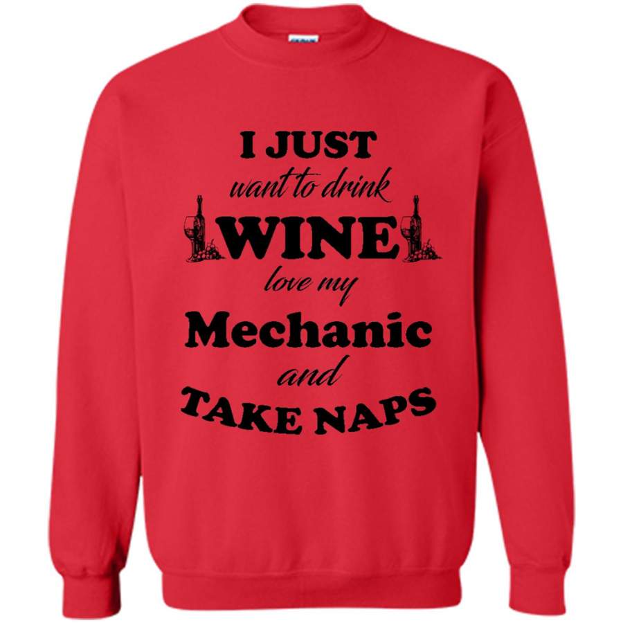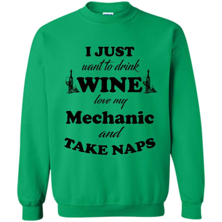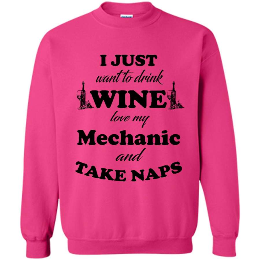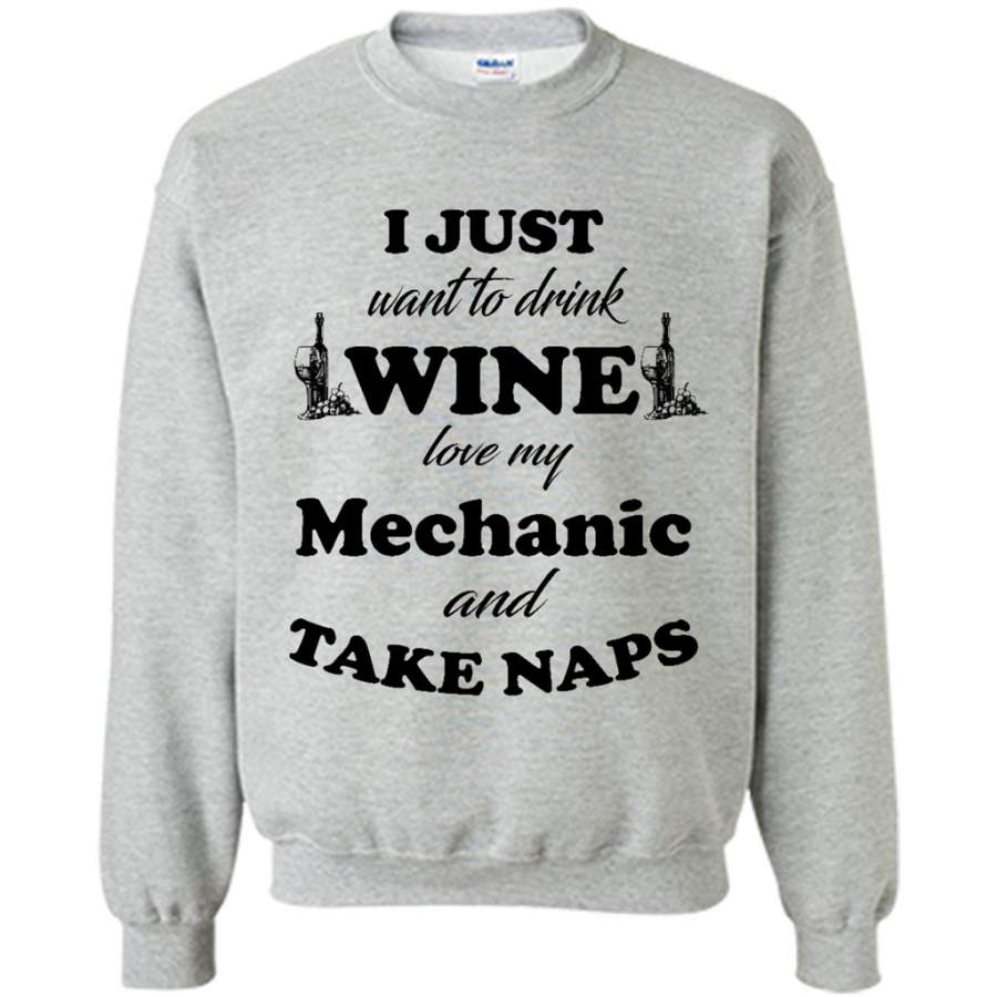 I Just Want To Drink Wine Love My Mechanic And Take Naps (w) – Gildan Crewneck Sweatshirt