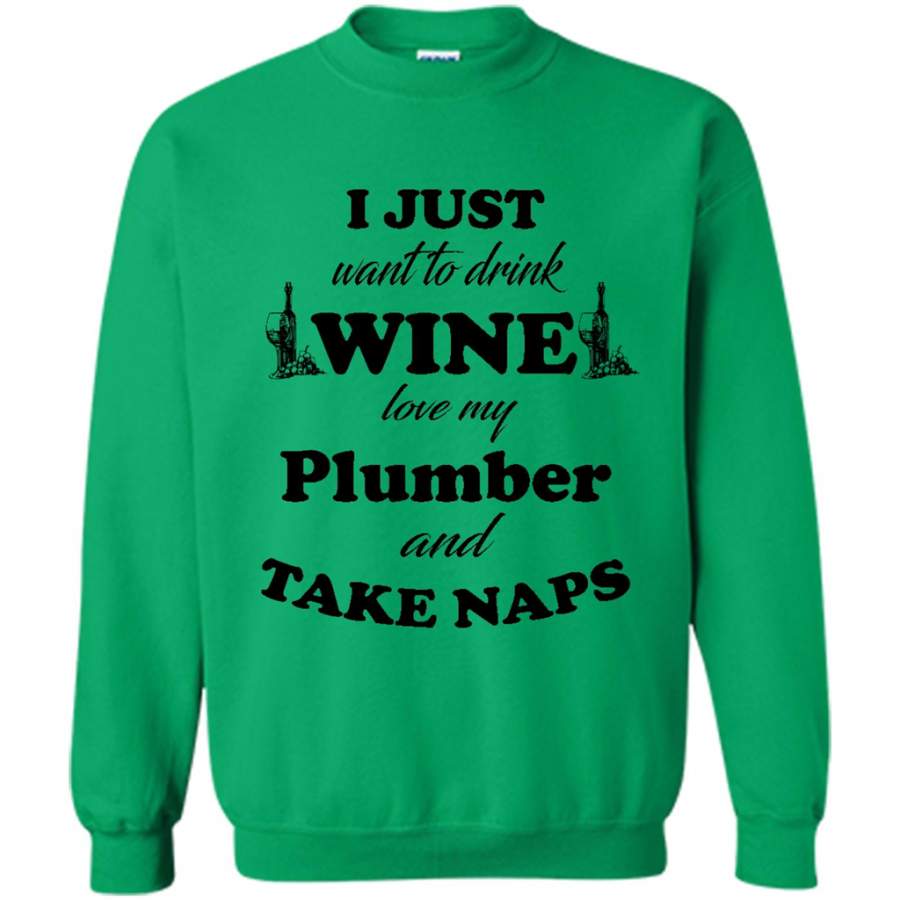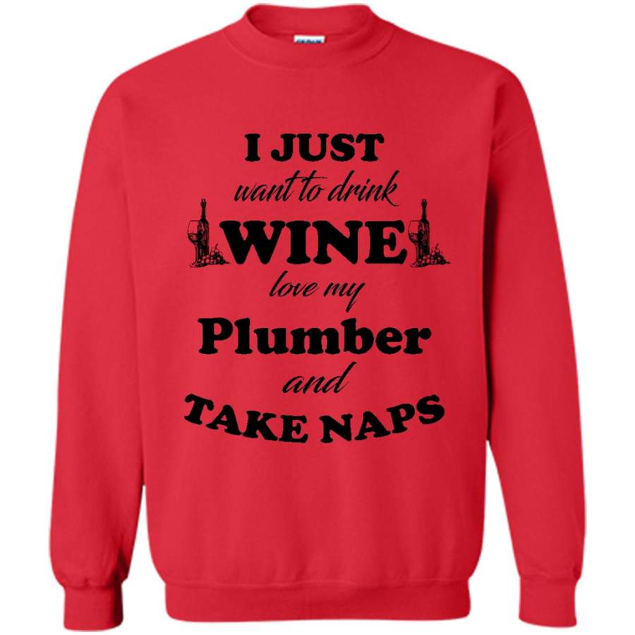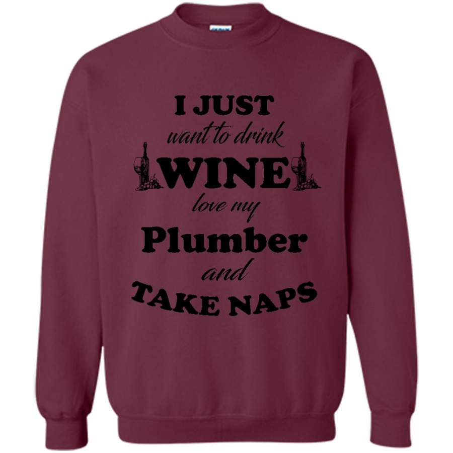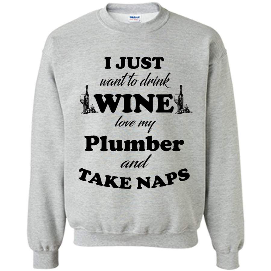 I Just Want To Drink Wine Love My Plumber And Take Naps (w) – Gildan Crewneck Sweatshirt