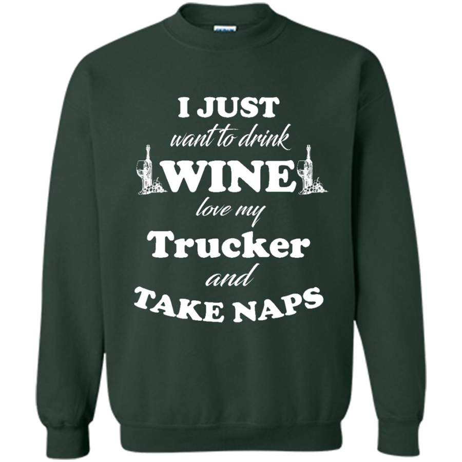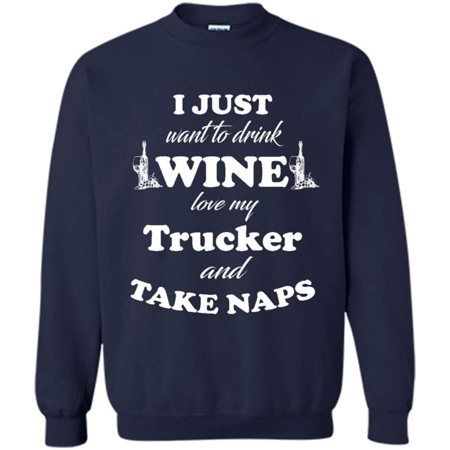 I Just Want To Drink Wine Love My Trucker And Take Naps – Gildan Crewneck Sweatshirt