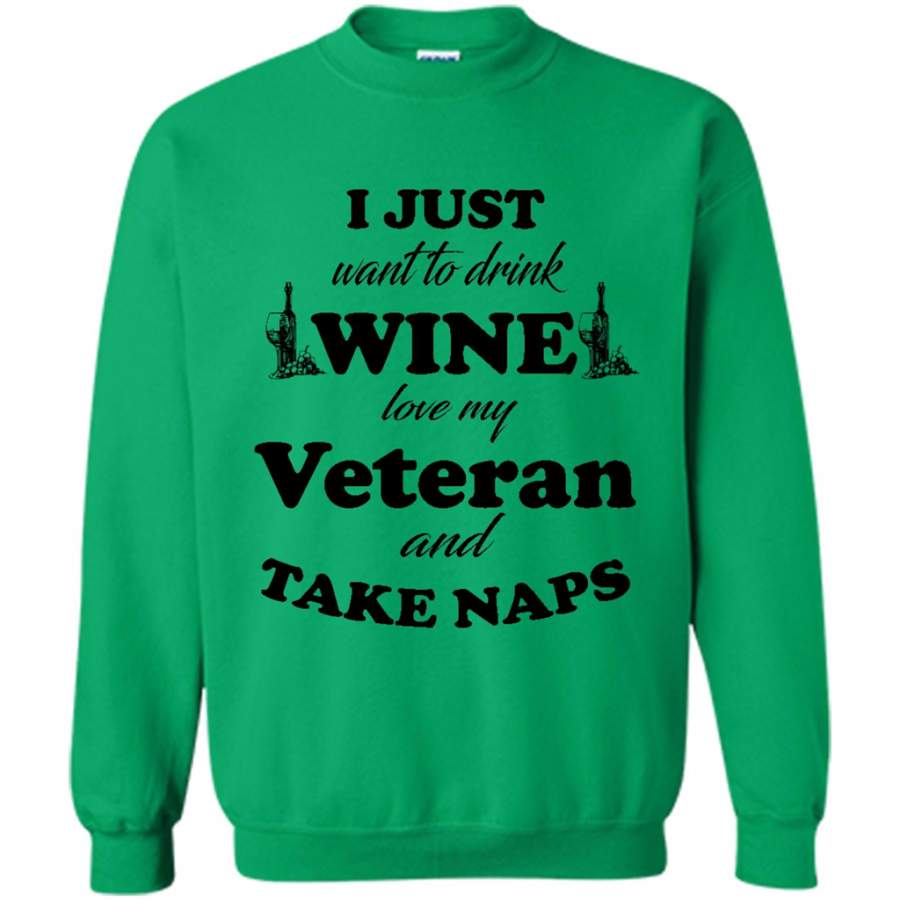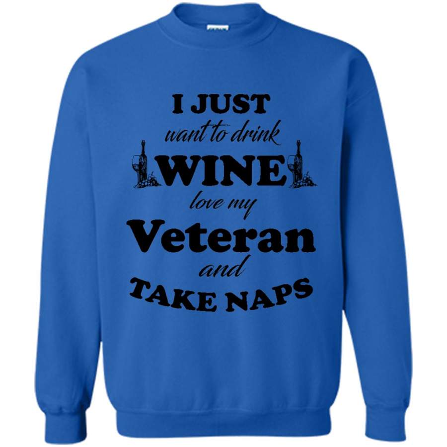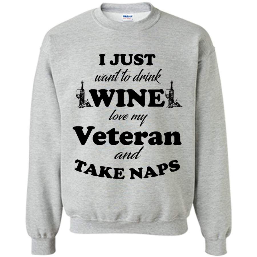I Just Want To Drink Wine Love My Veteran And Take Naps (w) – Gildan Crewneck Sweatshirt