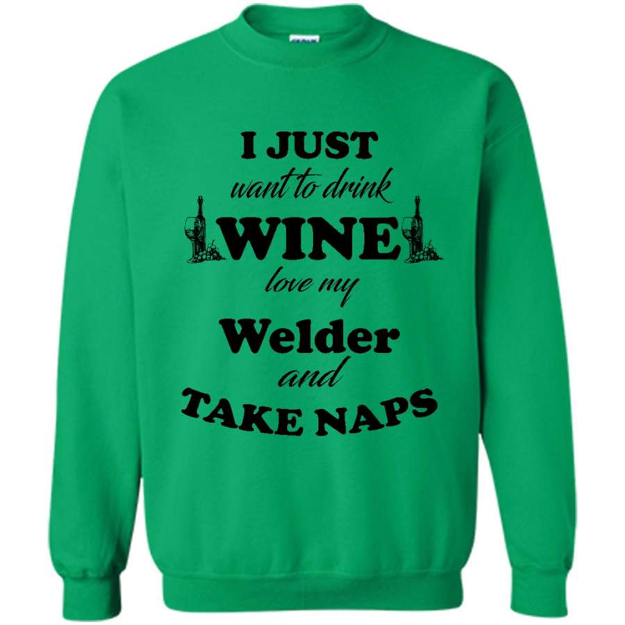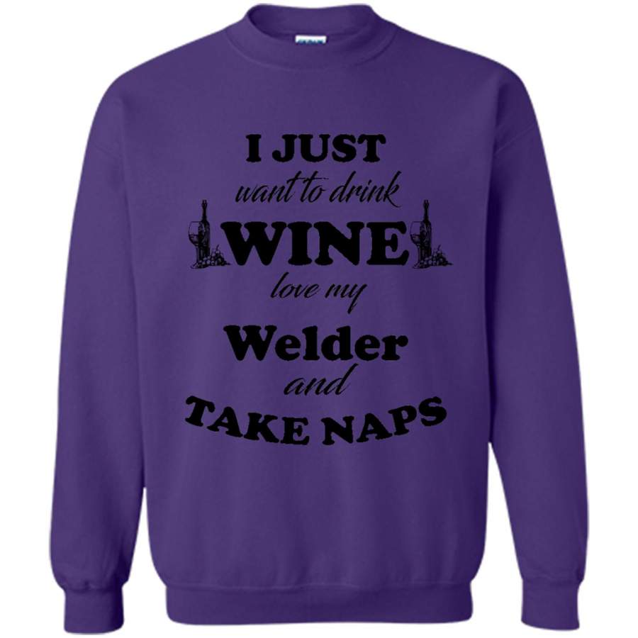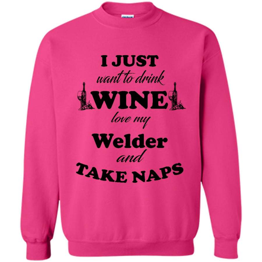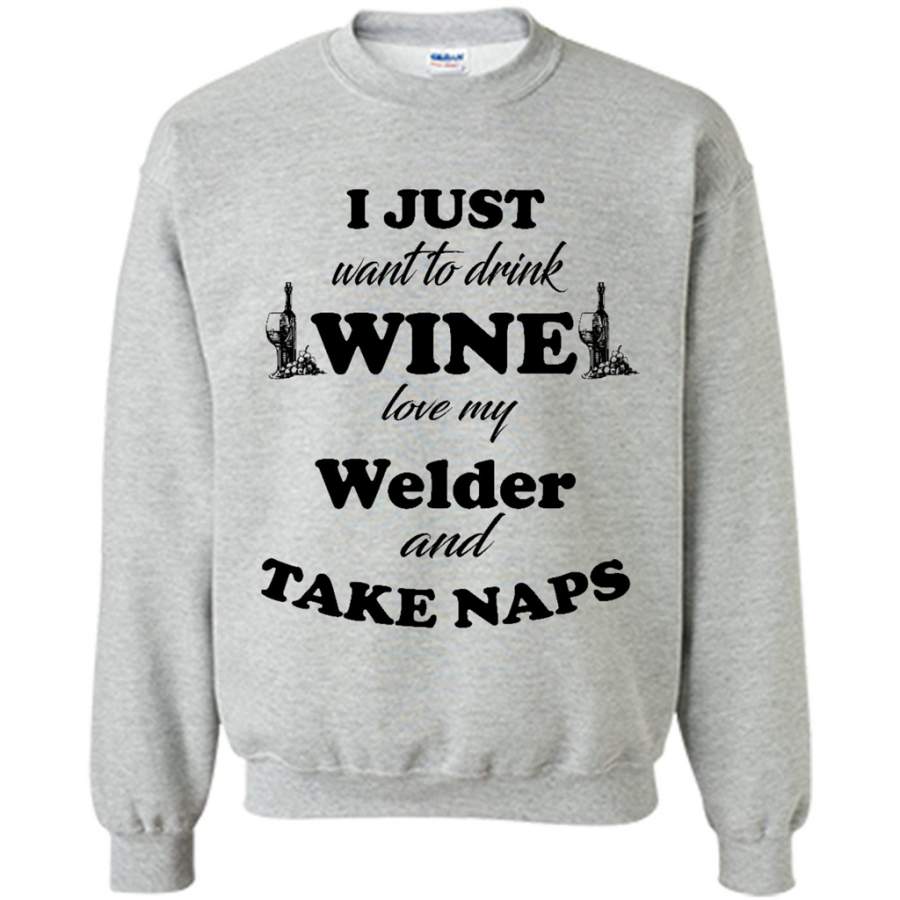 I Just Want To Drink Wine Love My Welder And Take Naps (w) – Gildan Crewneck Sweatshirt