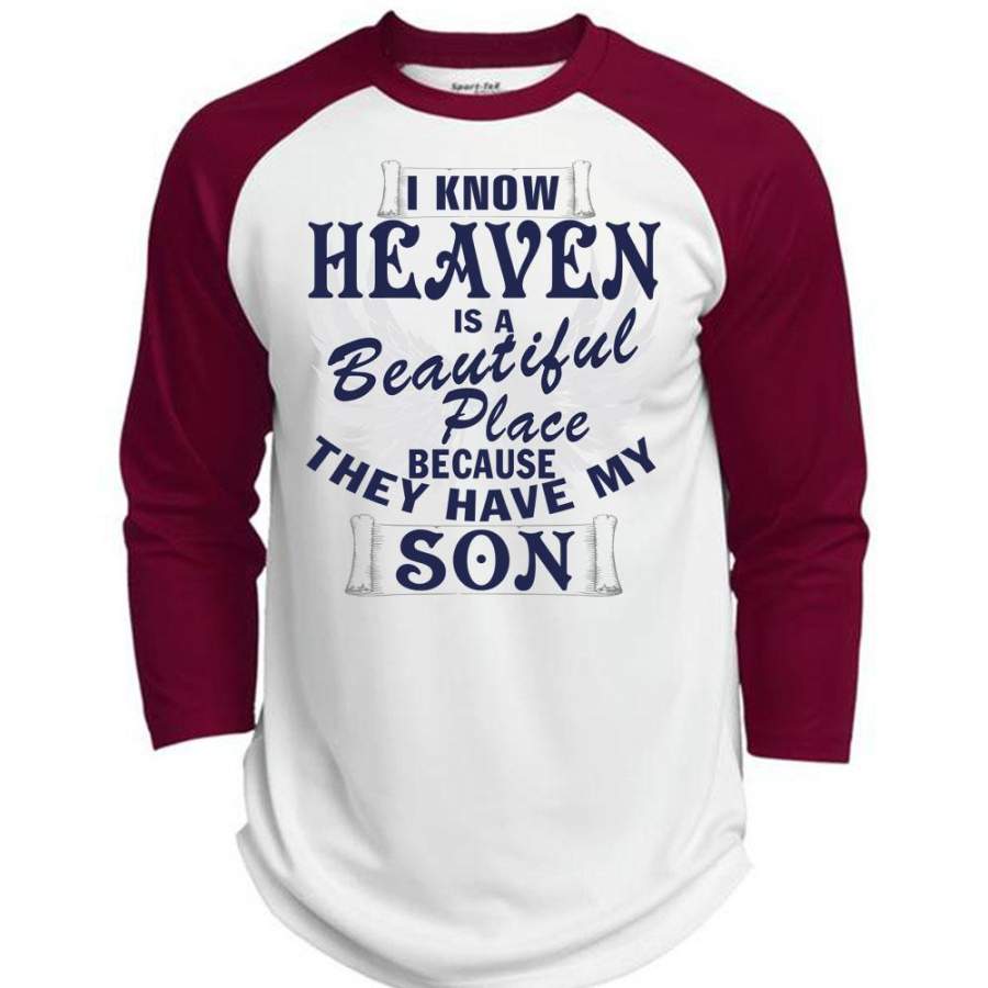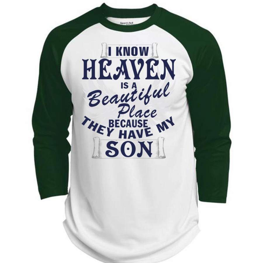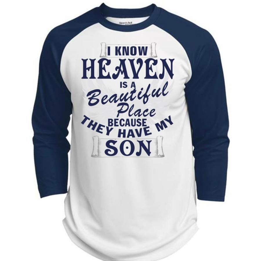 I Know Heaven Is A Beautiful Place T Shirt, I Love My Son T Shirt, Awesome T-Shirts (Polyester Game Baseball Jersey)