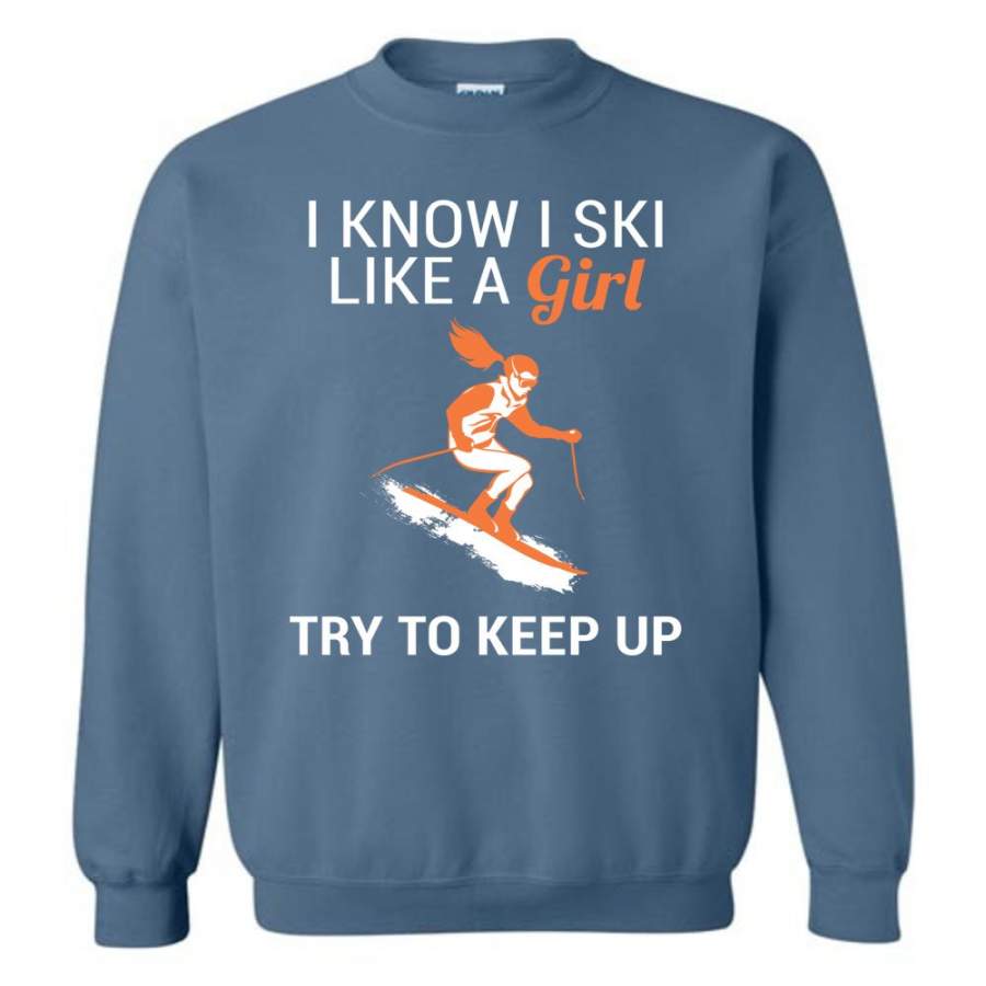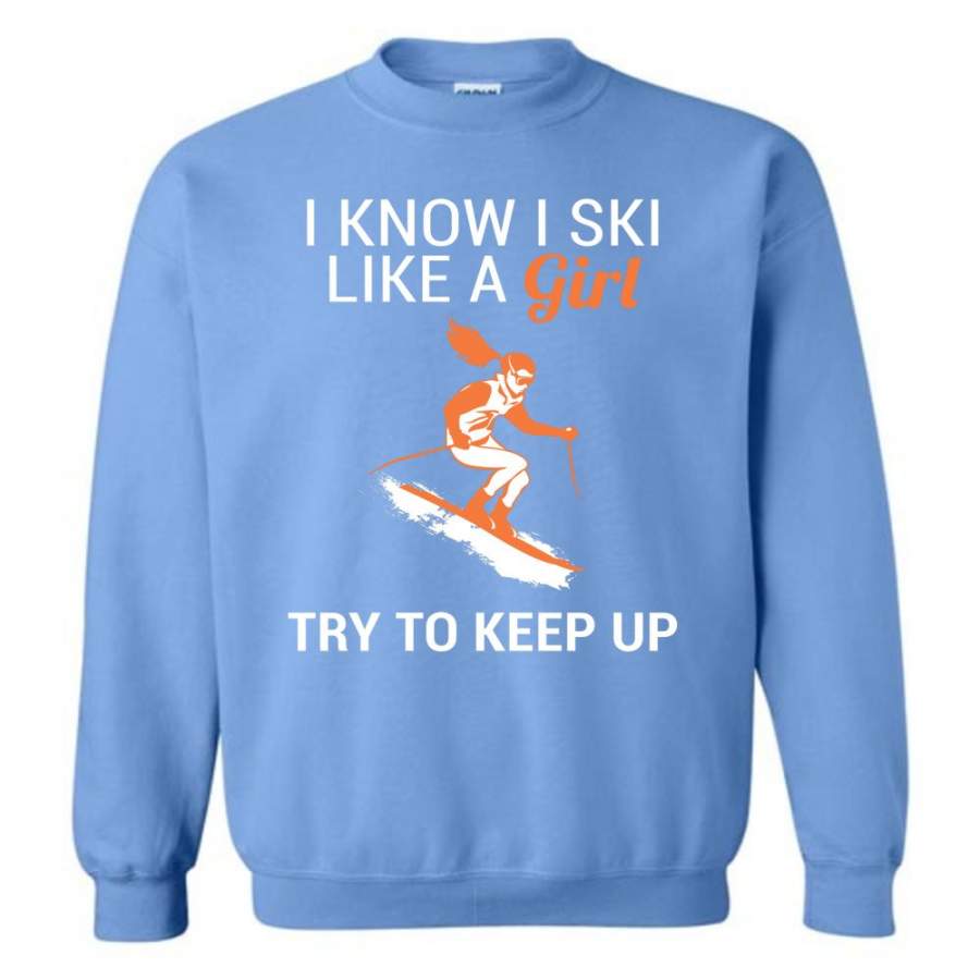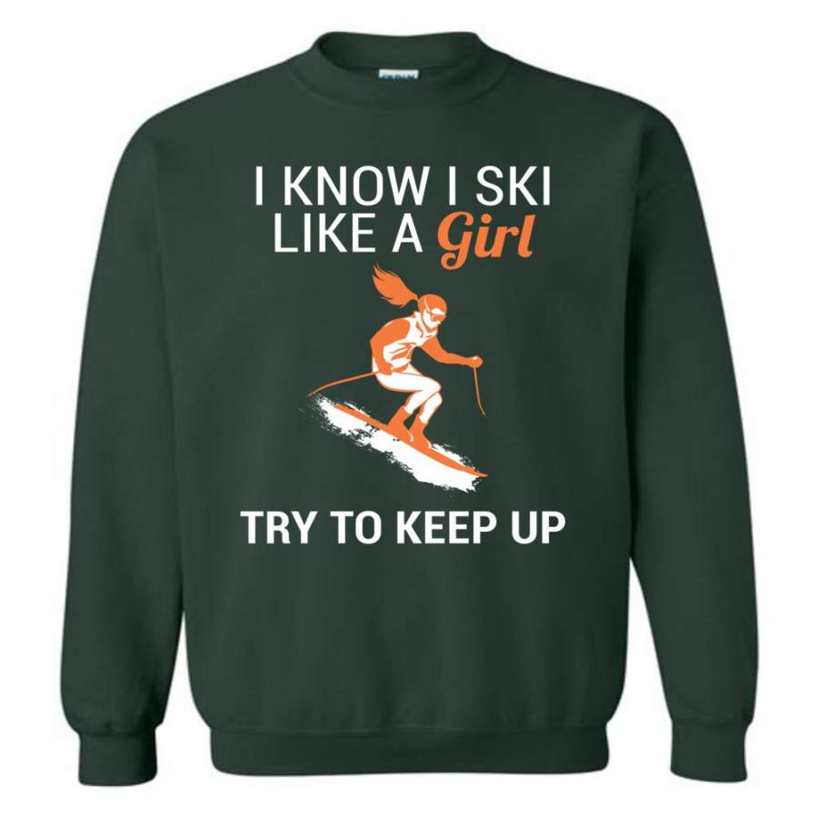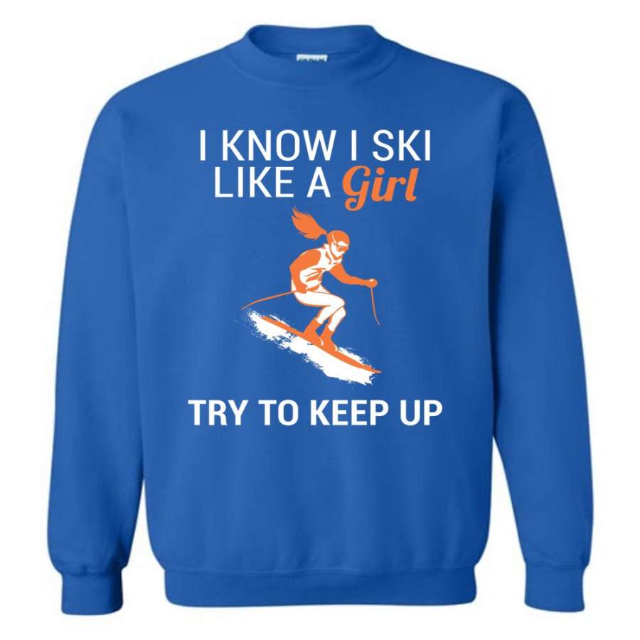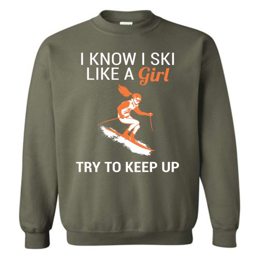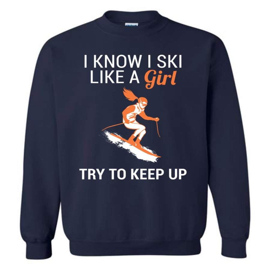 I Know I Ski Like A Girl T Shirt Try To Keep Up Love Skiing Sweatshirt