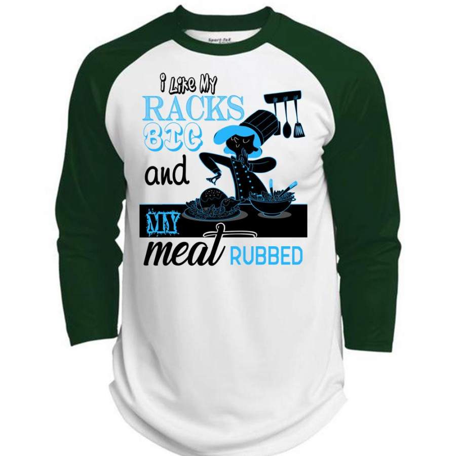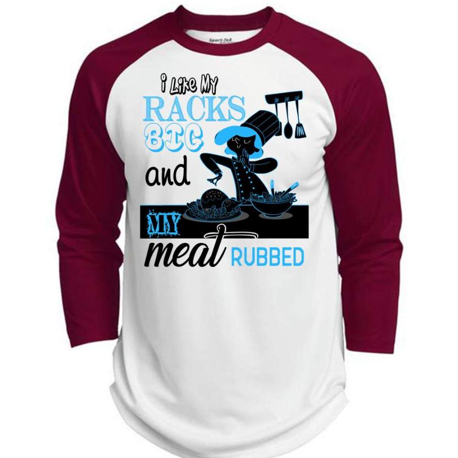 I Like My Racks Big And My Meat Rubbed T Shirt, I Love Cooking T Shirt, Awesome T-Shirts (Polyester Game Baseball Jersey)