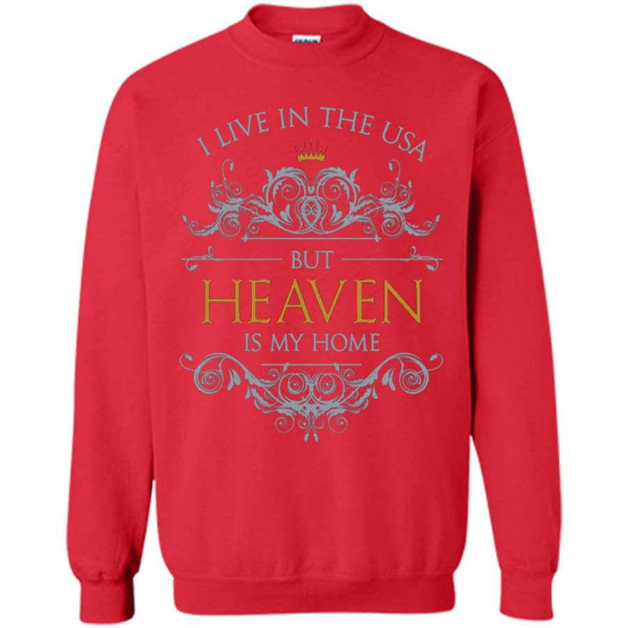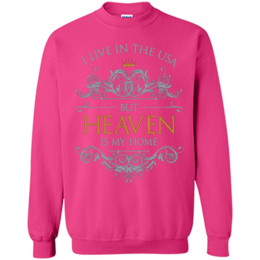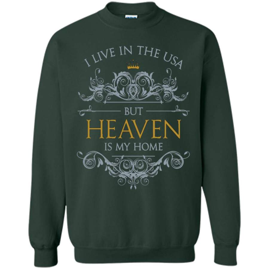I Live in The USA But Heaven is My Home Love God Jesus – Gildan Crewneck Sweatshirt