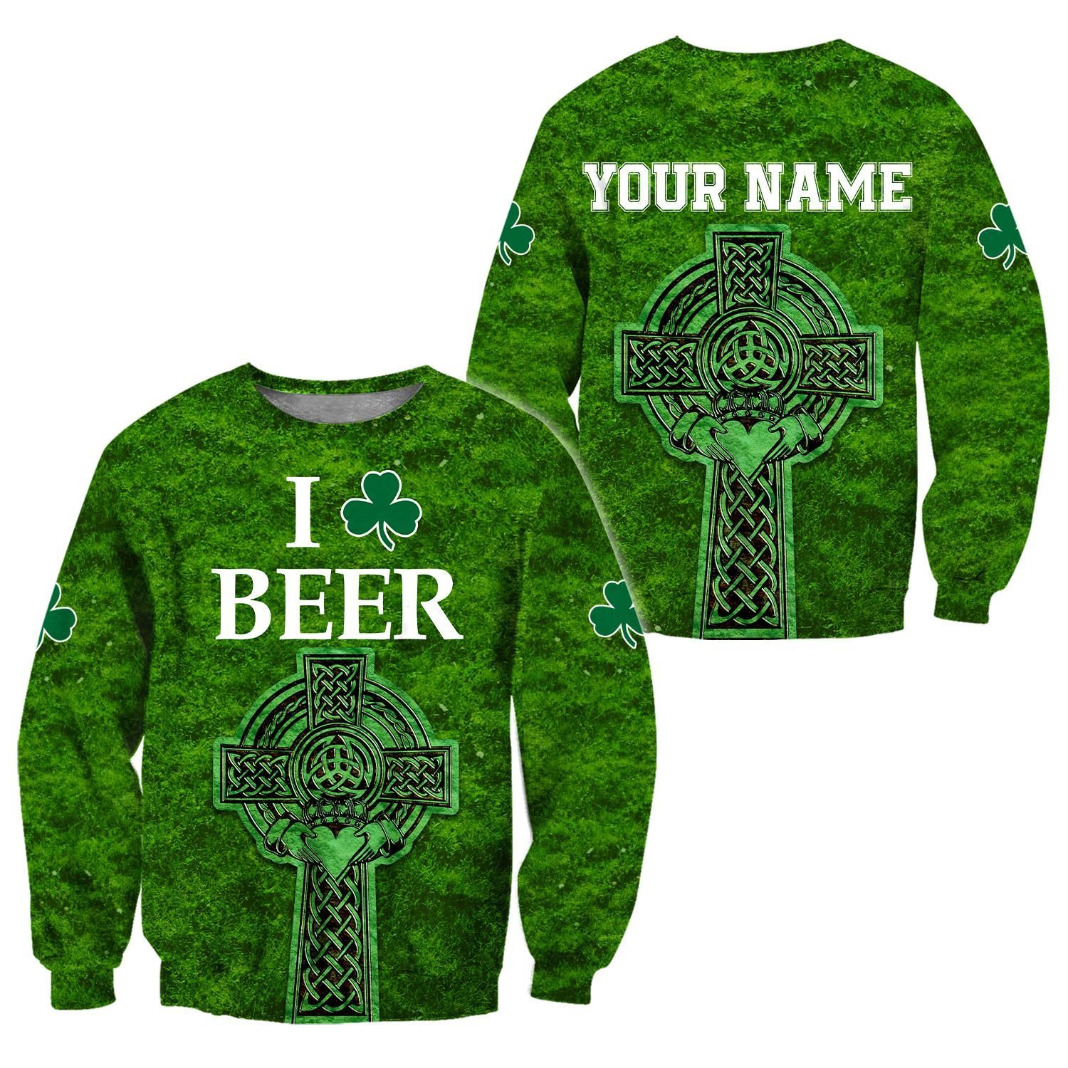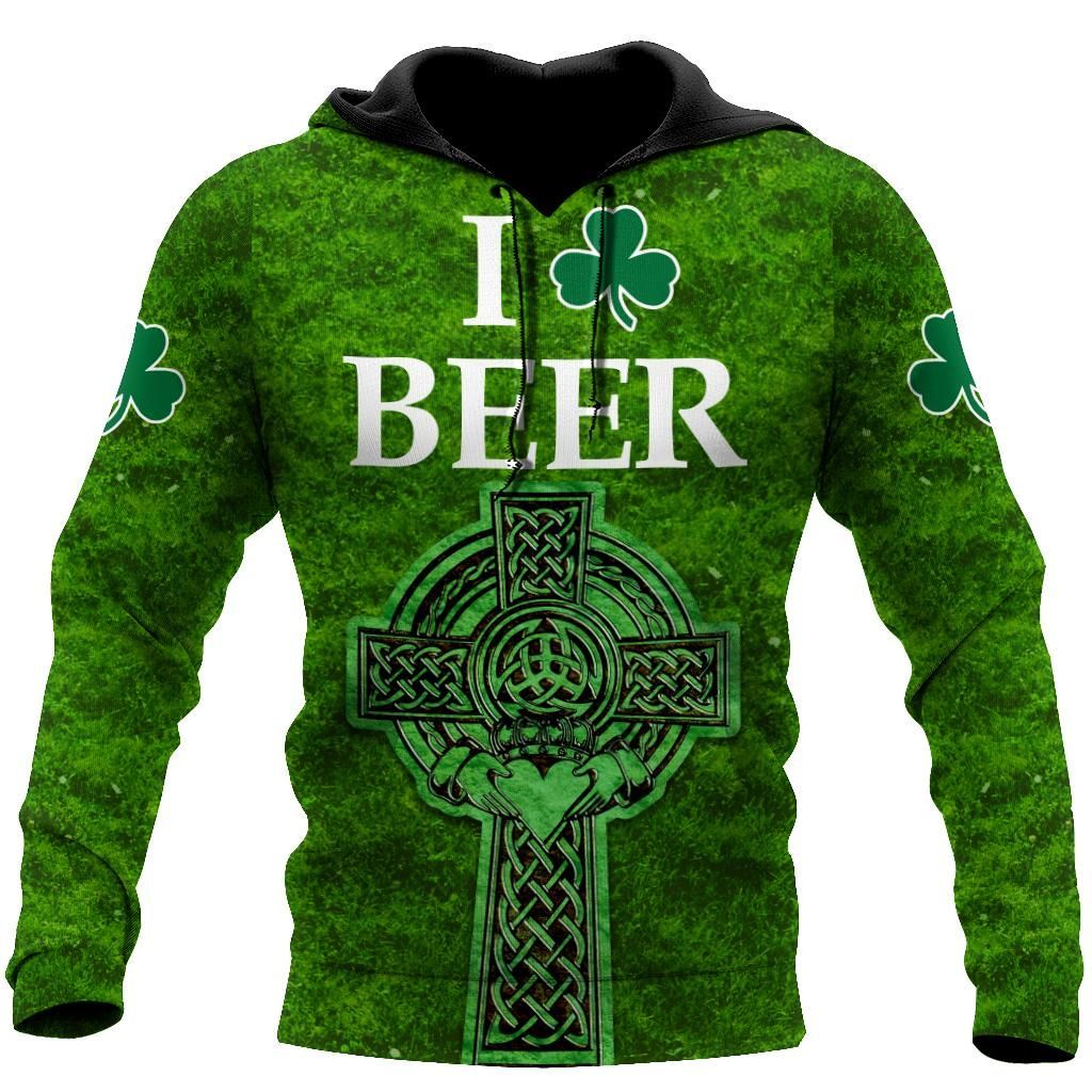 I Love Beer St.Patrick Day 3D Hoodie Shirt For Men And Women Lam