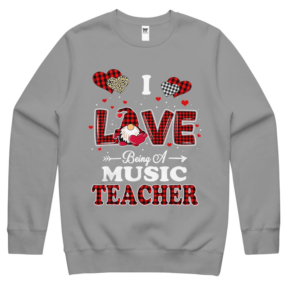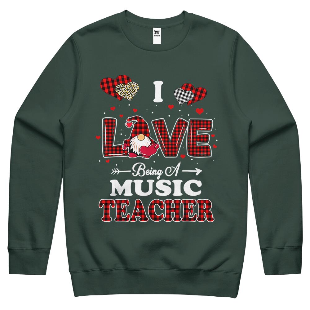 I Love Being A Music Teacher Valentines Day Gnome Crewneck Sweatshirt