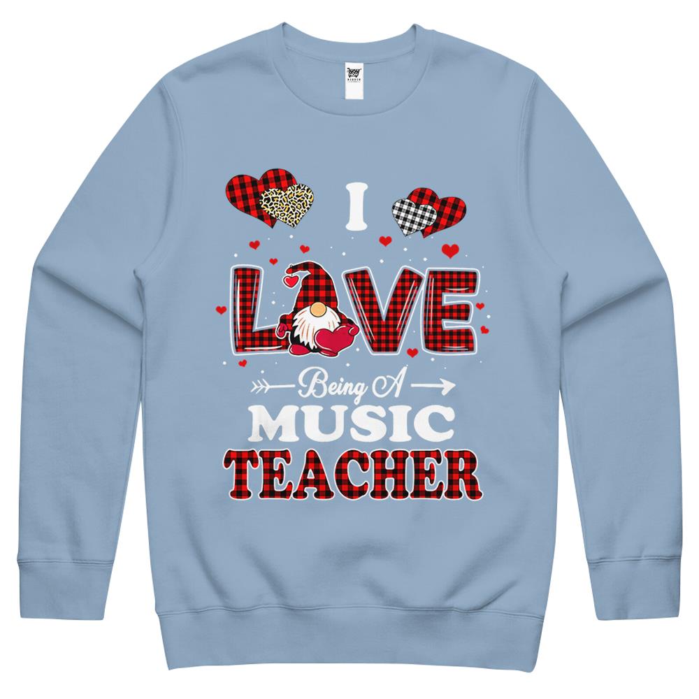 So whether you're looking to show off your own name or create a personalized gift for someone special, LateAndLow Store has got you covered. Start designing your own custom I Love Being A Music Teacher Valentines Day Gnome Crewneck Sweatshirt print-on-demand product today, and let us bring your vision to life!