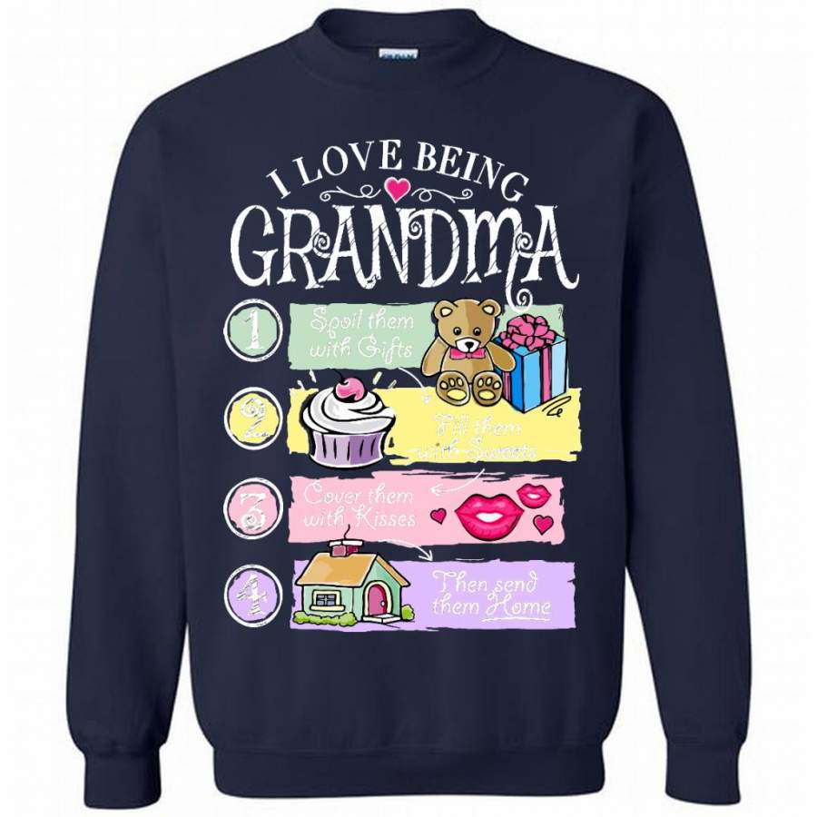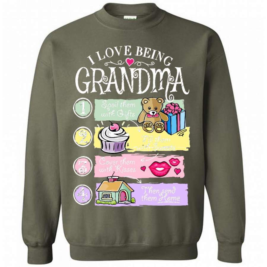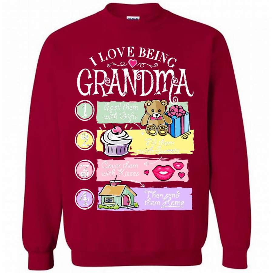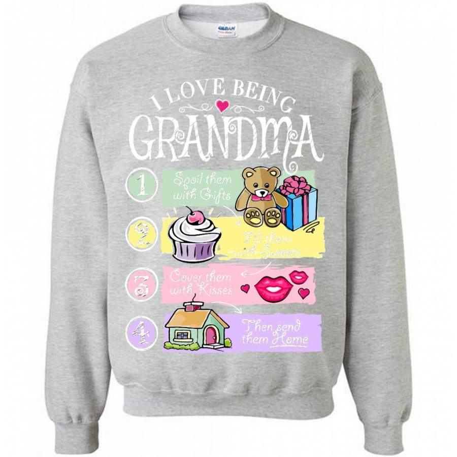 I Love Being Grandma Spoil Them With Gifts Fill Them With Sweets Cover Them With Kisses Then Send Them Home – Gildan Crewneck Sweatshirt