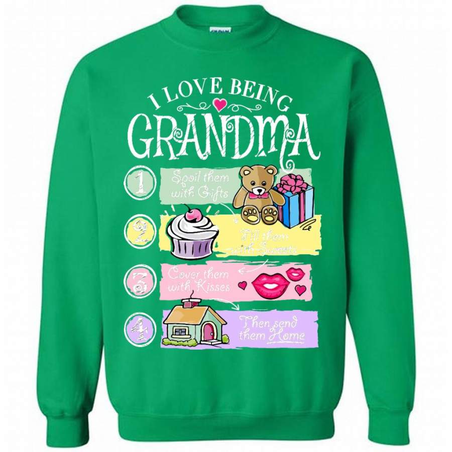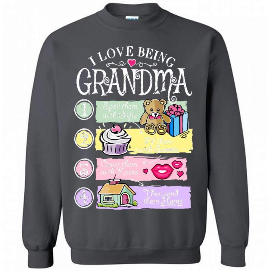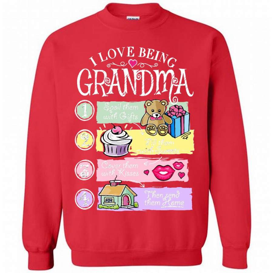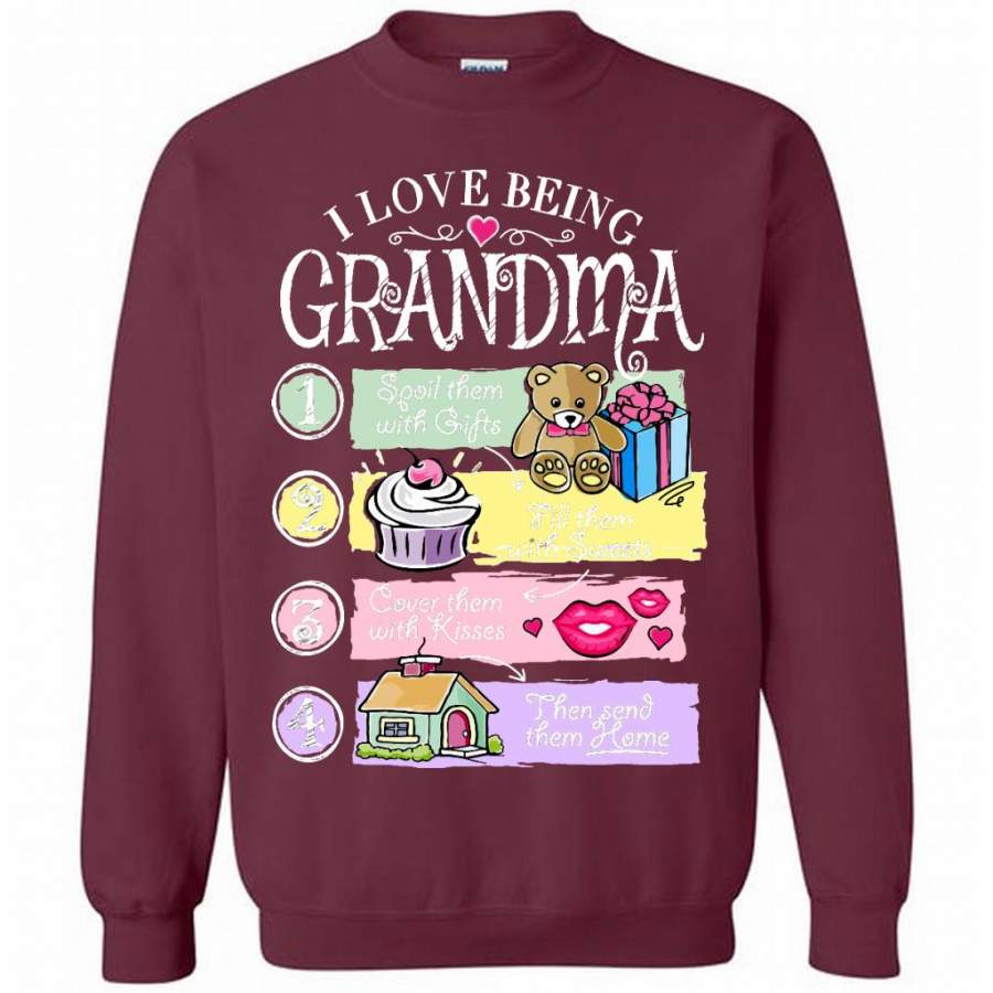I Love Being Grandma Spoil Them With Gifts Fill Them With Sweets Cover Them With Kisses Then Send Them Home – Gildan Crewneck Sweatshirt