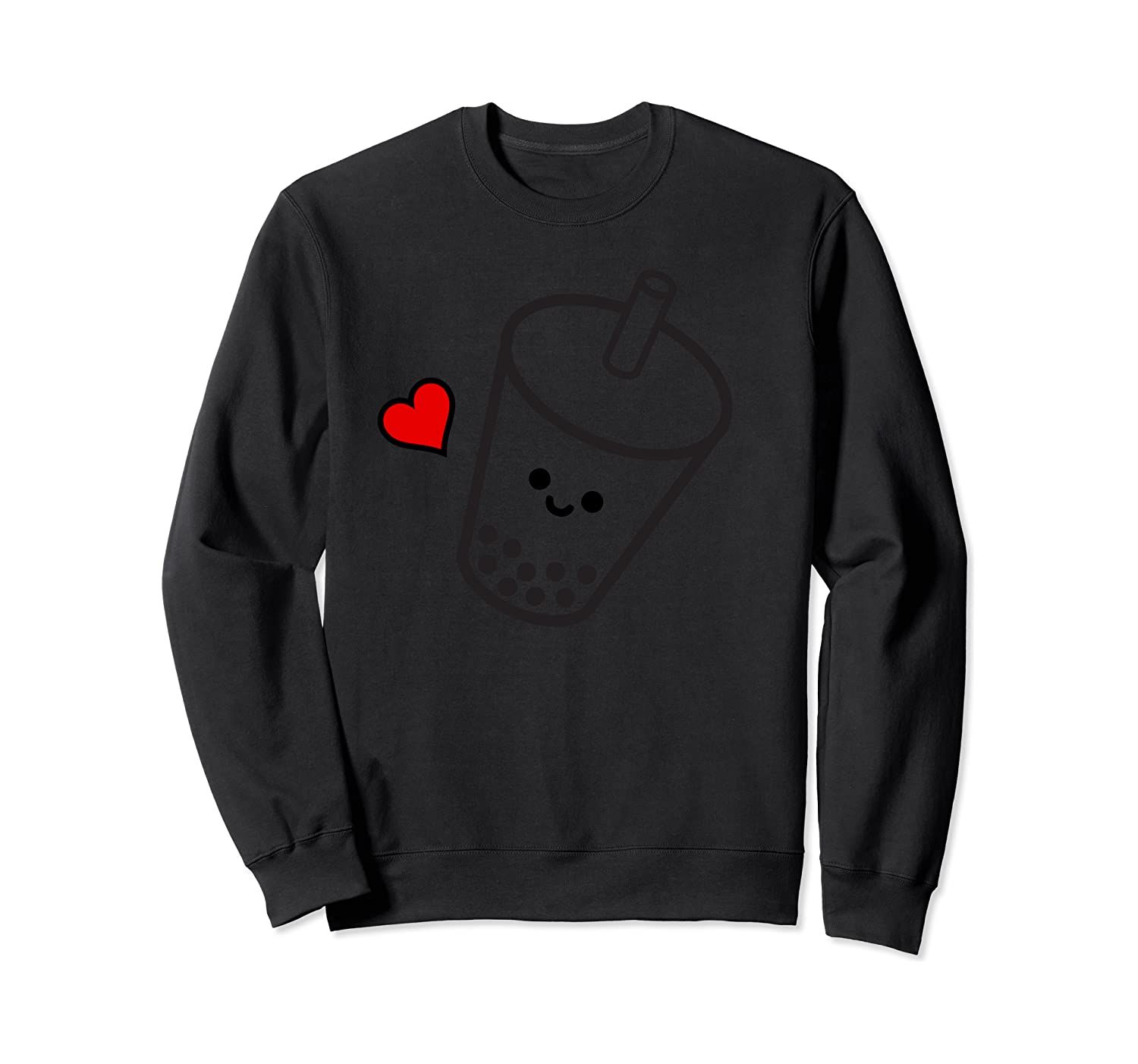 I Love Boba Tea Kawaii Cute Asian Anime Face With Red Heart Pullover Hoodie, T-Shirt, Sweatshirt, Tank Top