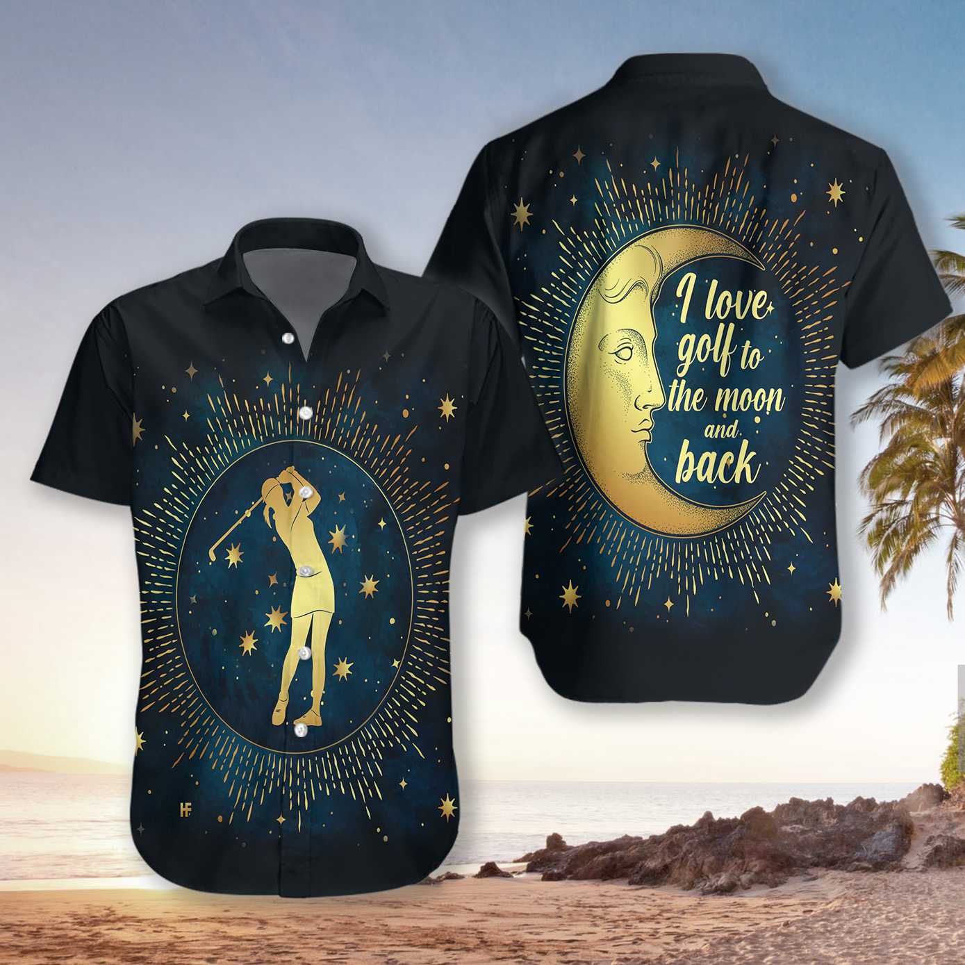 So whether you're looking to show off your own name or create a personalized gift for someone special, LateAndLow Store has got you covered. Start designing your own custom I Love Golf To The Moon And Back EZ14 0302 Hawaiian Shirt print-on-demand product today, and let us bring your vision to life!
