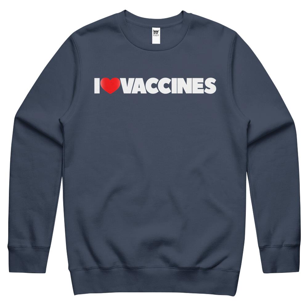 So whether you're looking to show off your own name or create a personalized gift for someone special, LateAndLow Store has got you covered. Start designing your own custom I Love Heart Vaccines Crewneck Sweatshirt print-on-demand product today, and let us bring your vision to life!
