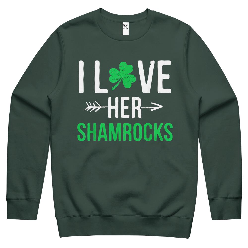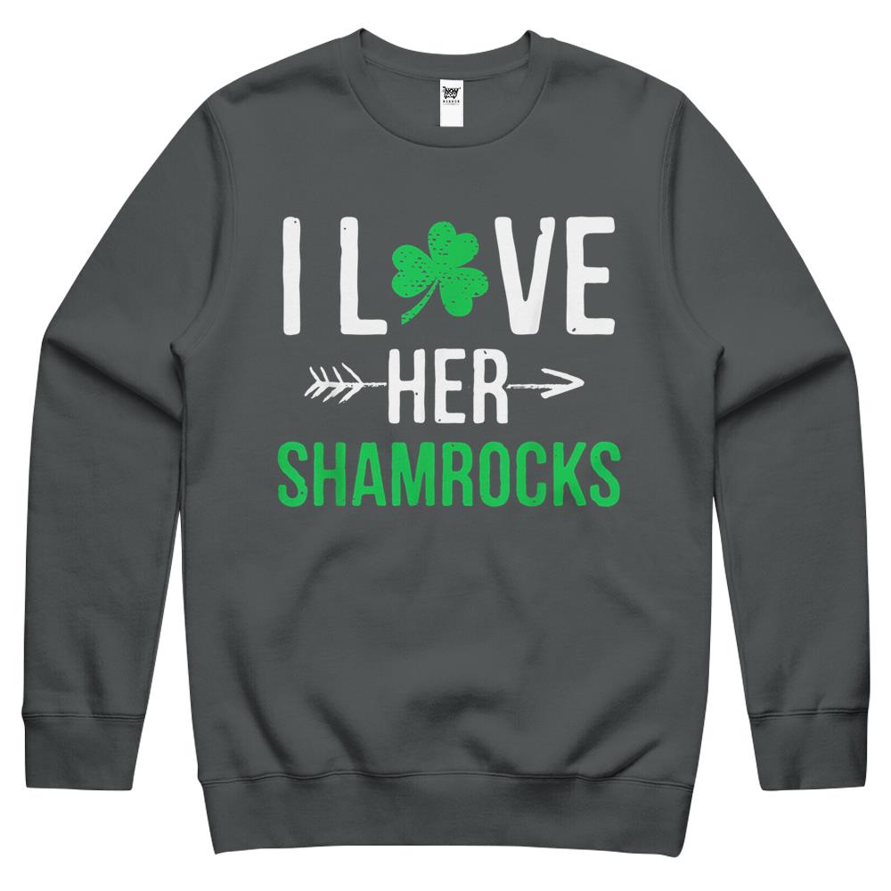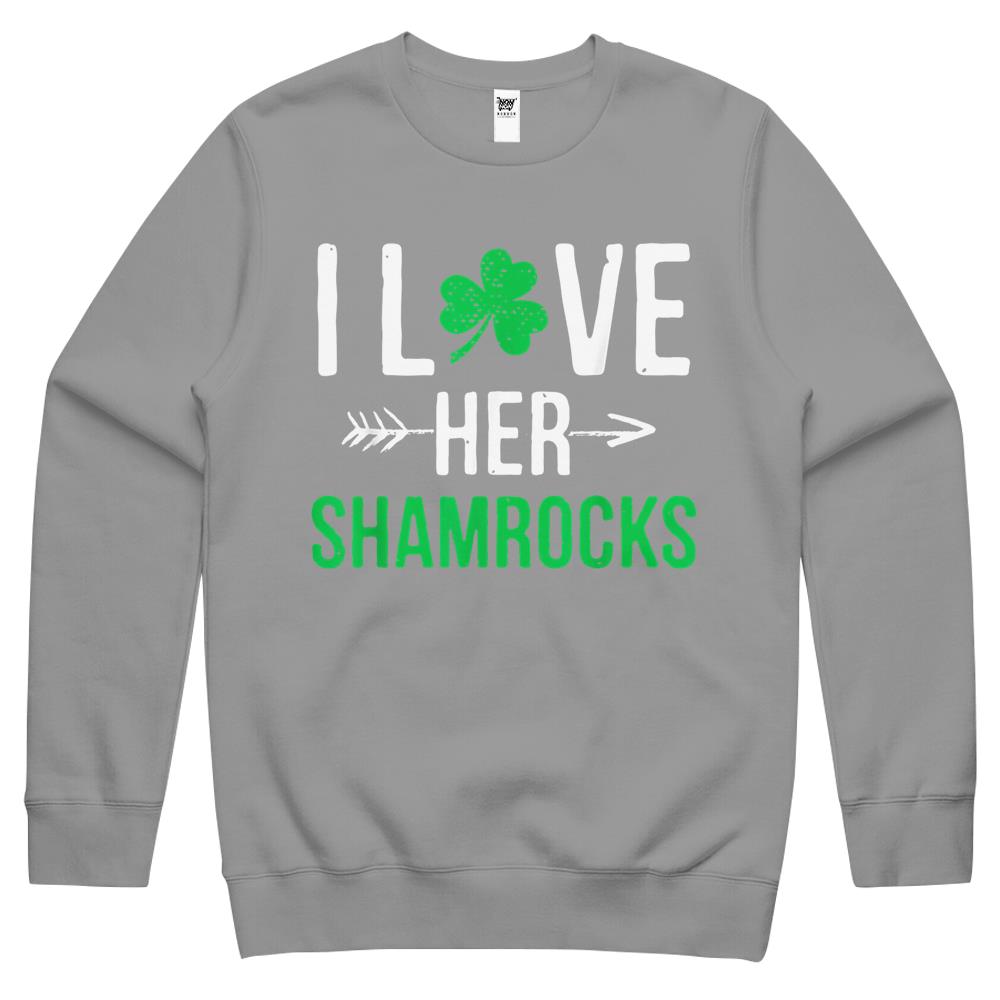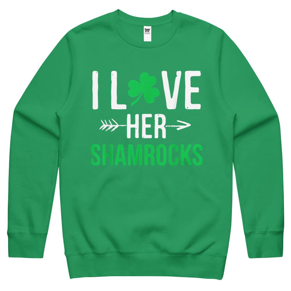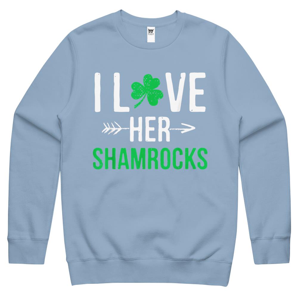 I Love Her Shamrocks T-Shirt St Patrick’S Day Couples Gifts Crewneck Sweatshirt