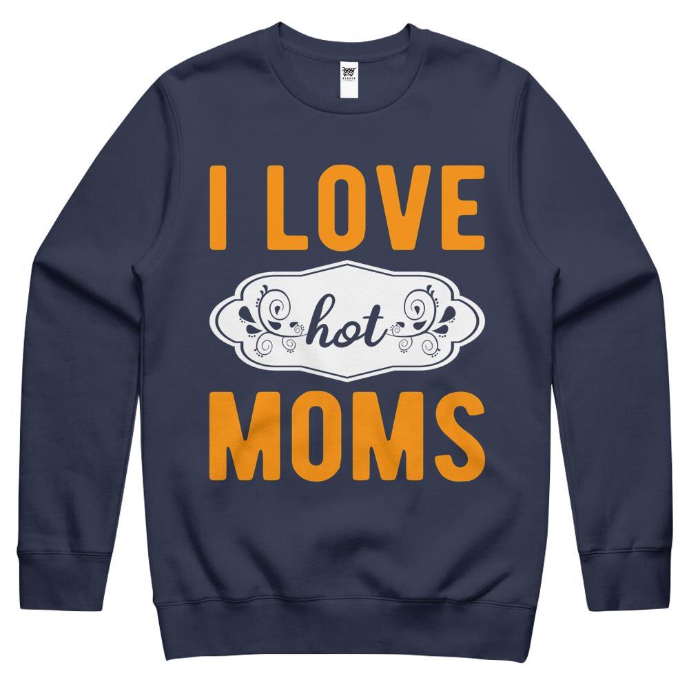 I Love Hot Mom Shirt, I Heart Hot Moms Shirt, I Love Hot Moms T Shirt, I Heart Hot Moms T Shirt Crewneck Sweatshirt