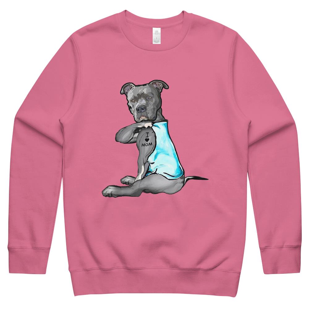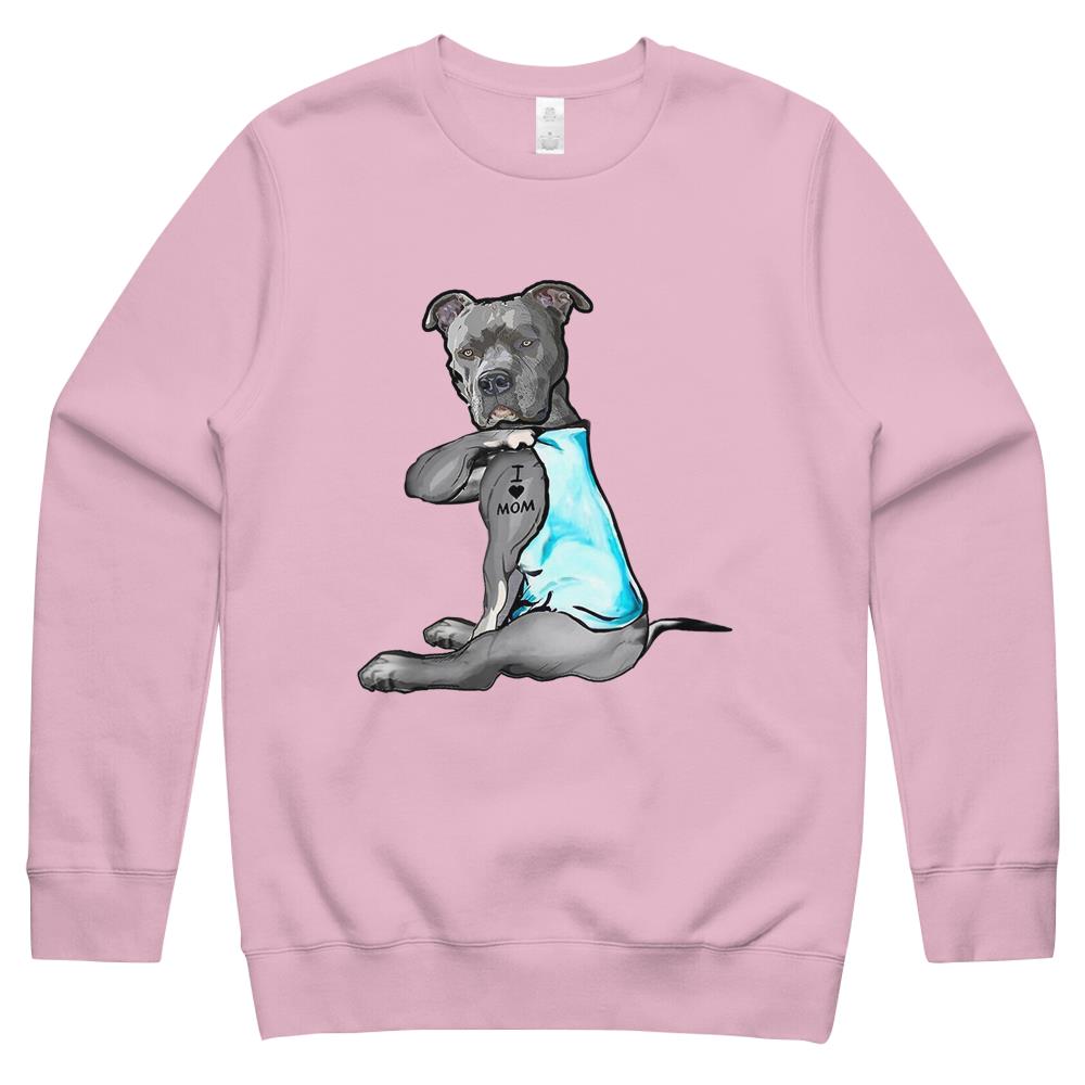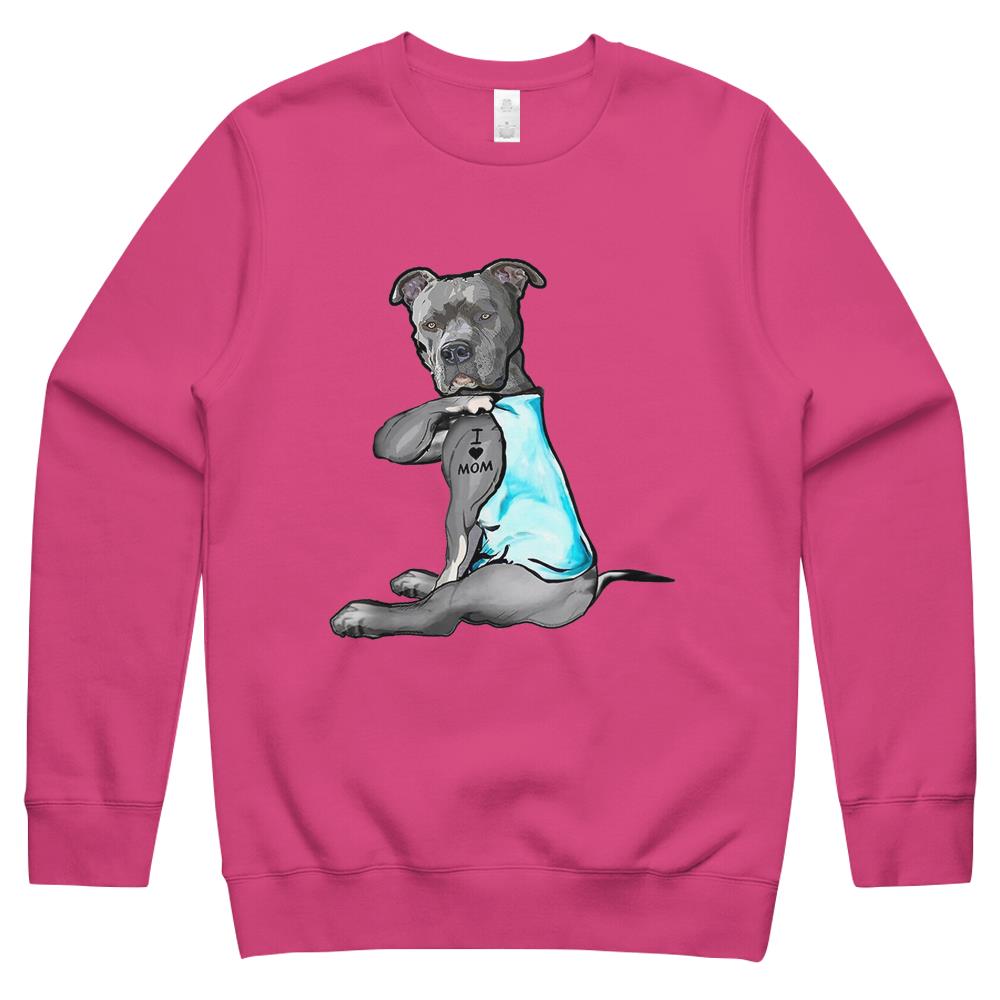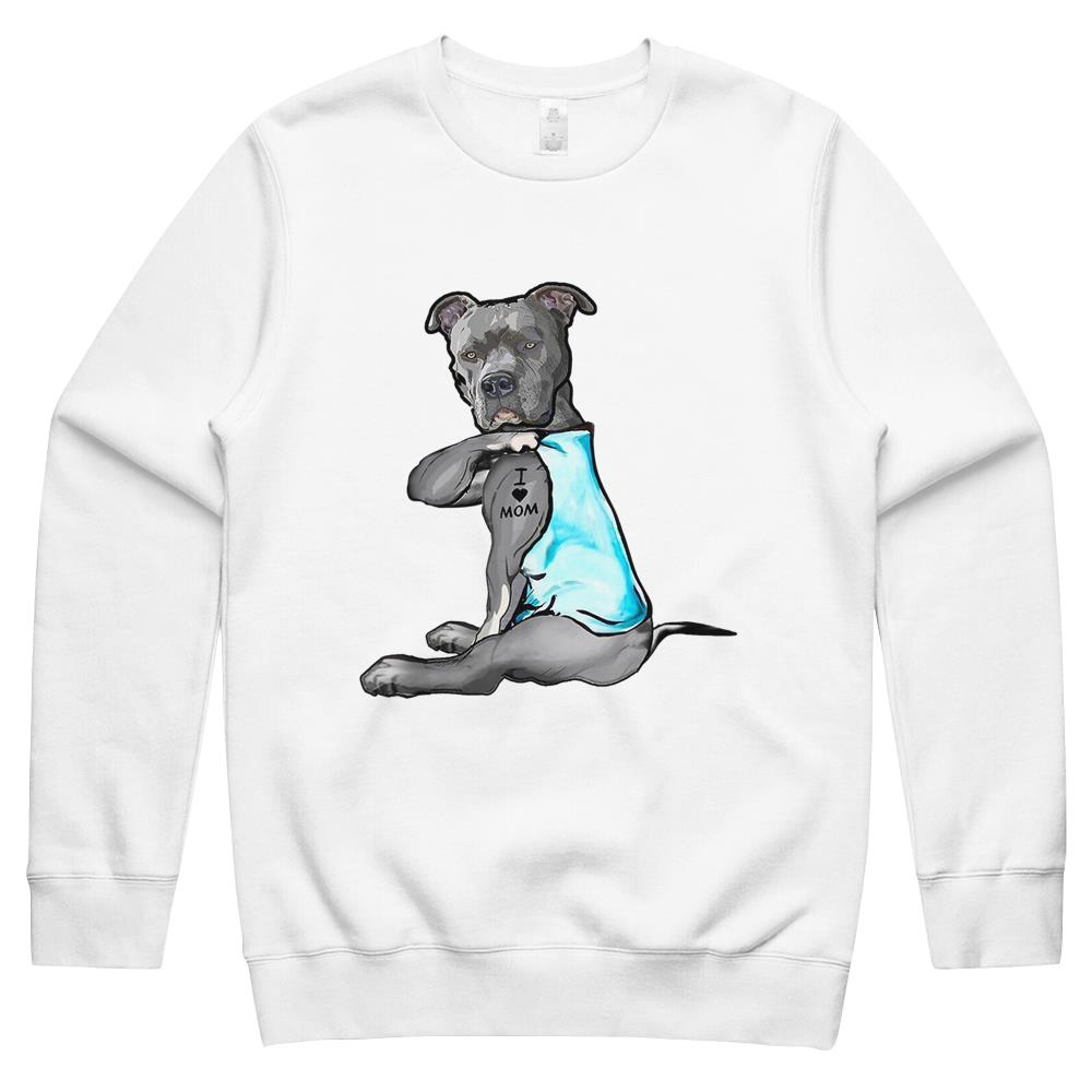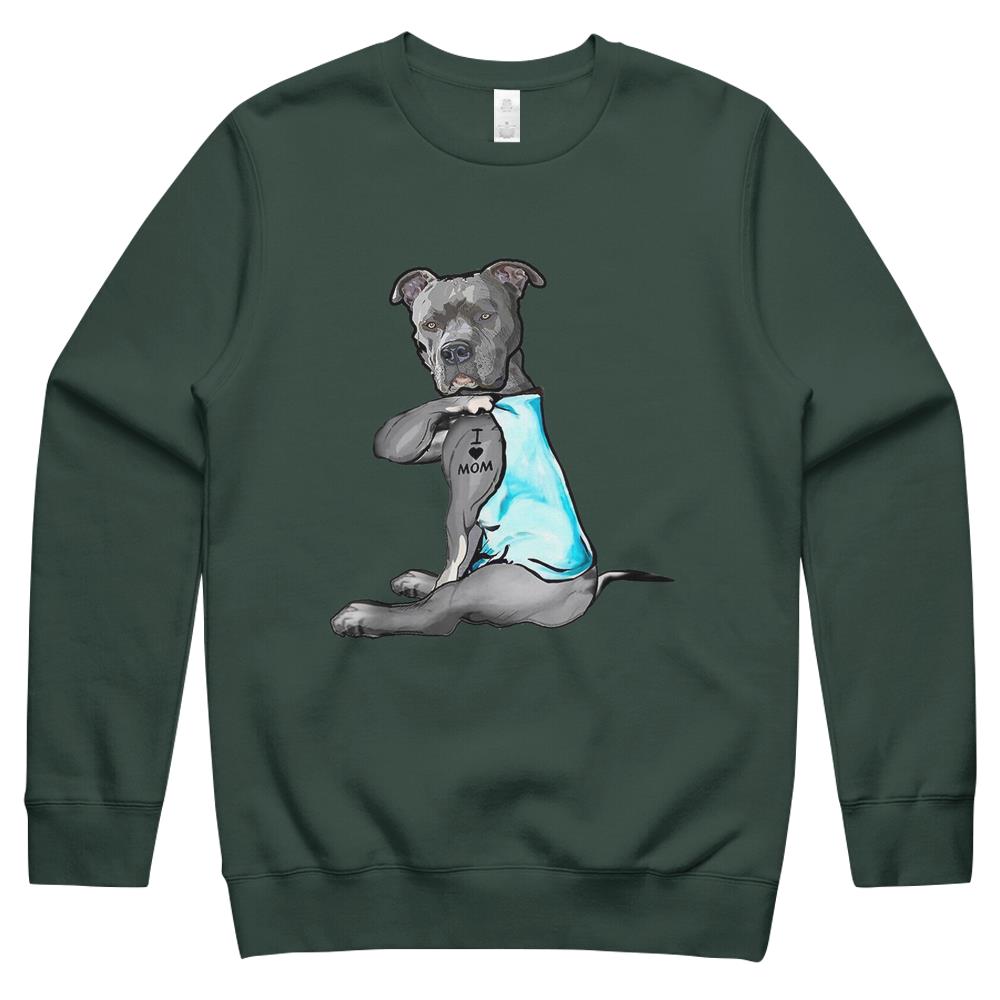 I Love Mom Tattoo Pitbull Dog Lover Women Gift Pitbull Mom Crewneck Sweatshirt
