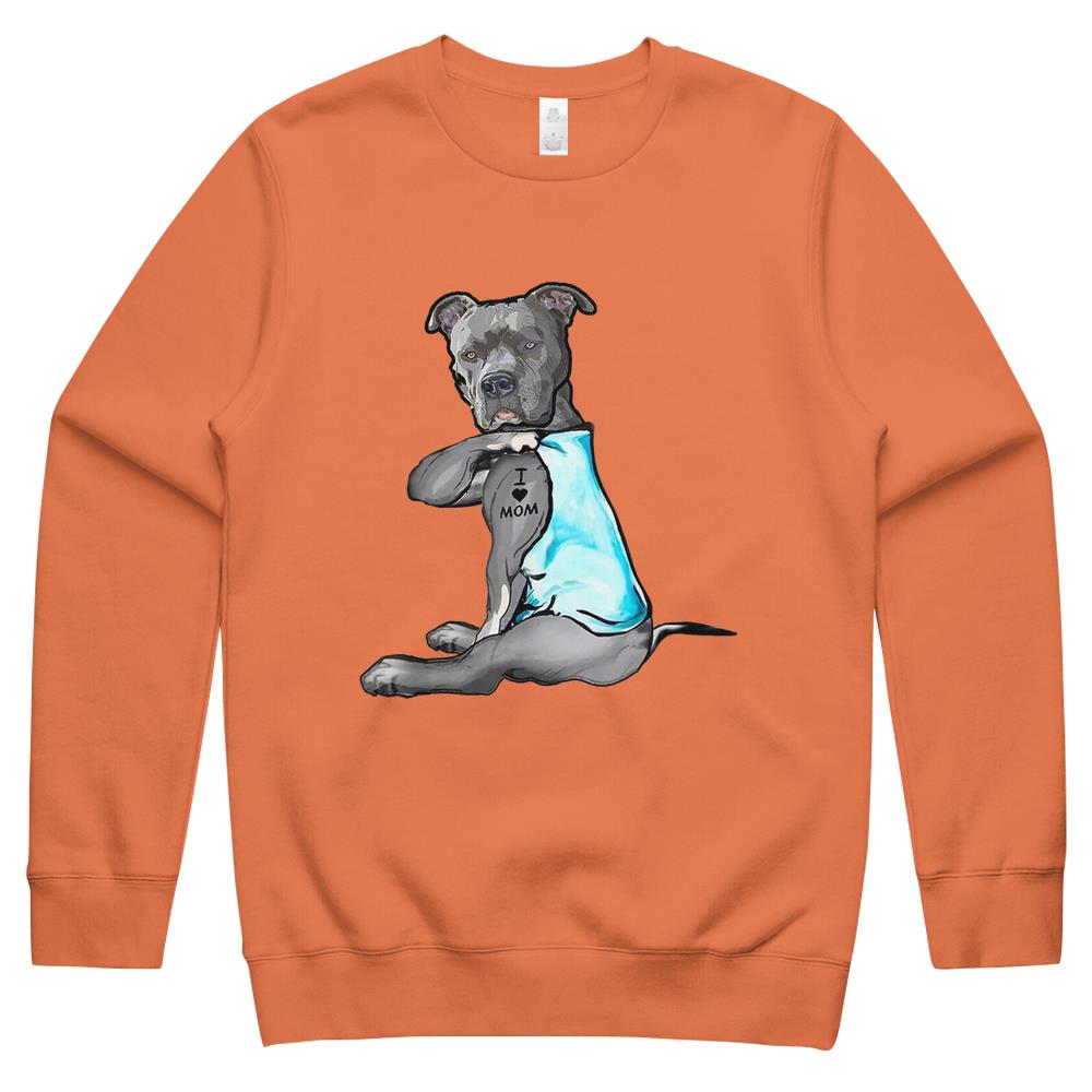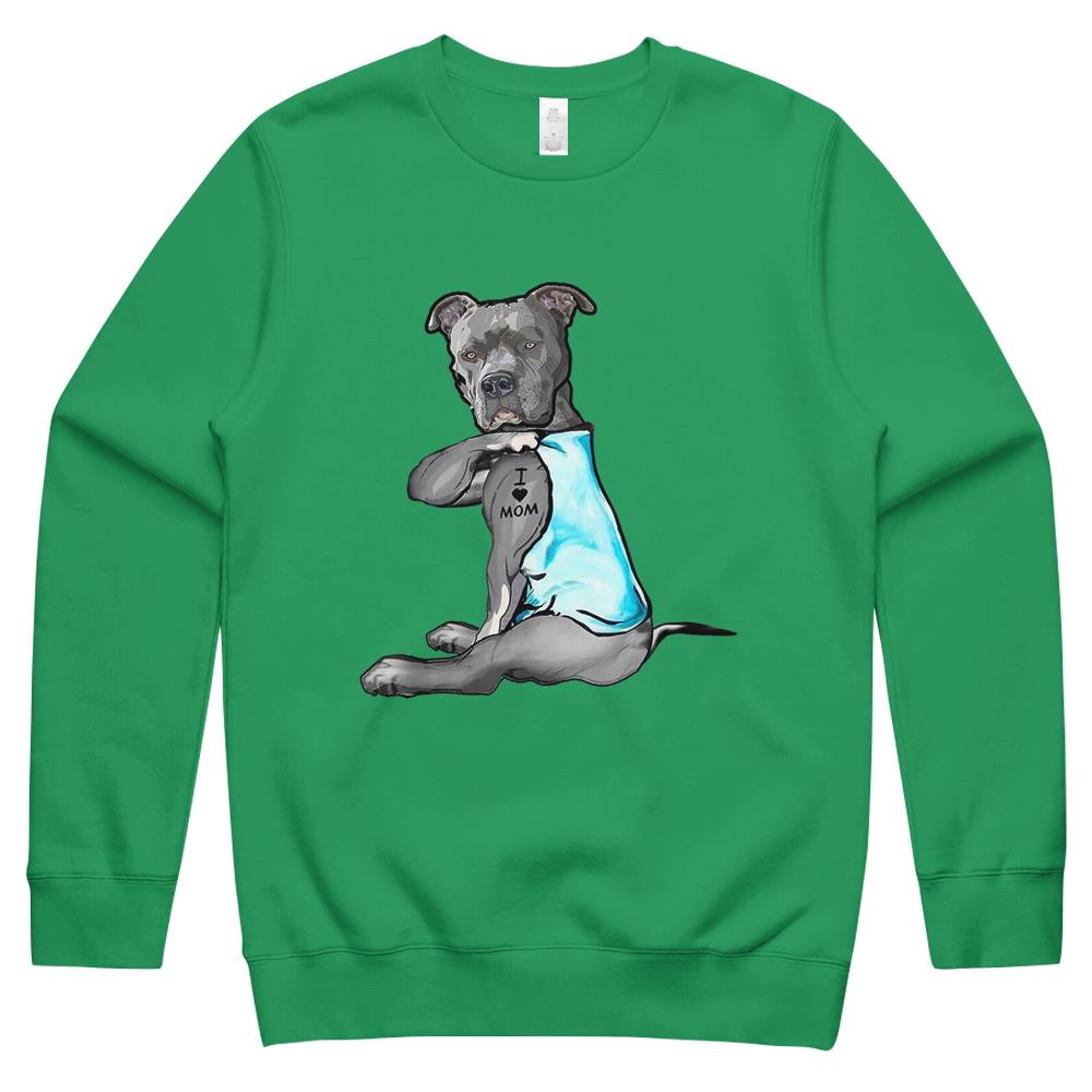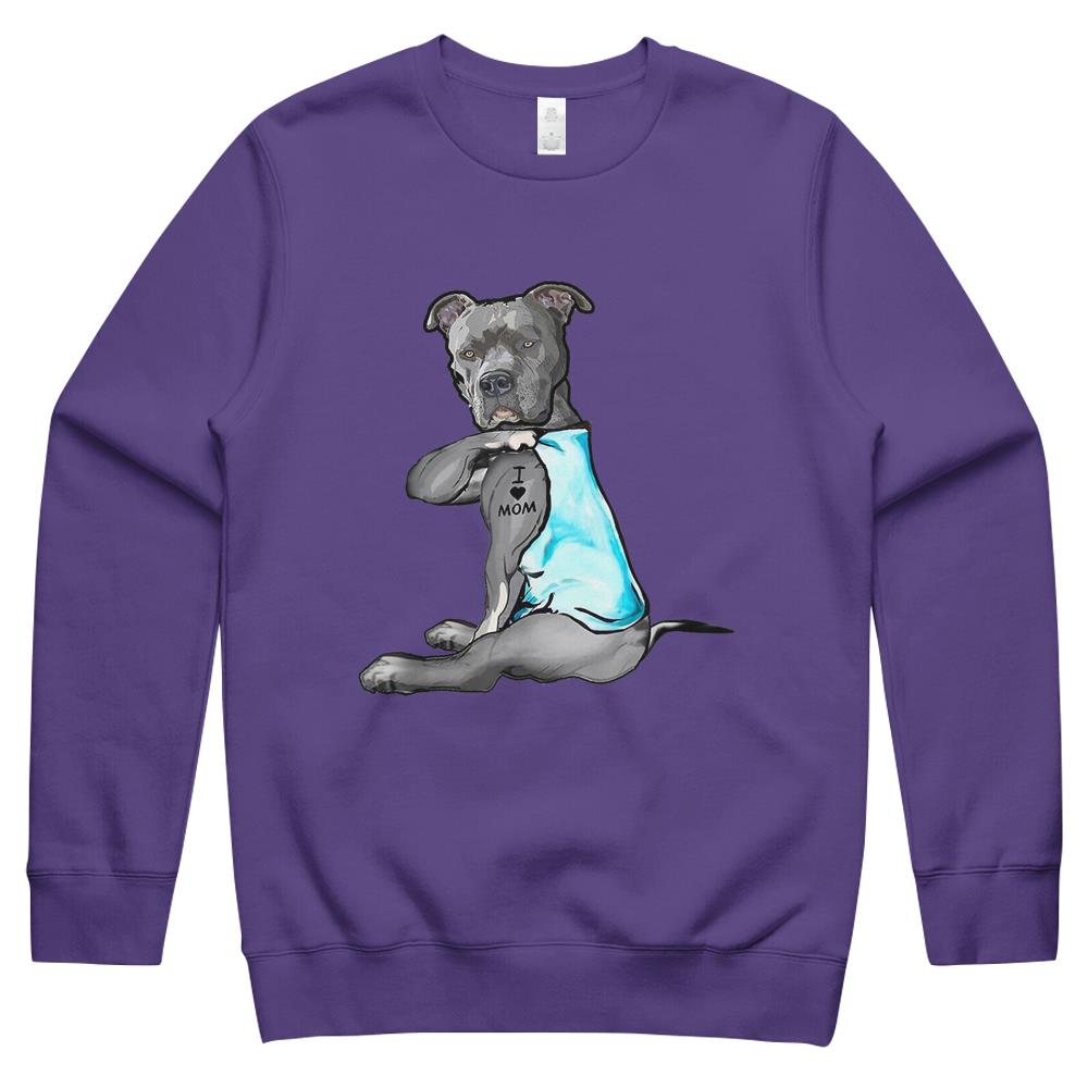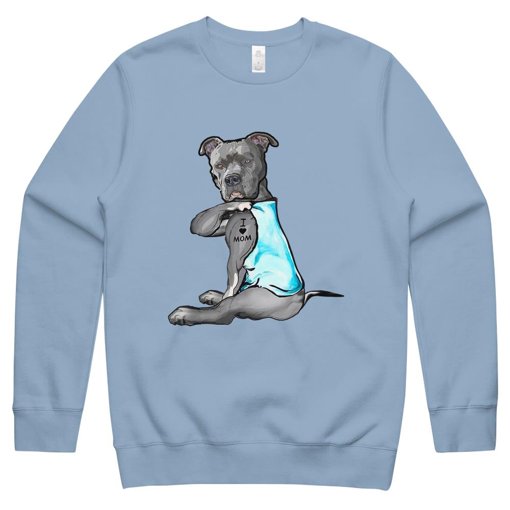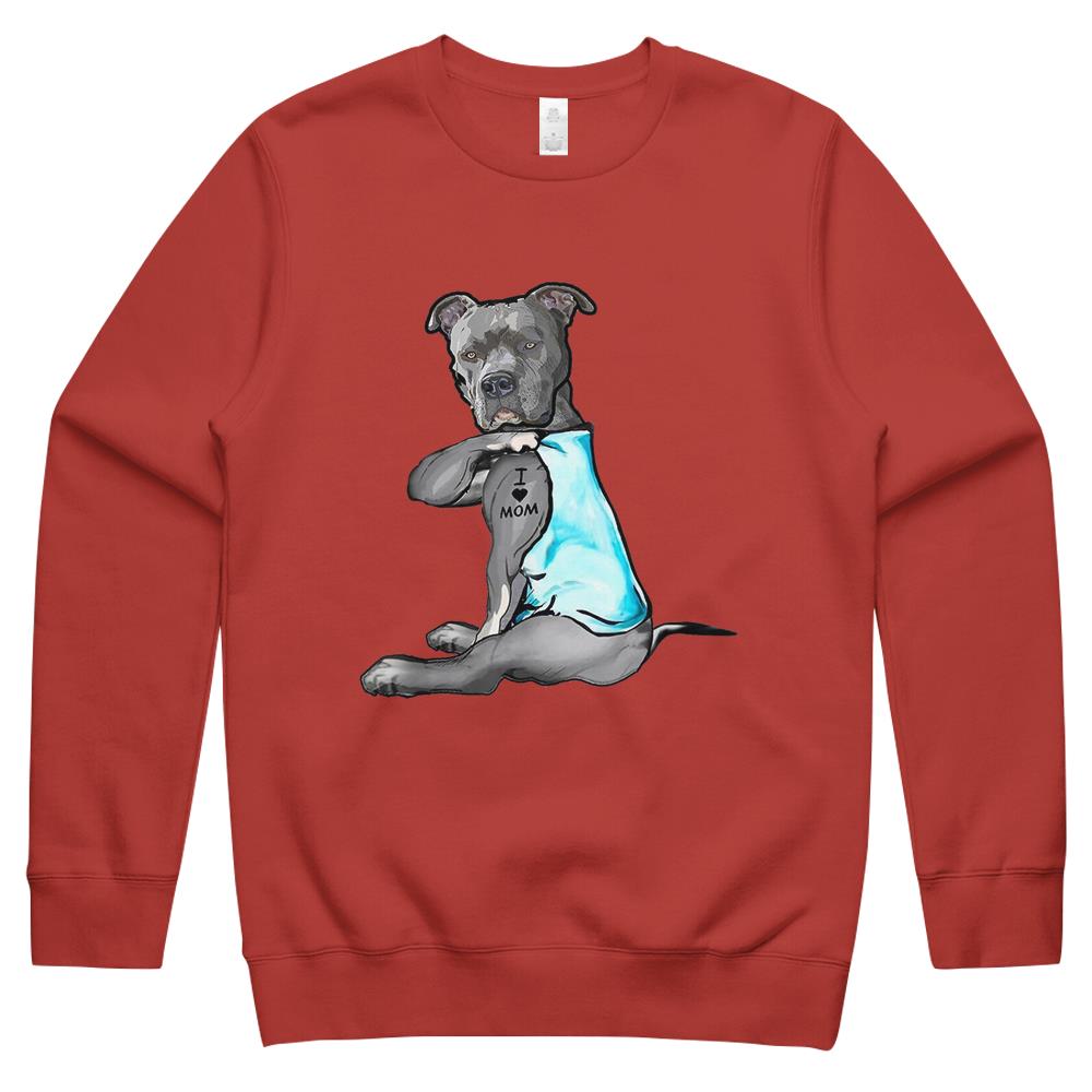 I Love Mom Tattoo Pitbull Dog Lover Women Gift Pitbull Mom Crewneck Sweatshirt