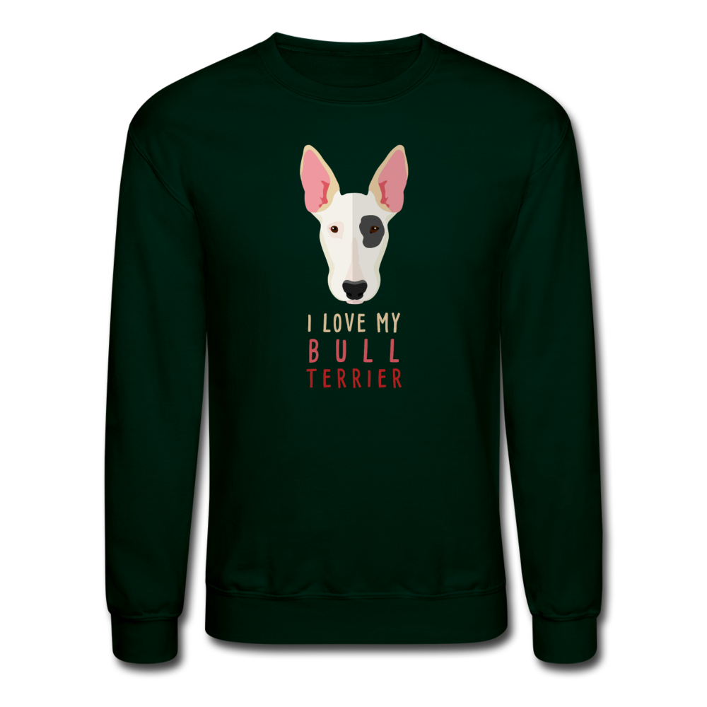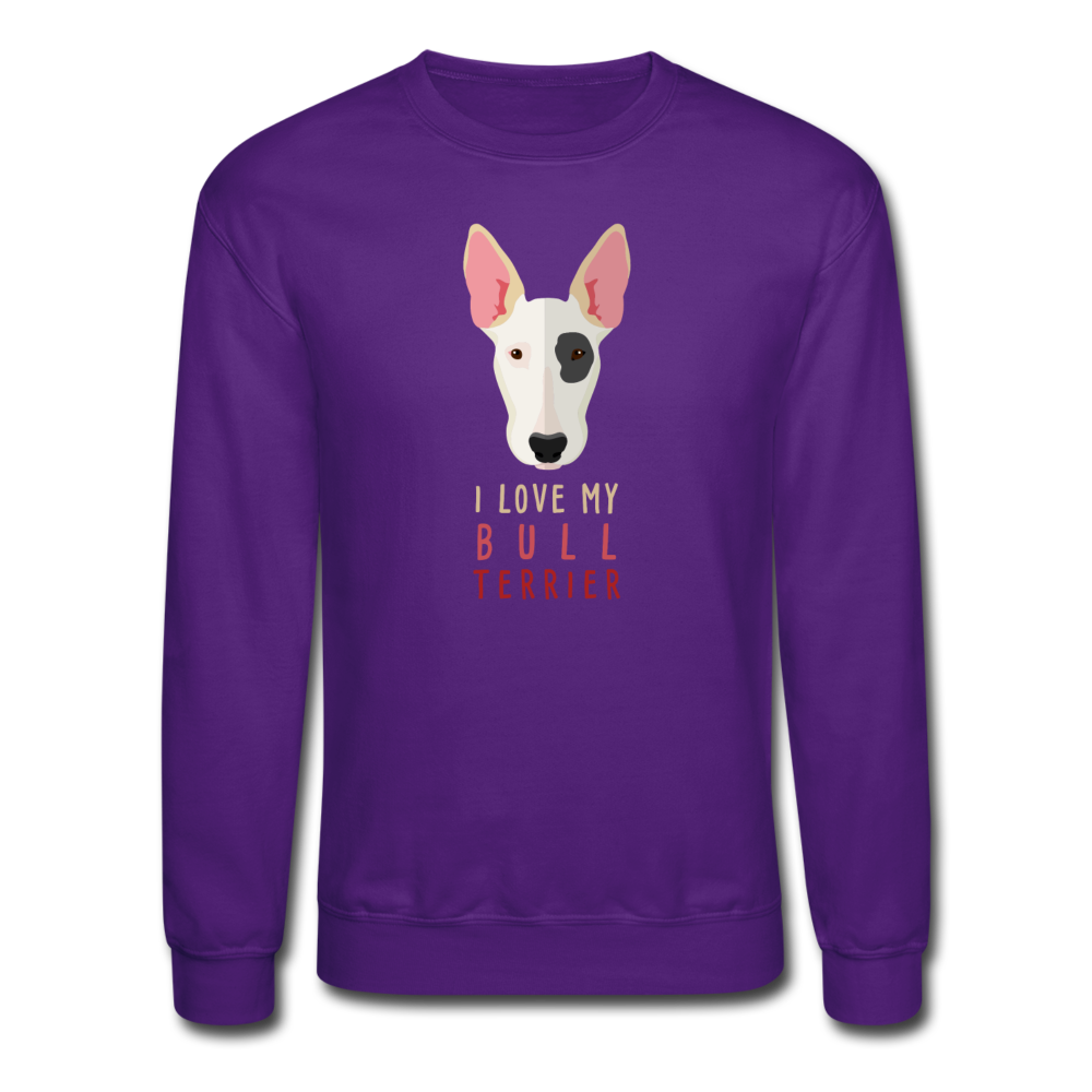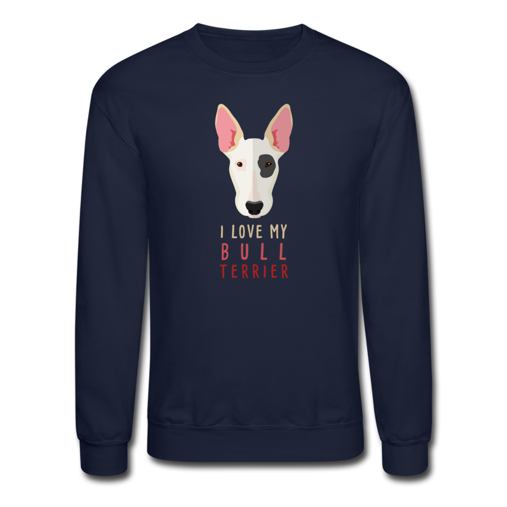 So whether you're looking to show off your own name or create a personalized gift for someone special, LateAndLow Store has got you covered. Start designing your own custom I Love My Bull Terrier Crewneck Sweatshirt print-on-demand product today, and let us bring your vision to life!