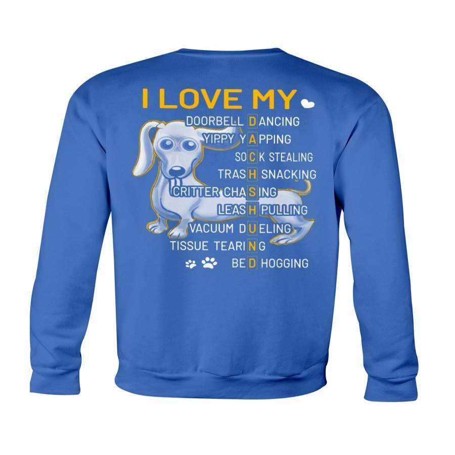 So whether you're looking to show off your own name or create a personalized gift for someone special, LateAndLow Store has got you covered. Start designing your own custom I Love My Dachshund Dogs Gift For Dog Lovers Sweatshirt print-on-demand product today, and let us bring your vision to life!