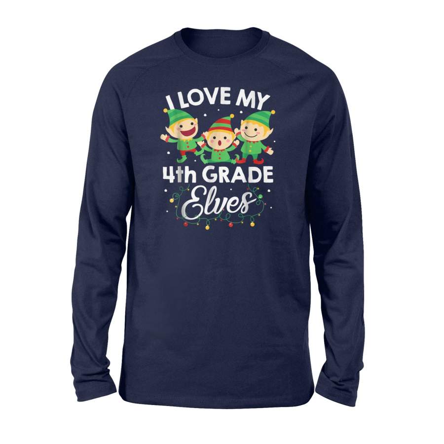 I Love My Fourth Grade Elves Christmas 4Th Teacher Long Sleeve T-Shirt