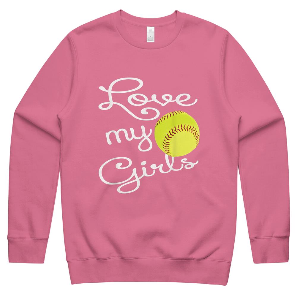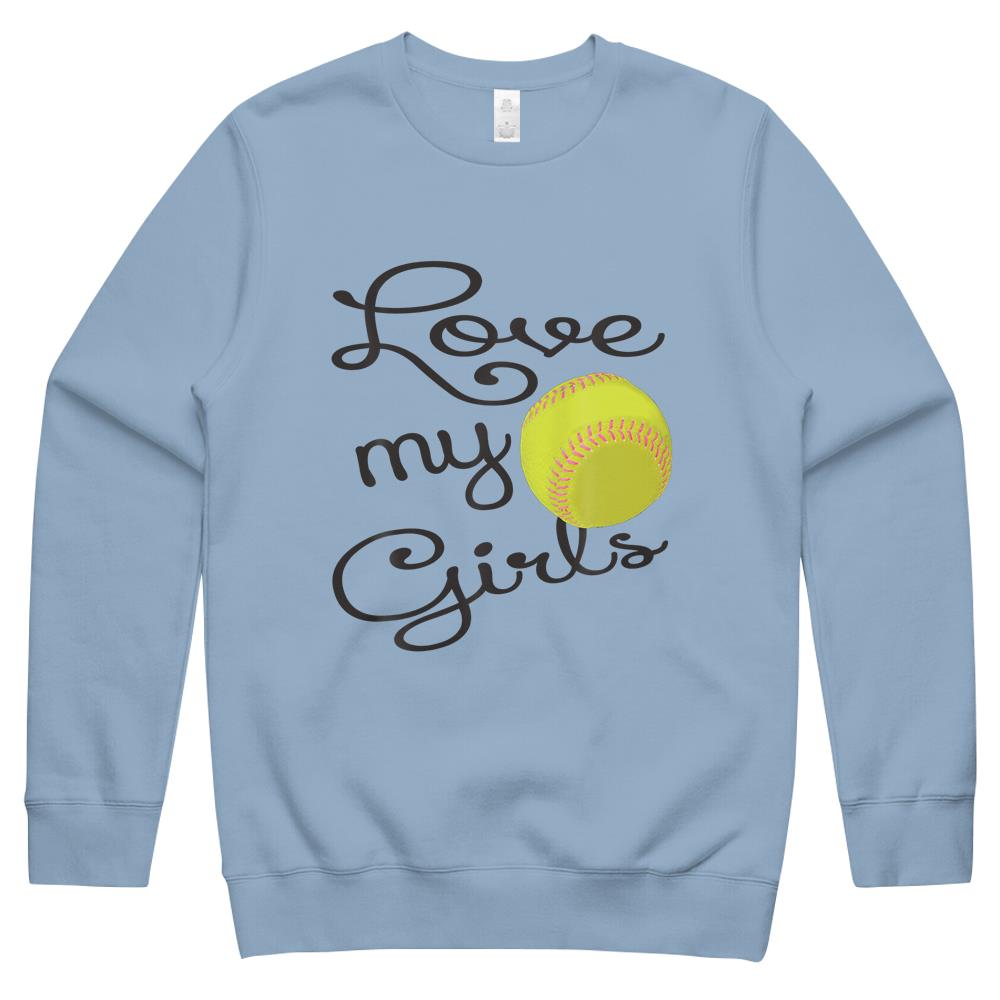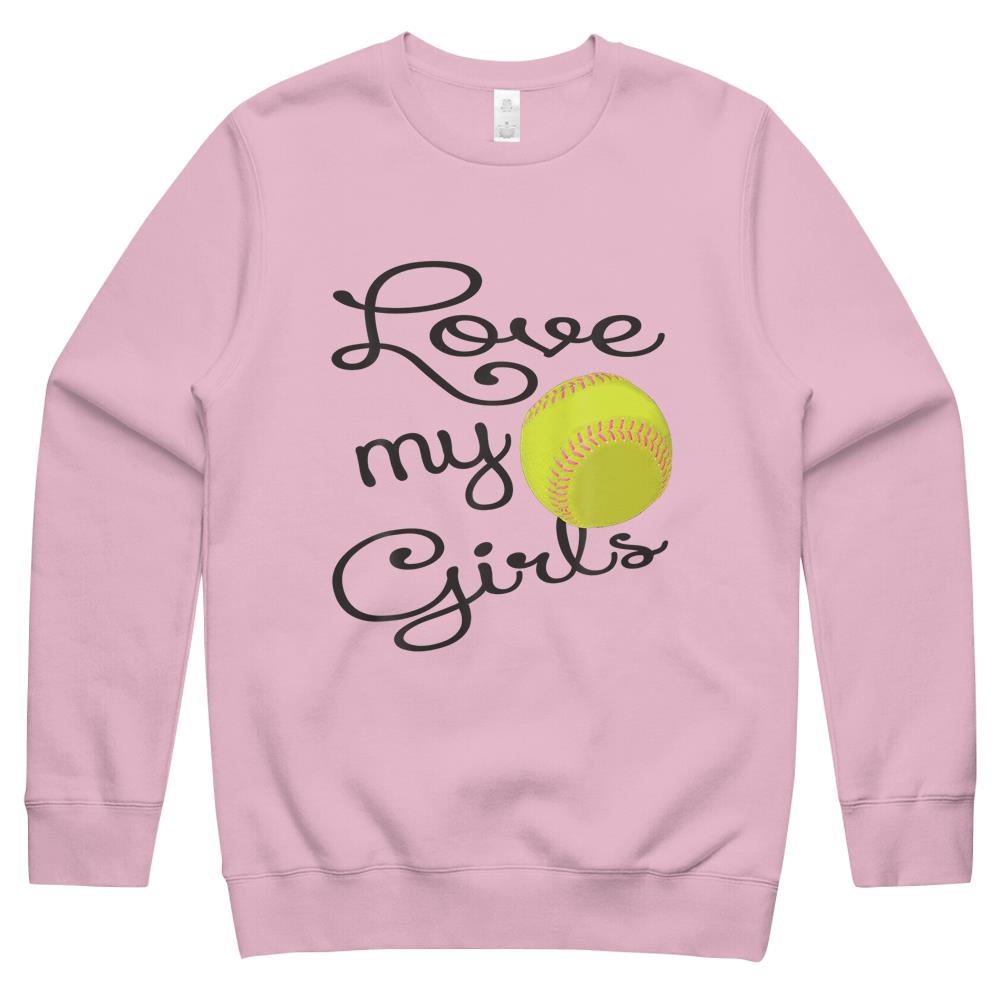I Love My Girls Mom Softball Art – Cute Softball Mom Crewneck Sweatshirt