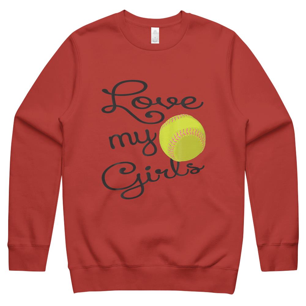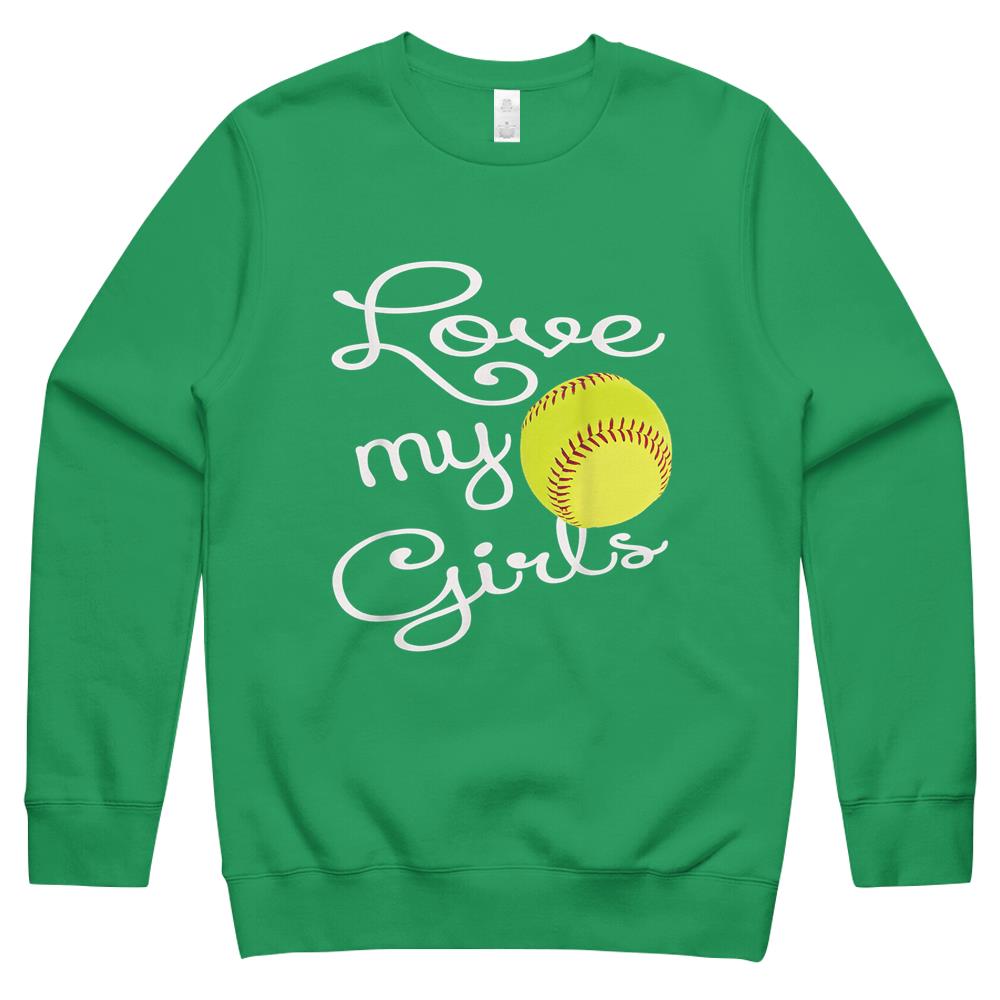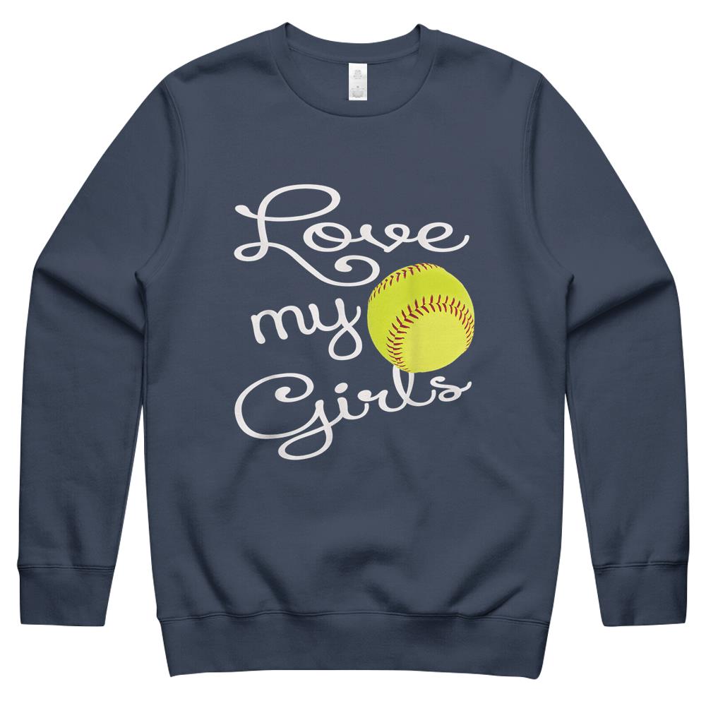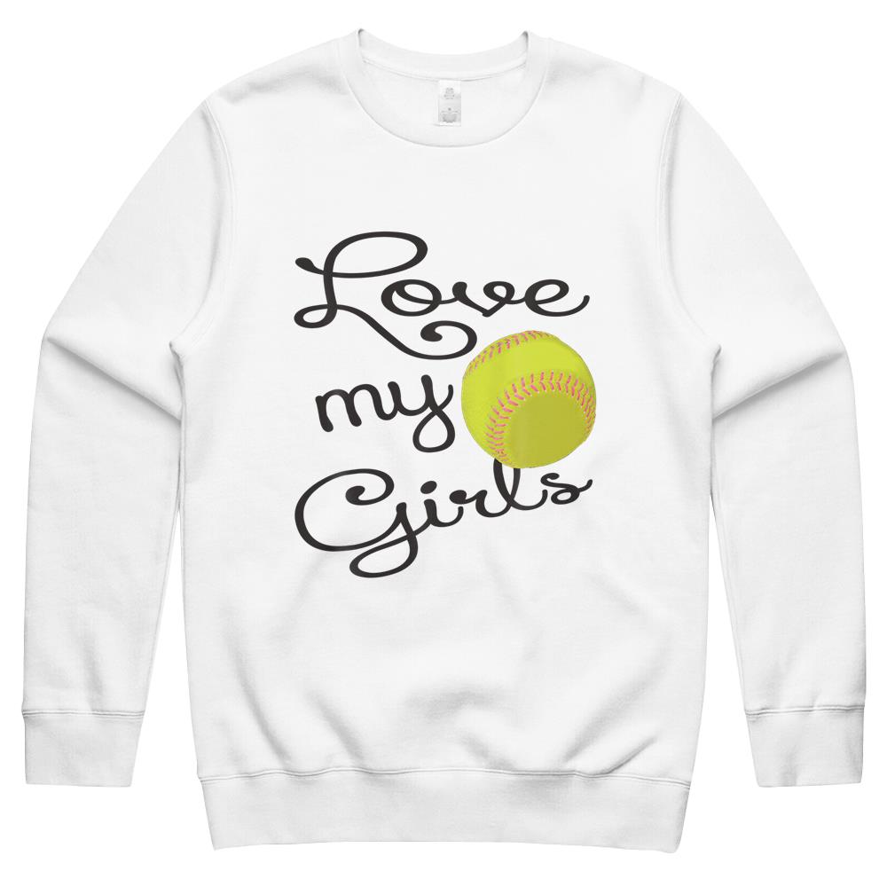 I Love My Girls Mom Softball Art – Cute Softball Mom Crewneck Sweatshirt