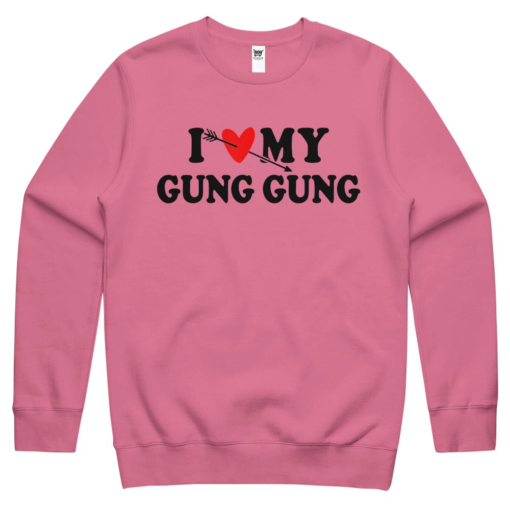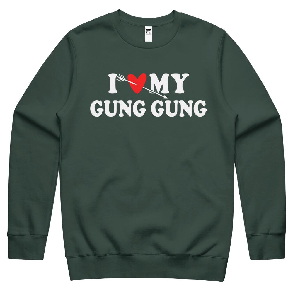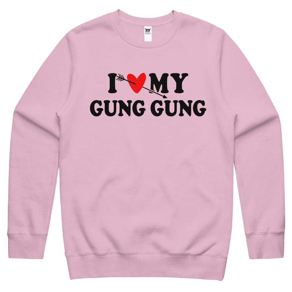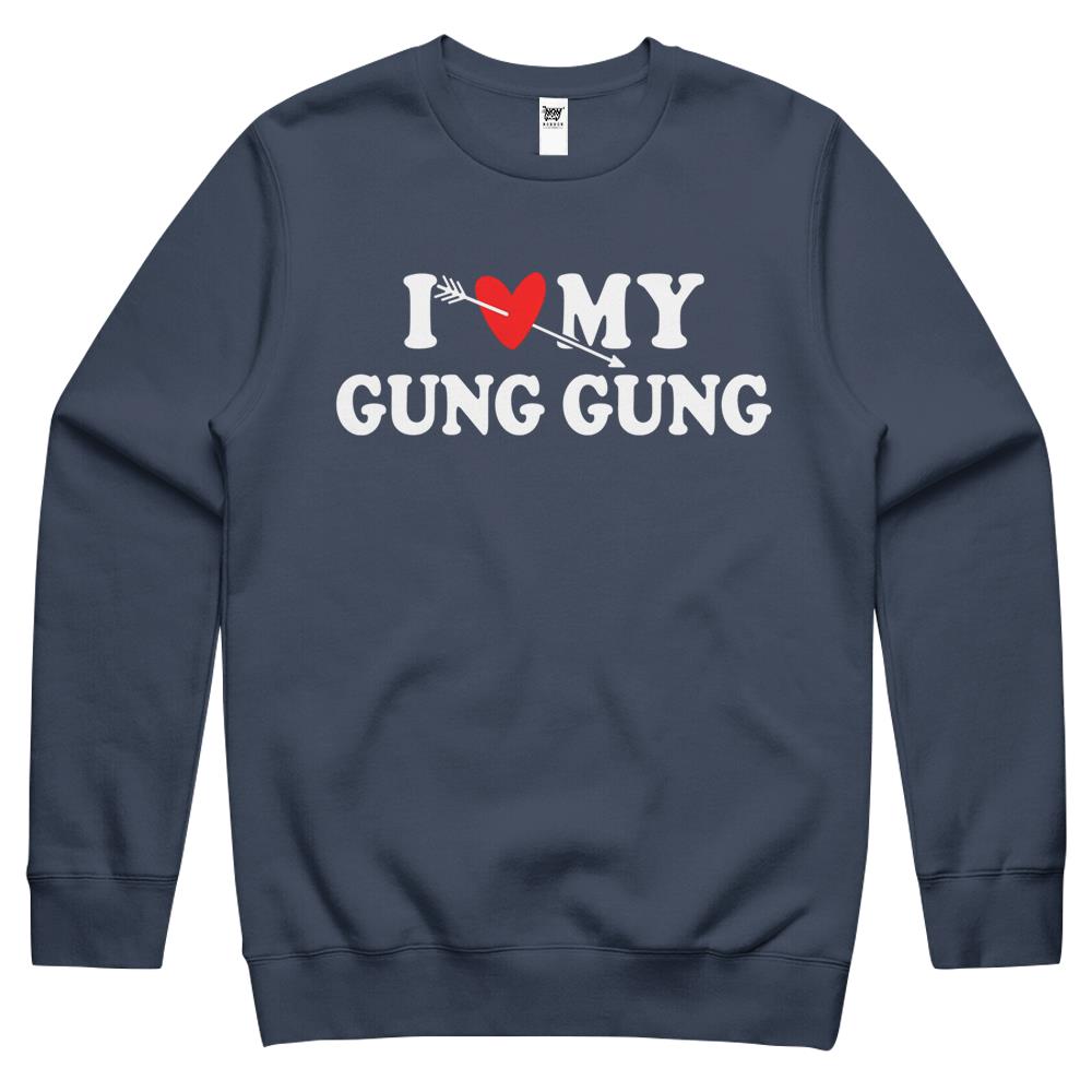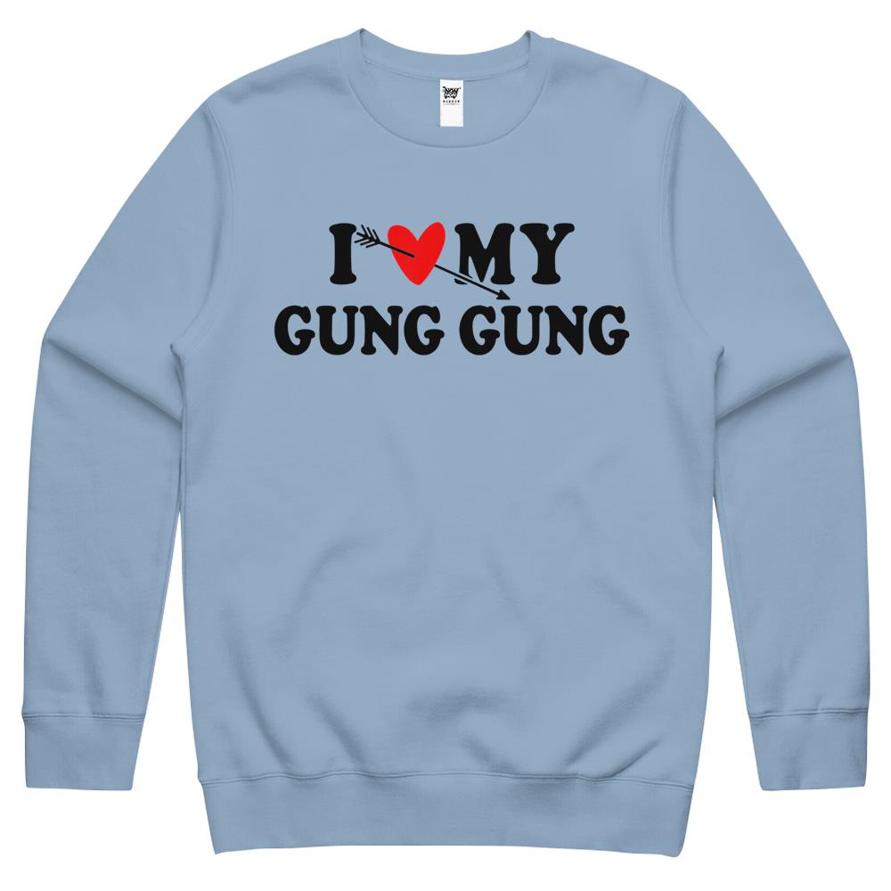 So whether you're looking to show off your own name or create a personalized gift for someone special, LateAndLow Store has got you covered. Start designing your own custom I Love My Gung Gung With Heart Fathers Day Wear For Son Girl Crewneck Sweatshirt print-on-demand product today, and let us bring your vision to life!