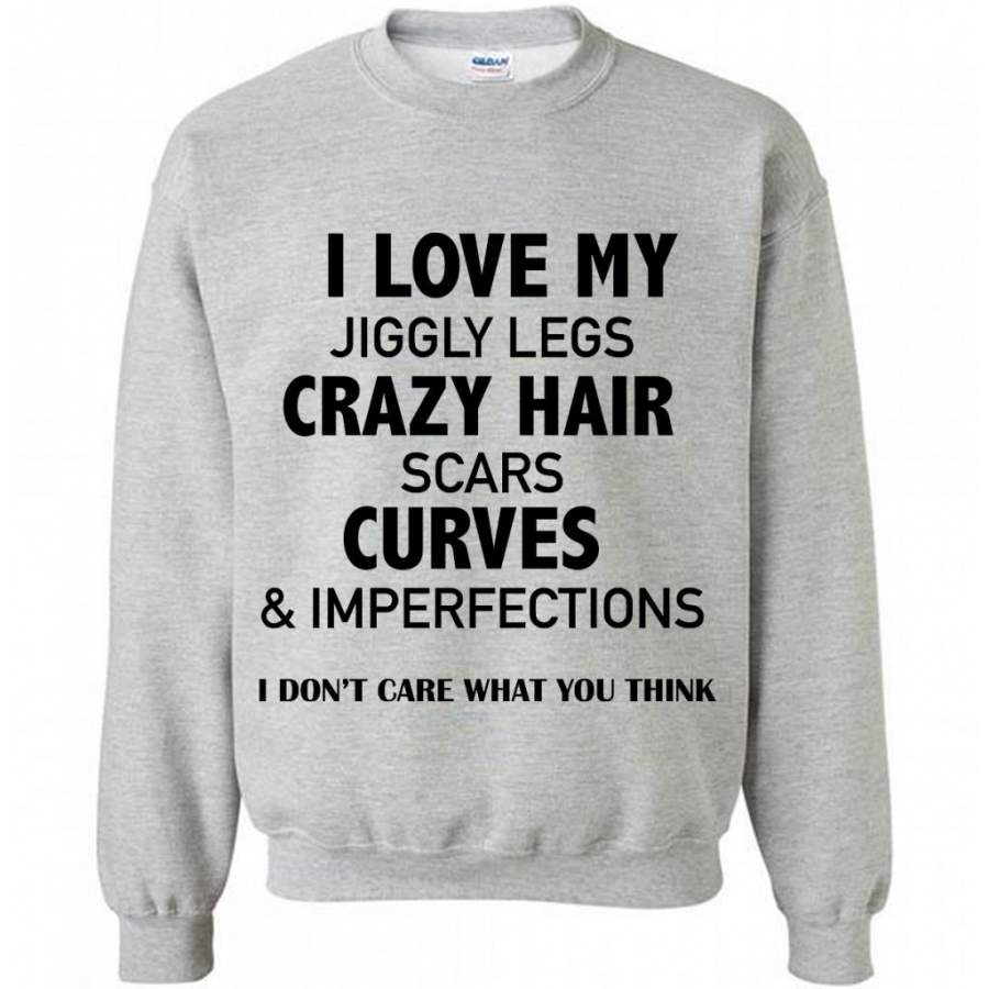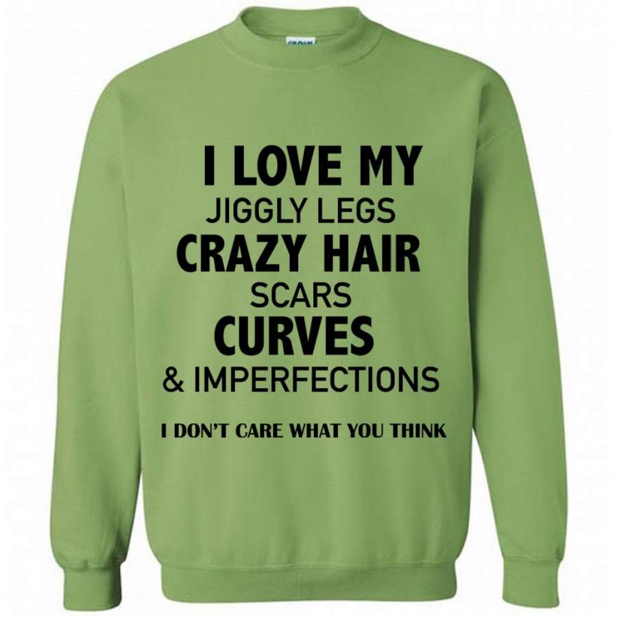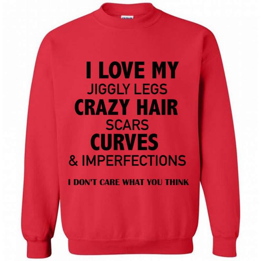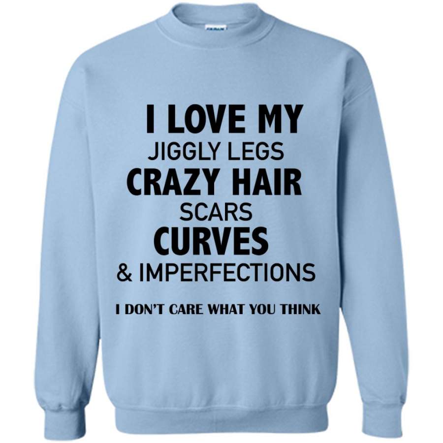 I Love My Jiggly Legs Crazy Hair Scars Curves And Imperfections I Don’t Care What You Think (w) – Gildan Crewneck Sweatshirt