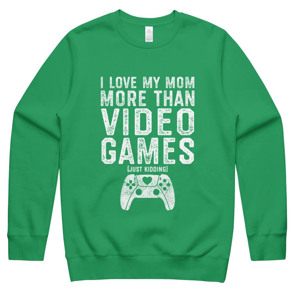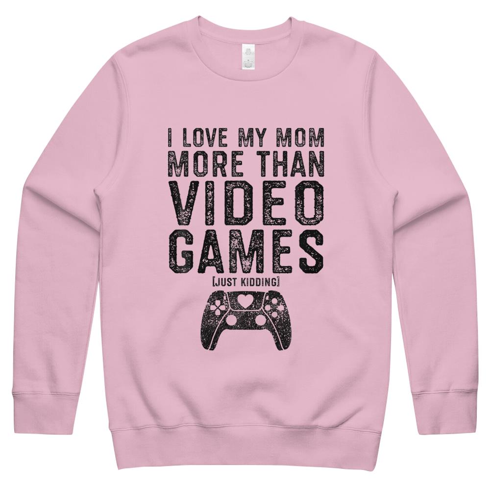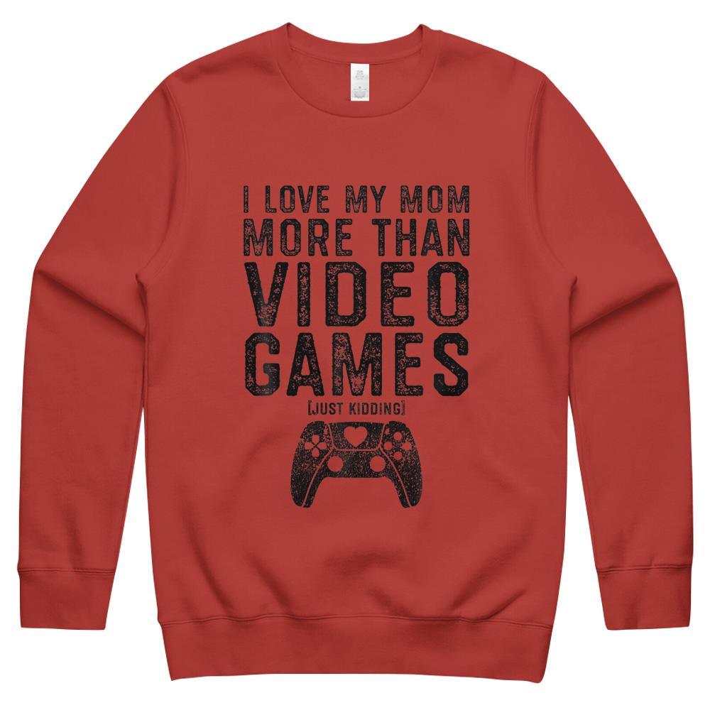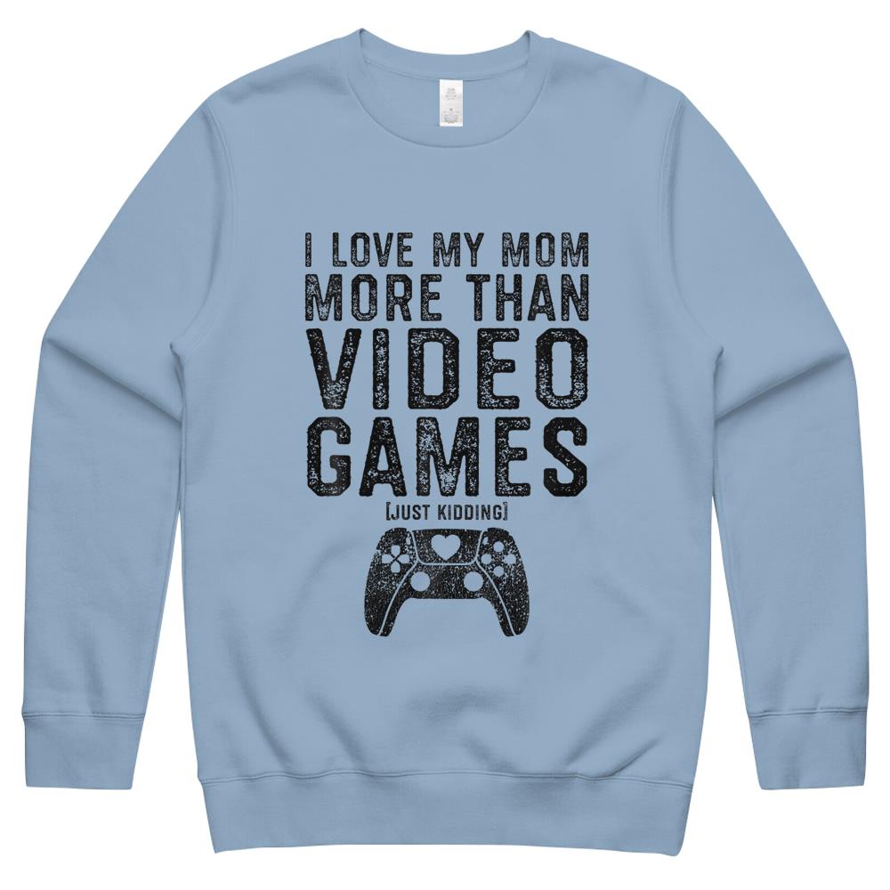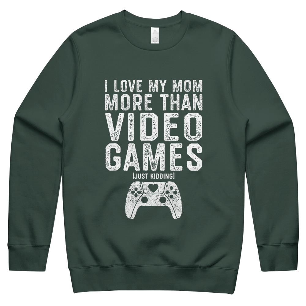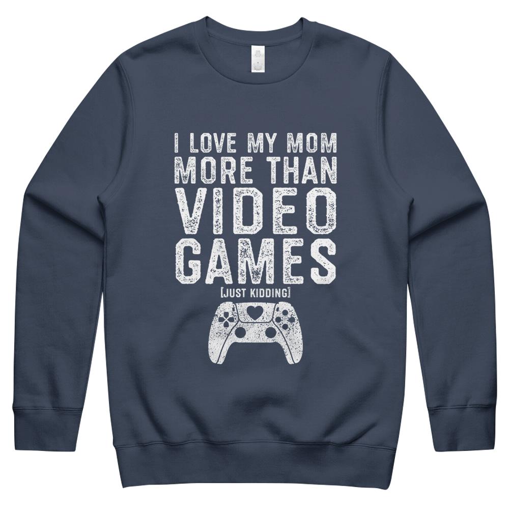 So whether you're looking to show off your own name or create a personalized gift for someone special, LateAndLow Store has got you covered. Start designing your own custom I Love My Mom Video Gamer Valentines Day Gift Boys Kids n Crewneck Sweatshirt print-on-demand product today, and let us bring your vision to life!