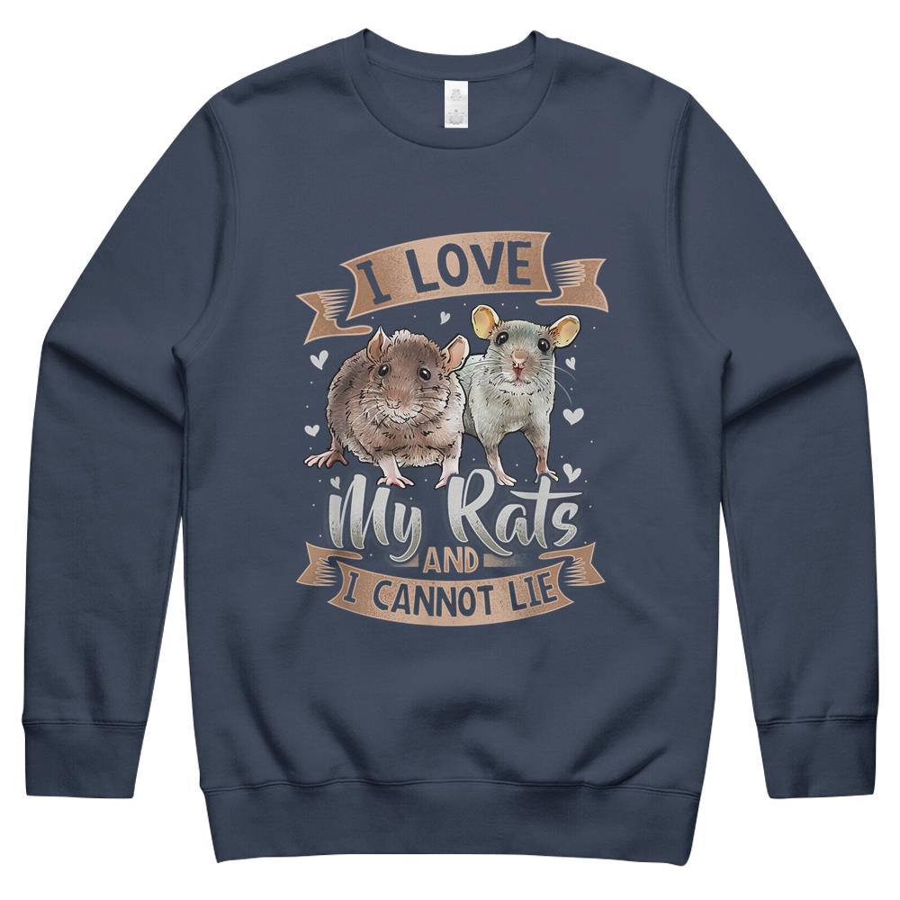 I Love My Rats I Cannot Lie Rat Mom Dad Heart Cute Rodent Crewneck Sweatshirt