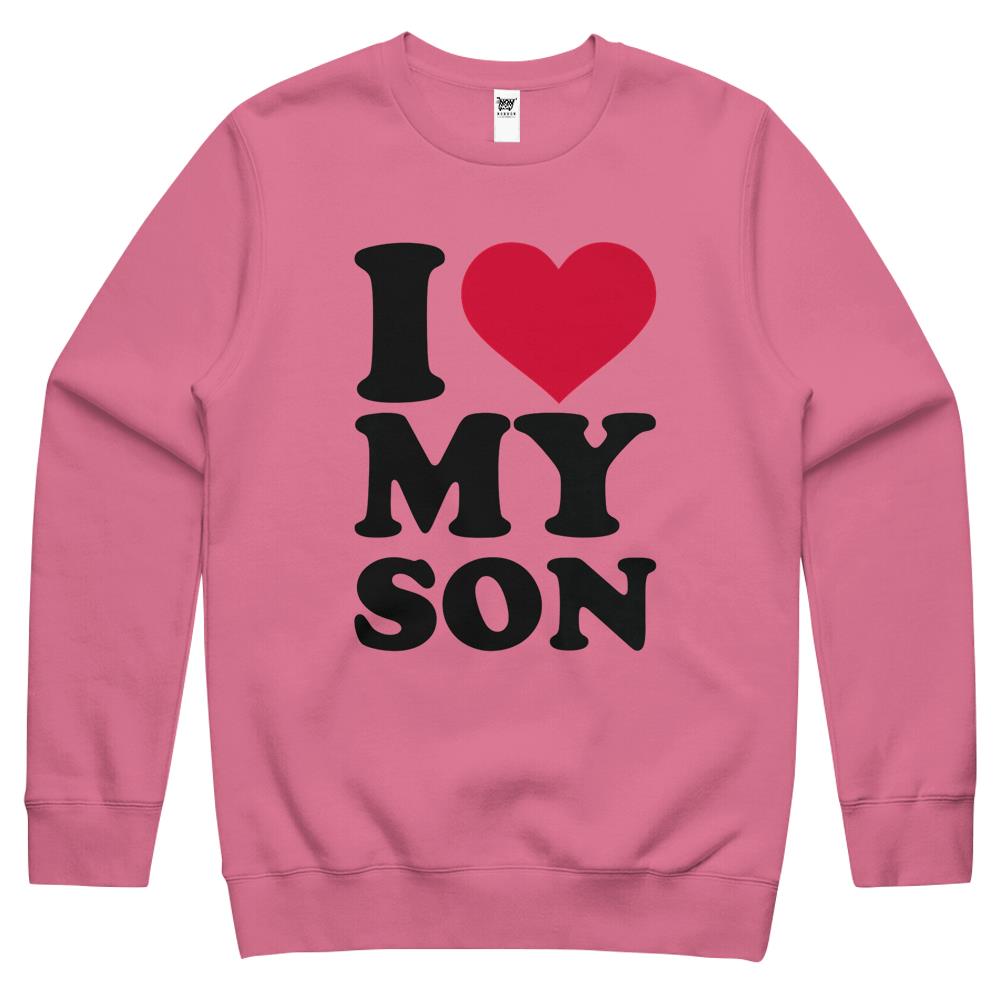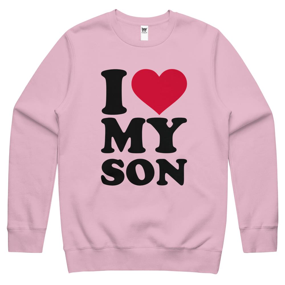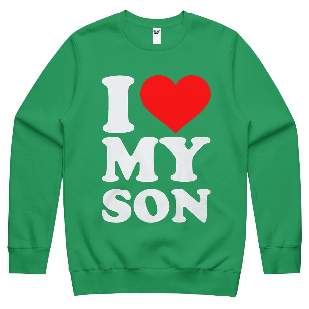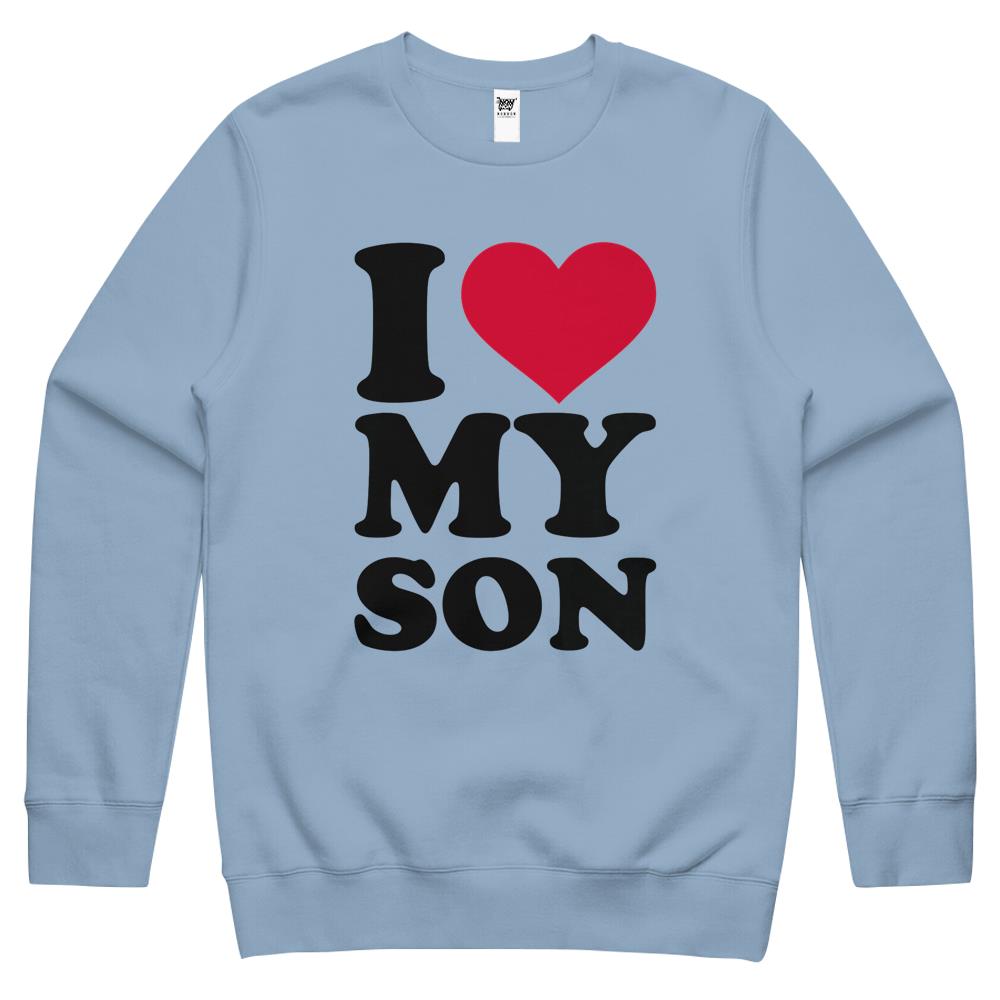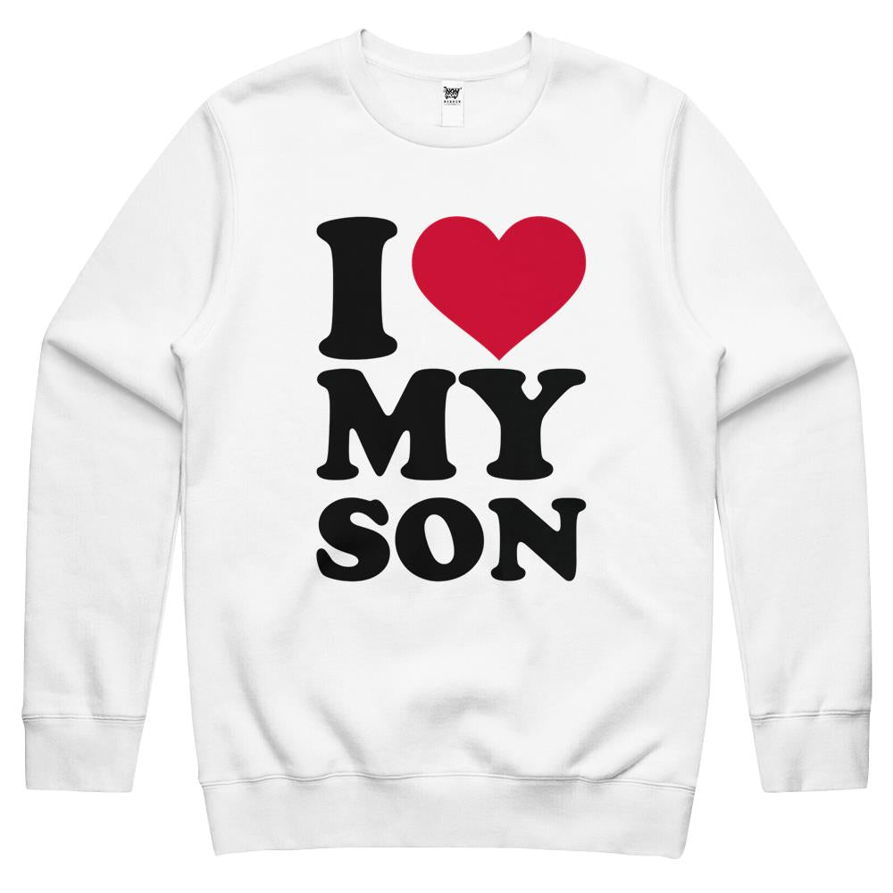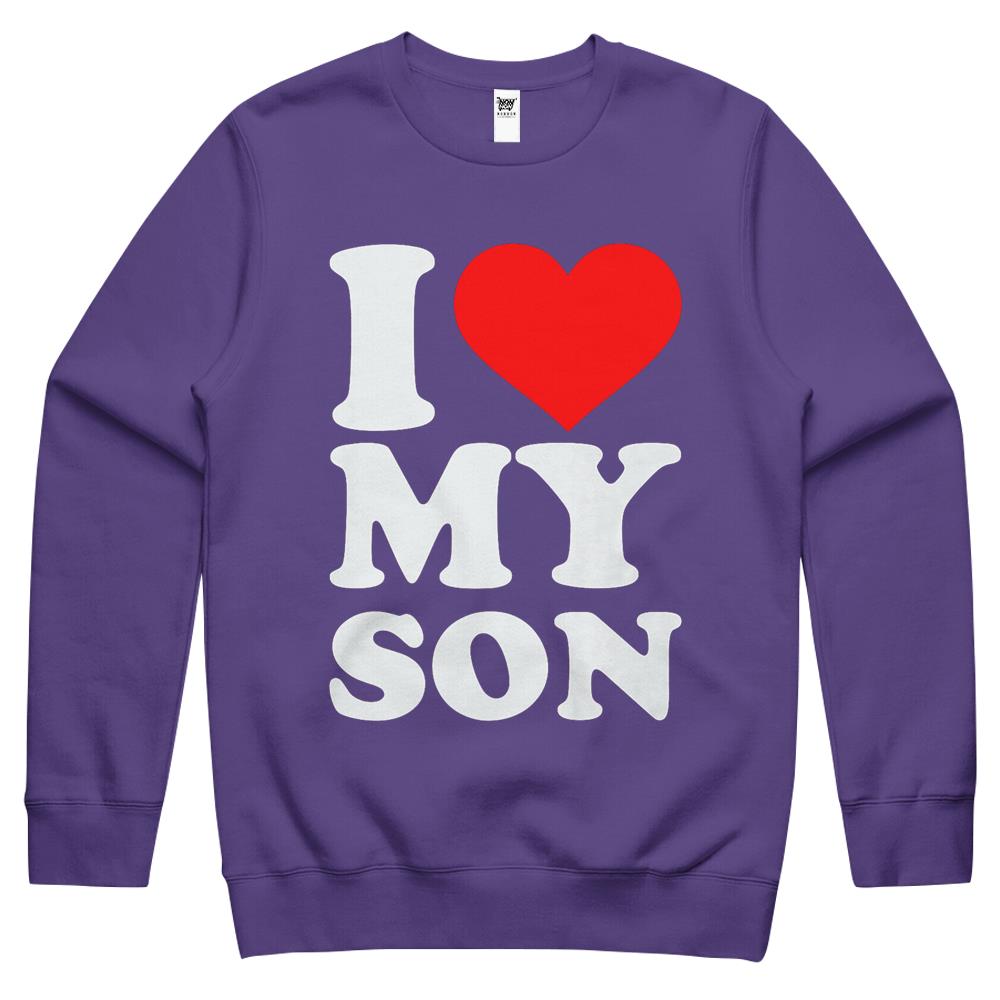 So whether you're looking to show off your own name or create a personalized gift for someone special, LateAndLow Store has got you covered. Start designing your own custom I Love My Son 2 Crewneck Sweatshirt print-on-demand product today, and let us bring your vision to life!