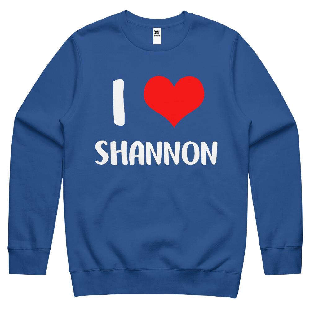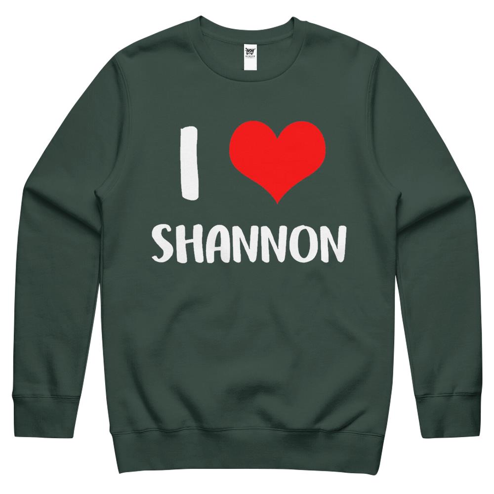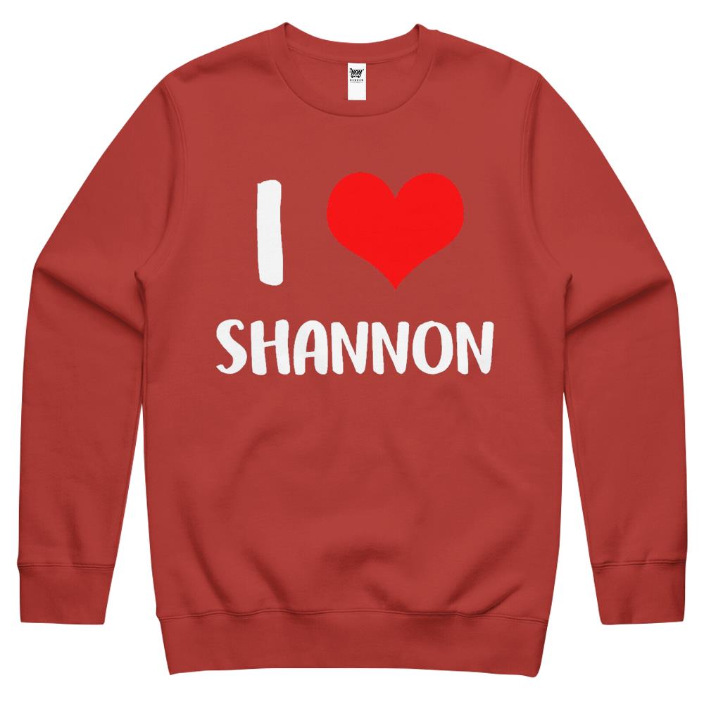 So whether you're looking to show off your own name or create a personalized gift for someone special, LateAndLow Store has got you covered. Start designing your own custom I Love Shannon My Valentine Sorry Ladies Guys Heart Belongs Crewneck Sweatshirt print-on-demand product today, and let us bring your vision to life!