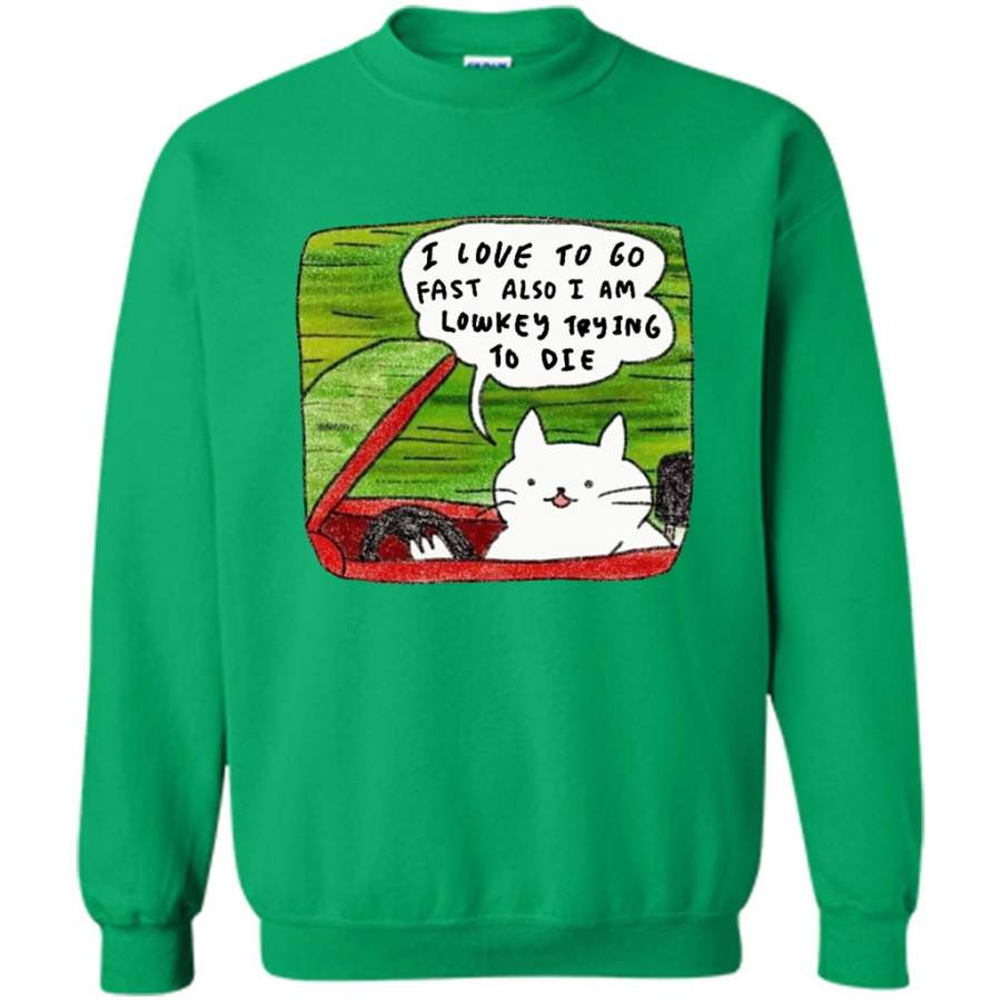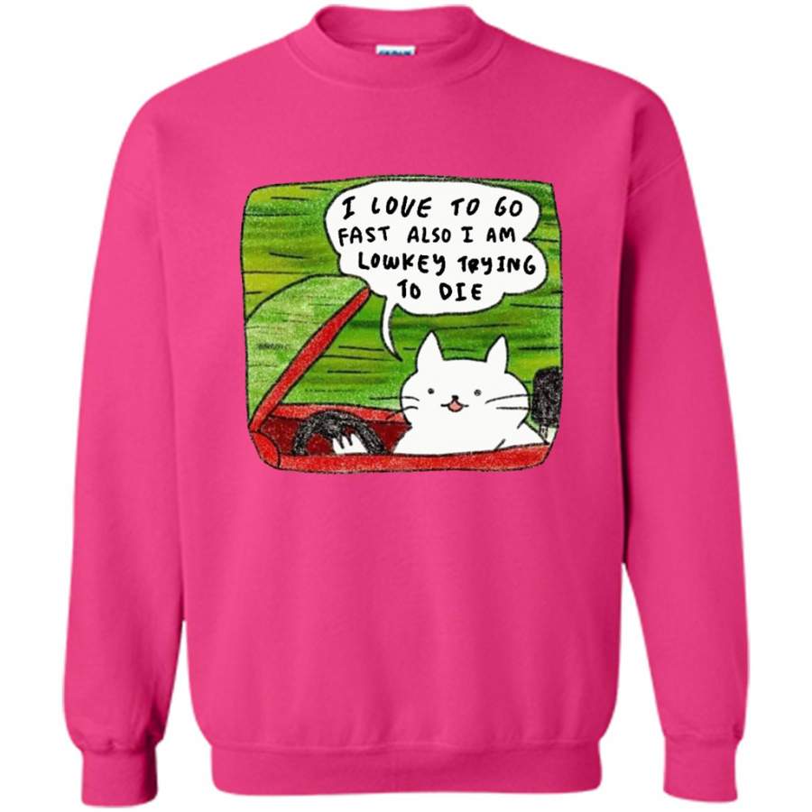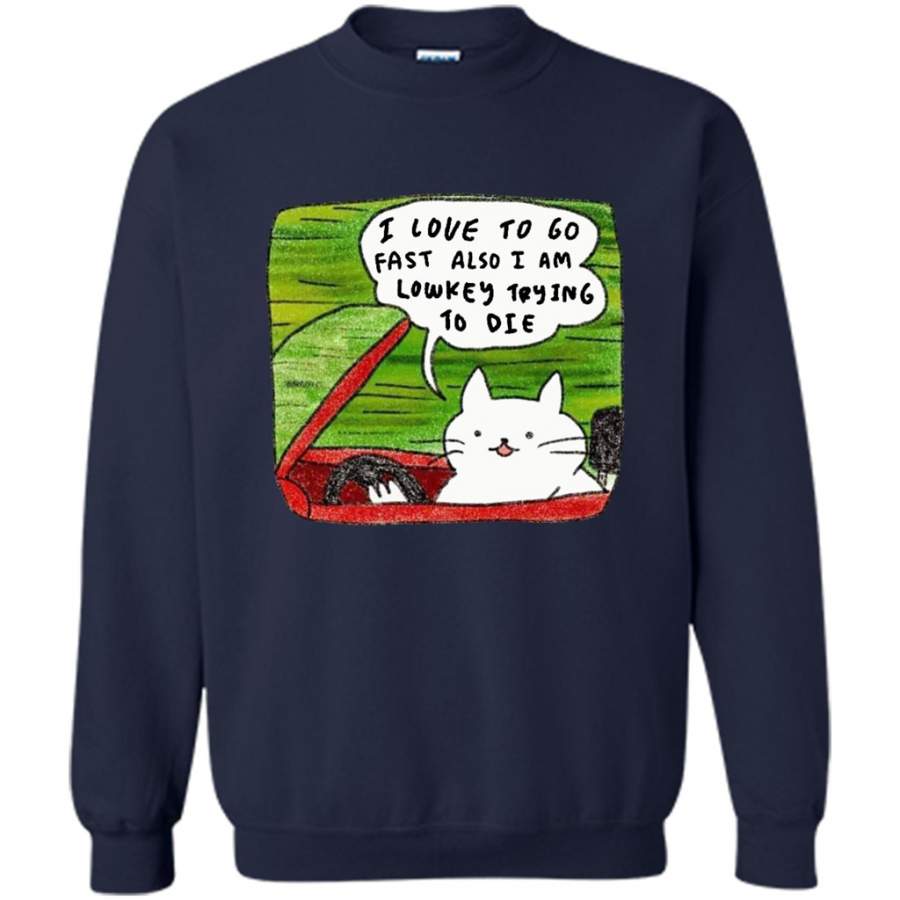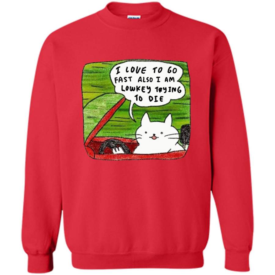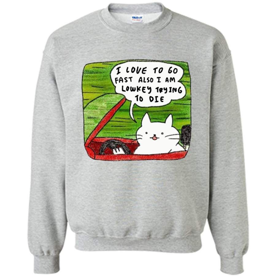 I love To Go Fast Also I Am Lowkey Trying To Die, Hand Drawing – Gildan Crewneck Sweatshirt