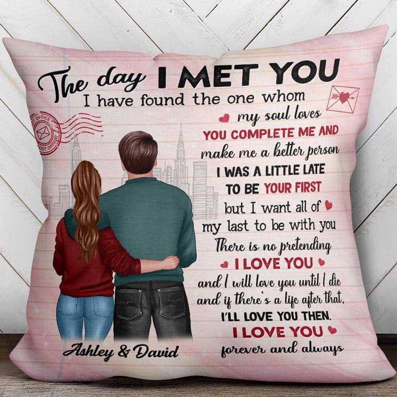 So whether you're looking to show off your own name or create a personalized gift for someone special, LateAndLow Store has got you covered. Start designing your own custom I Met You Couple Back View Valentine‘S Day Gift For Her For Him Personalized Pillow (Insert Included) print-on-demand product today, and let us bring your vision to life!