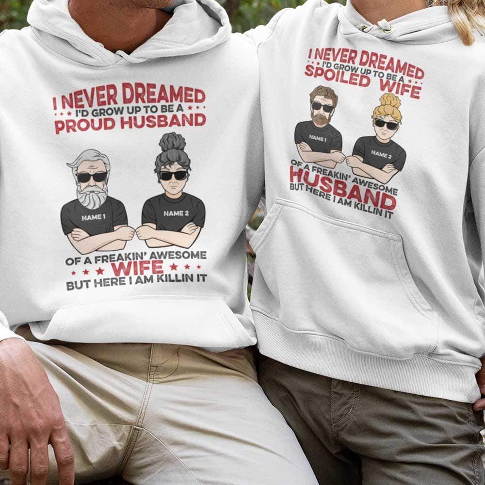 I Never Dreamed I’d Grow Up To Be A Proud Husband Of A Freakin’ Awesome Wife Family Custom Shirt, Gift For Couple
