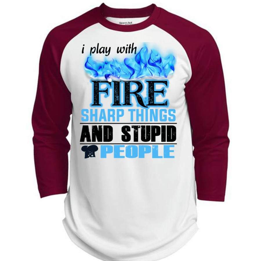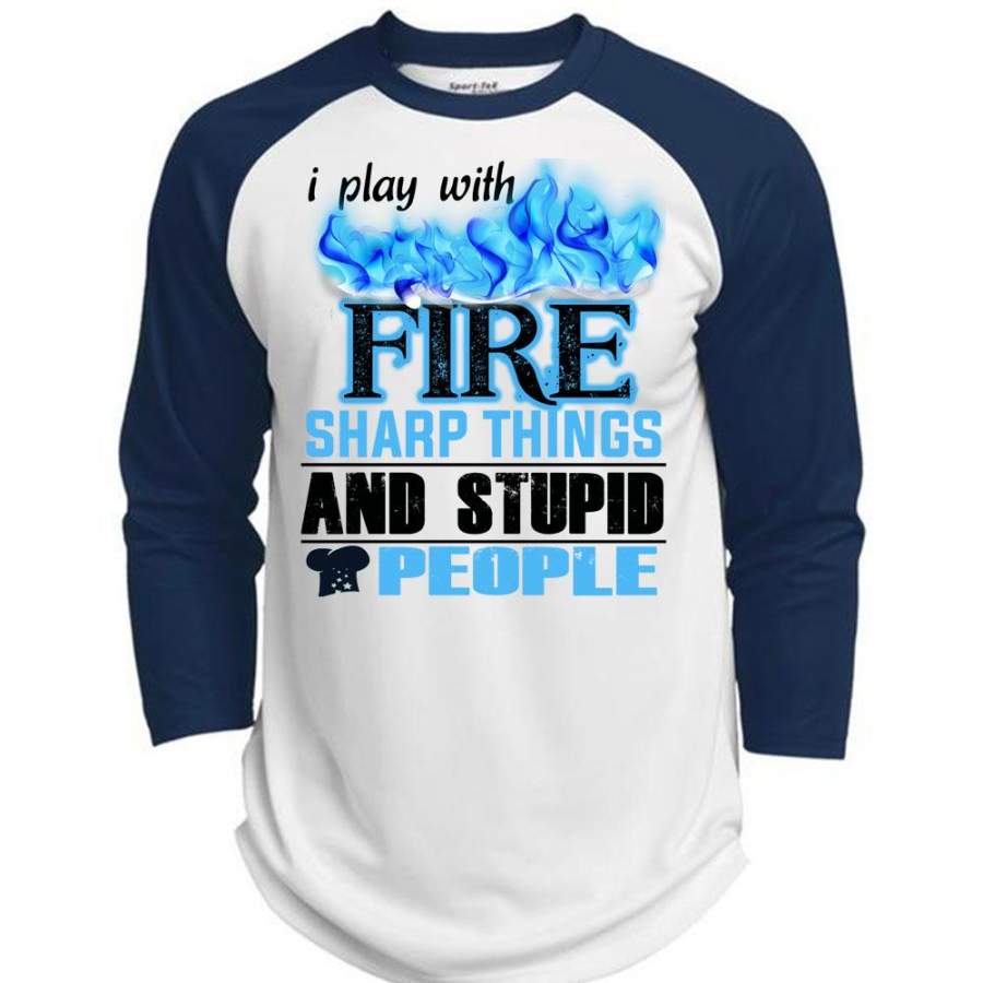 I Play With Fire Sharp Things T Shirt, I Love Firefighter T Shirt, Awesome T-Shirts (Polyester Game Baseball Jersey)