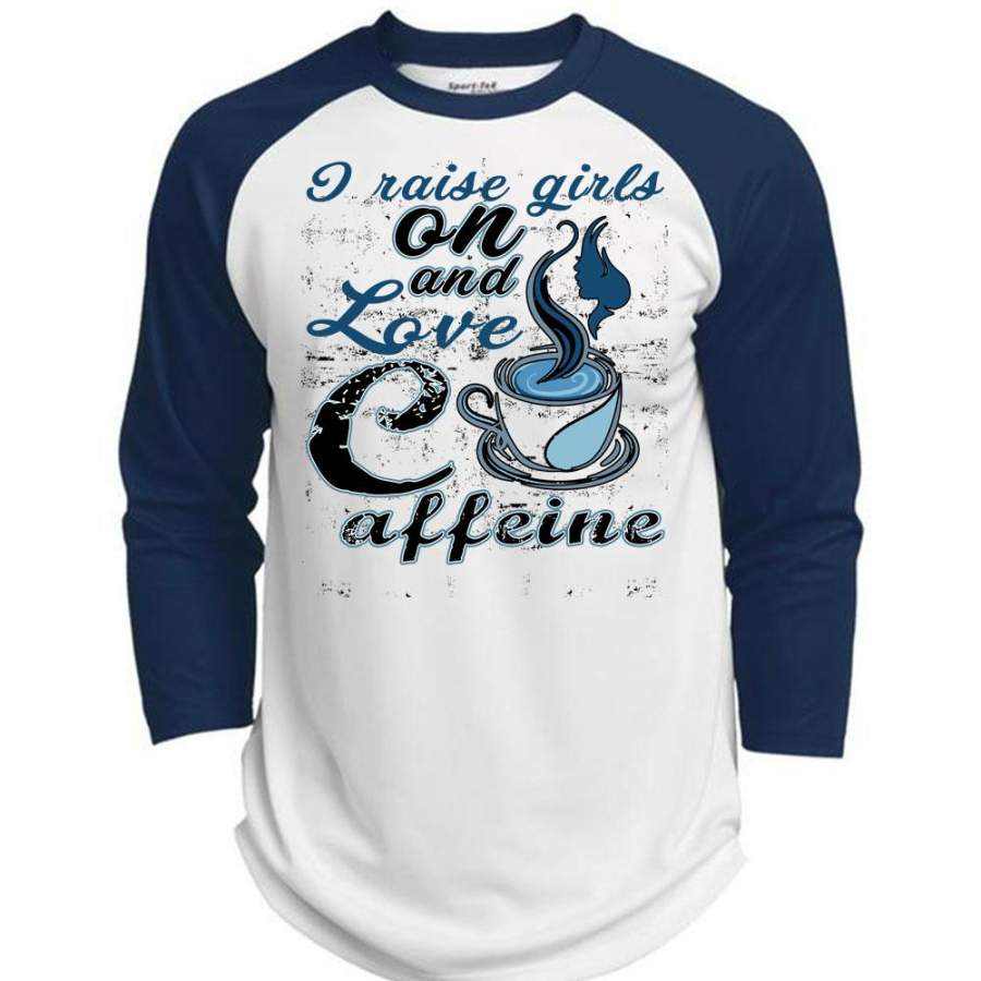 I Raise Girls On And Love Caffeine T Shirt, I Love Coffee T Shirt, Awesome T-Shirts (Polyester Game Baseball Jersey)