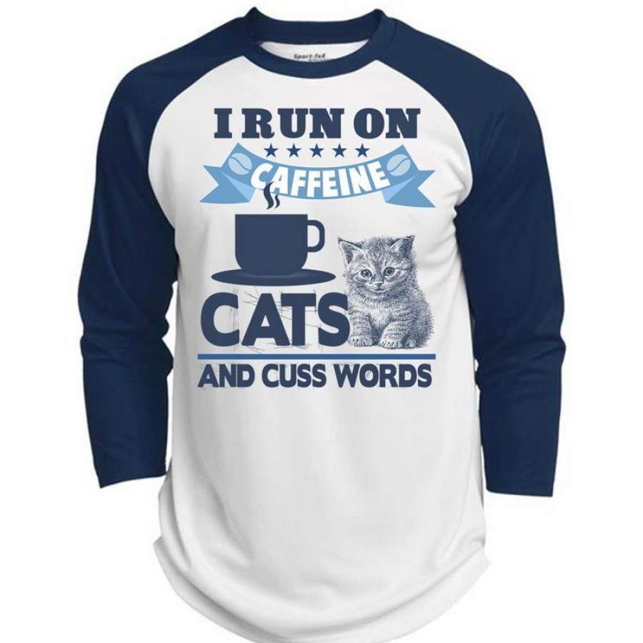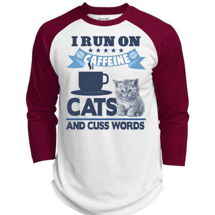 I Run On Caffeine Cats T Shirt, I Love My Cat T Shirt, Awesome T-Shirts (Polyester Game Baseball Jersey)