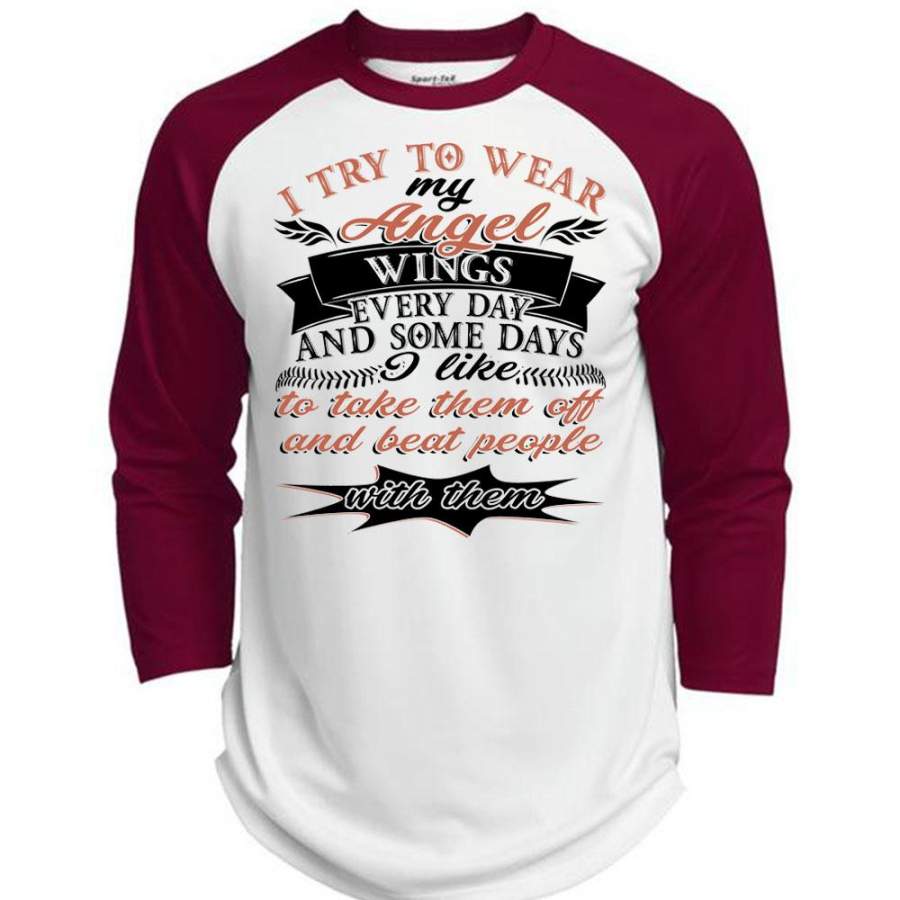 I Try To Wear My Angel Wings T Shirt, I Love My Life T Shirt, Awesome T-Shirts (Polyester Game Baseball Jersey)