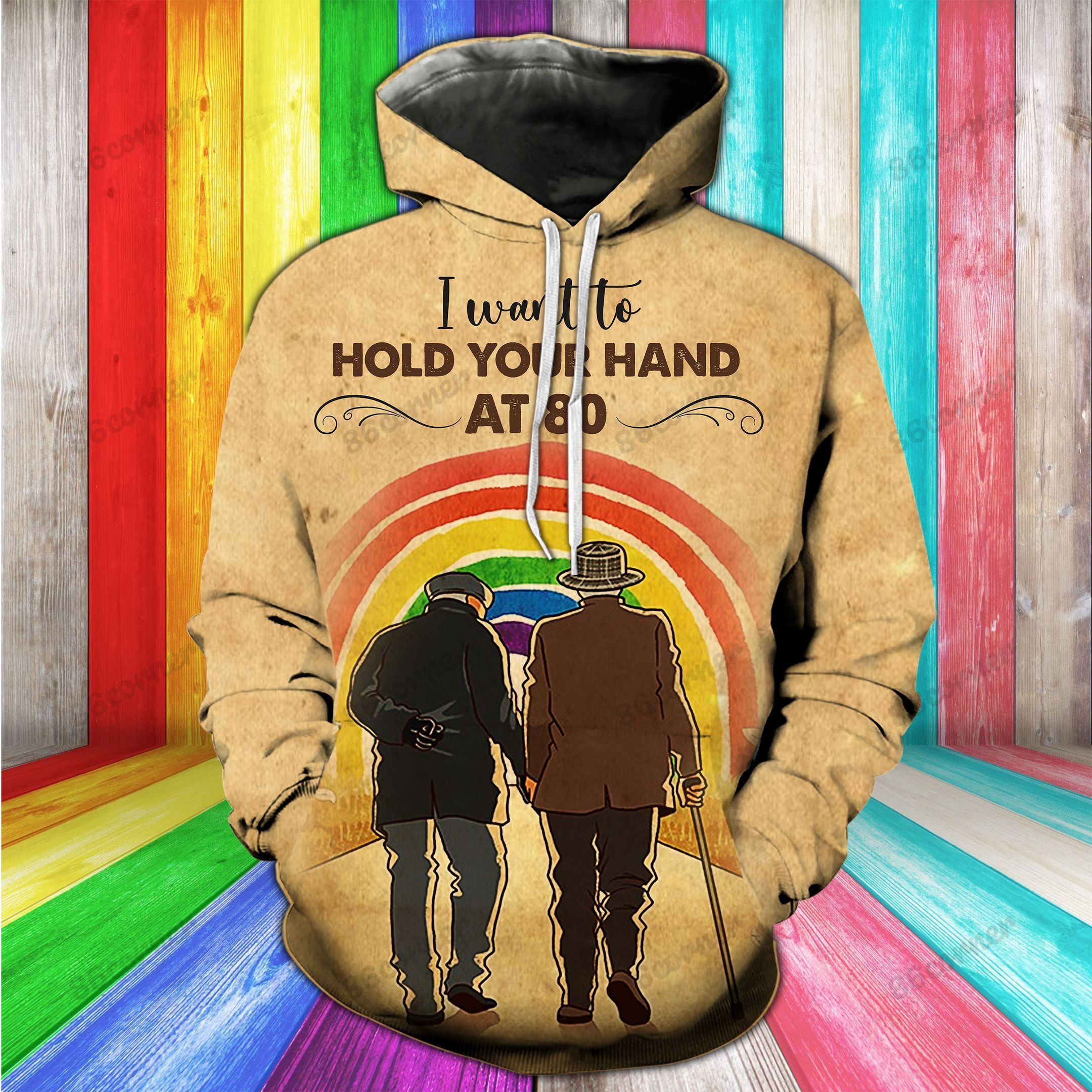 So whether you're looking to show off your own name or create a personalized gift for someone special, LateAndLow Store has got you covered. Start designing your own custom I Want To Hold Your Hands At 80 Lgbt Couple Hoodies print-on-demand product today, and let us bring your vision to life!