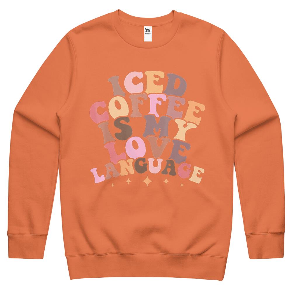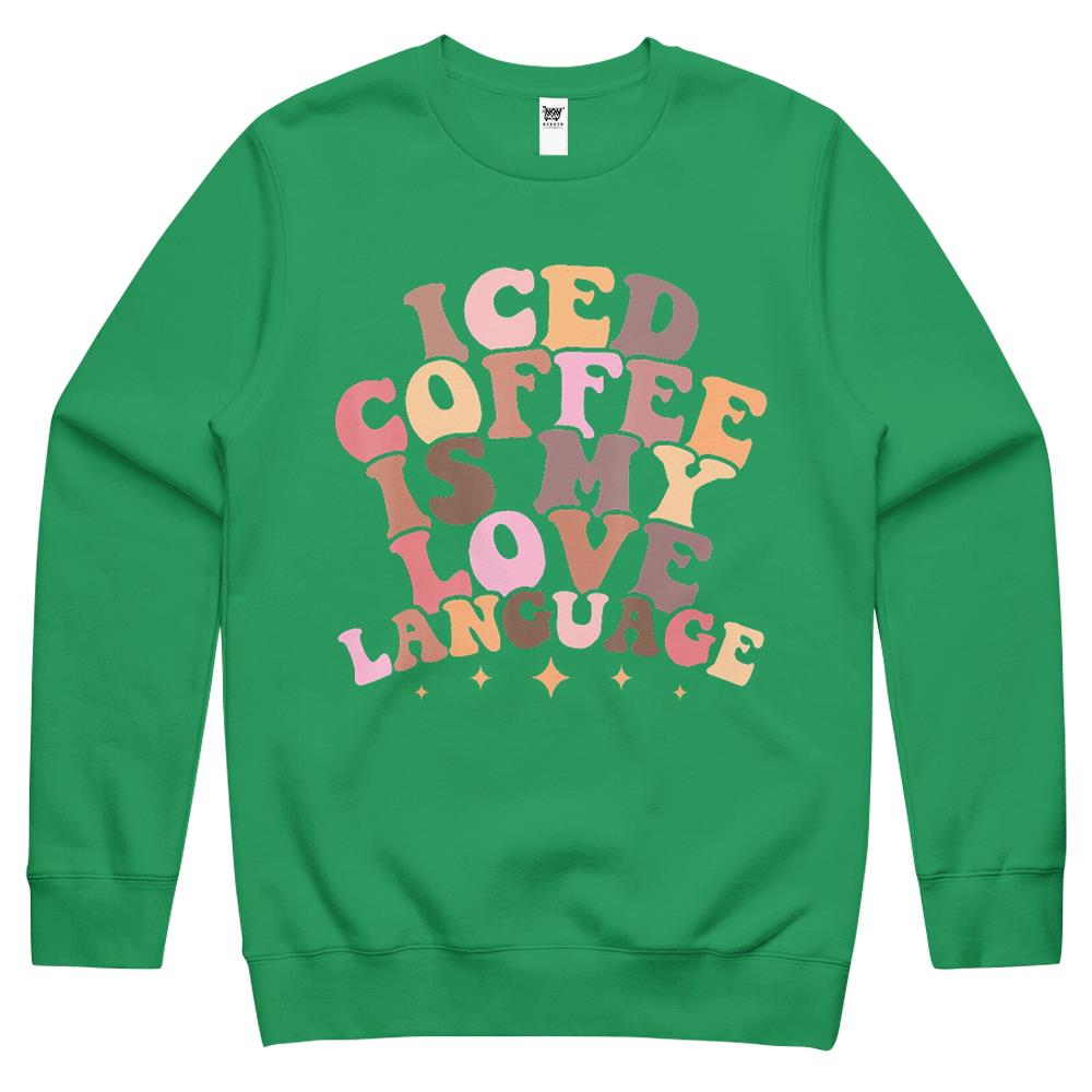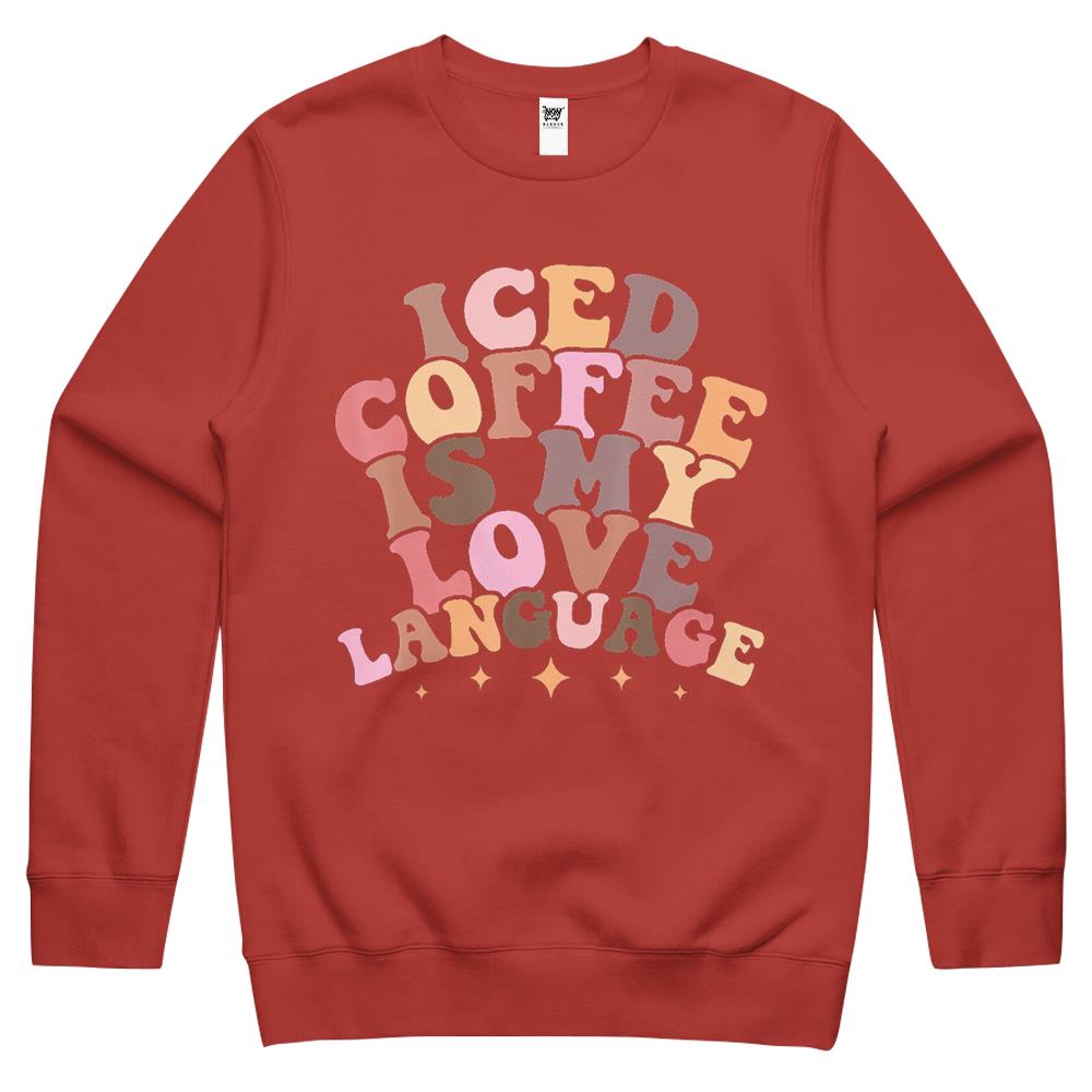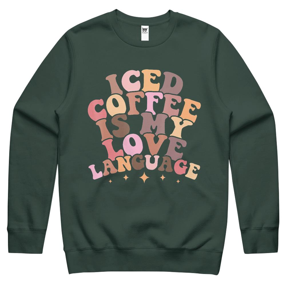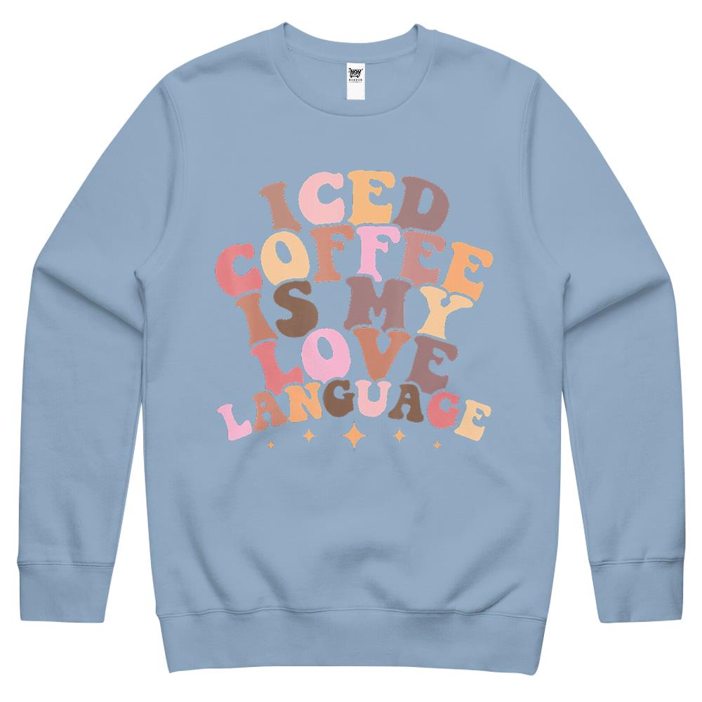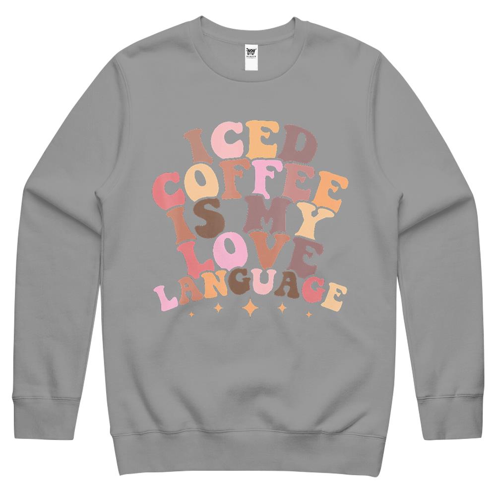So whether you're looking to show off your own name or create a personalized gift for someone special, LateAndLow Store has got you covered. Start designing your own custom Iced Coffee Is My Love Language Cute Valentine Present Crewneck Sweatshirt print-on-demand product today, and let us bring your vision to life!