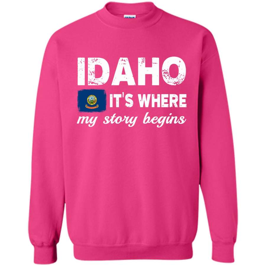 Idaho States – It’s Where My Love Story Begins – Gildan Crewneck Sweatshirt