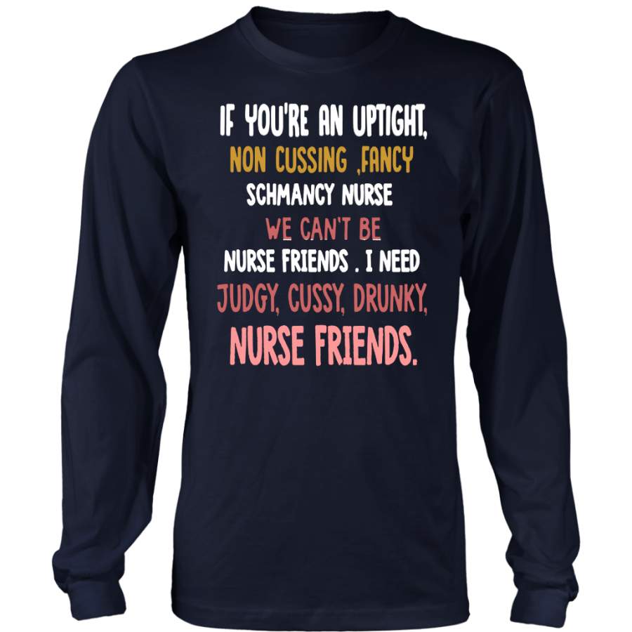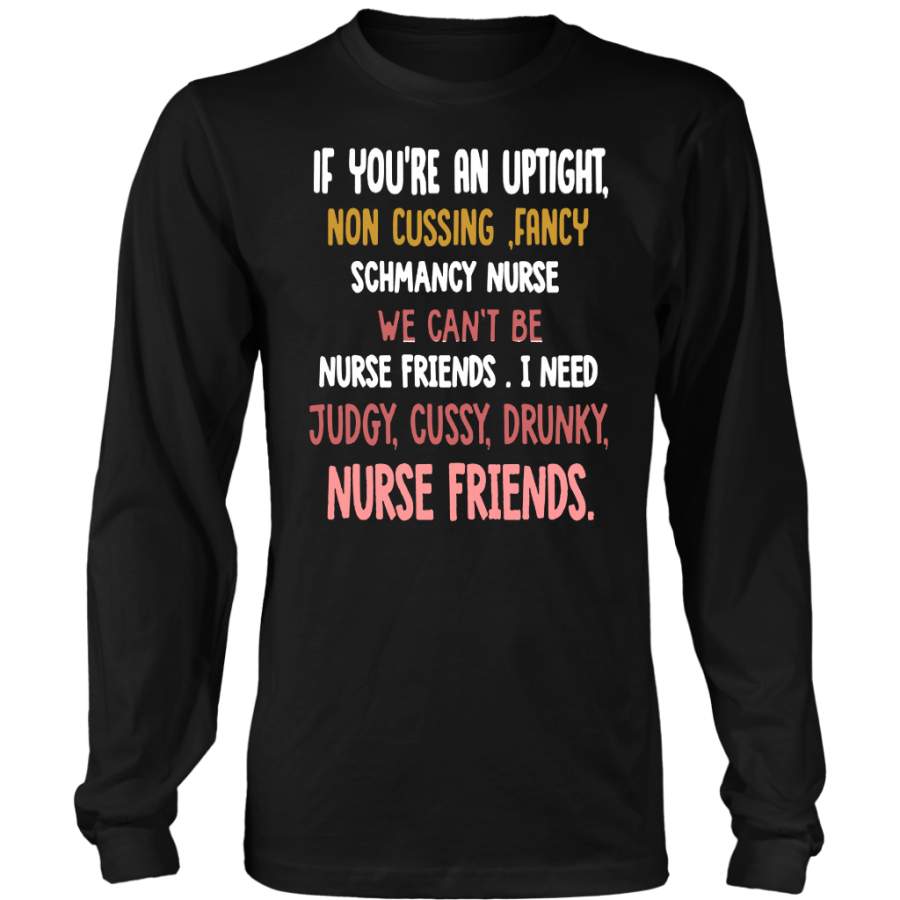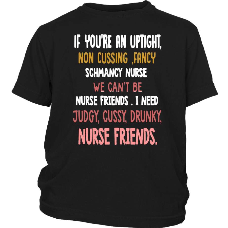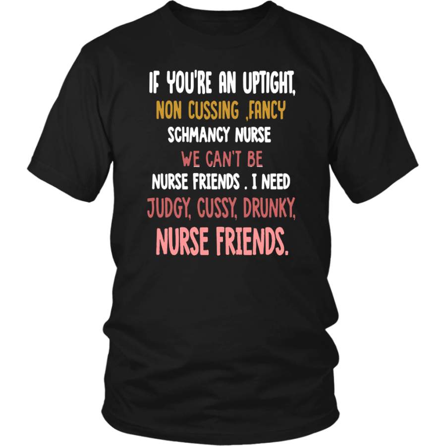 IF YOU ARE AN UPTIGHT – NON CUSSING – FANCY – SCHMANCY NURSE – WE CAN’T BE NURSE FRIENDS – I NEED JUDGY – CUSSY -DRUNKY – NURSE FRIENDS SHIRT