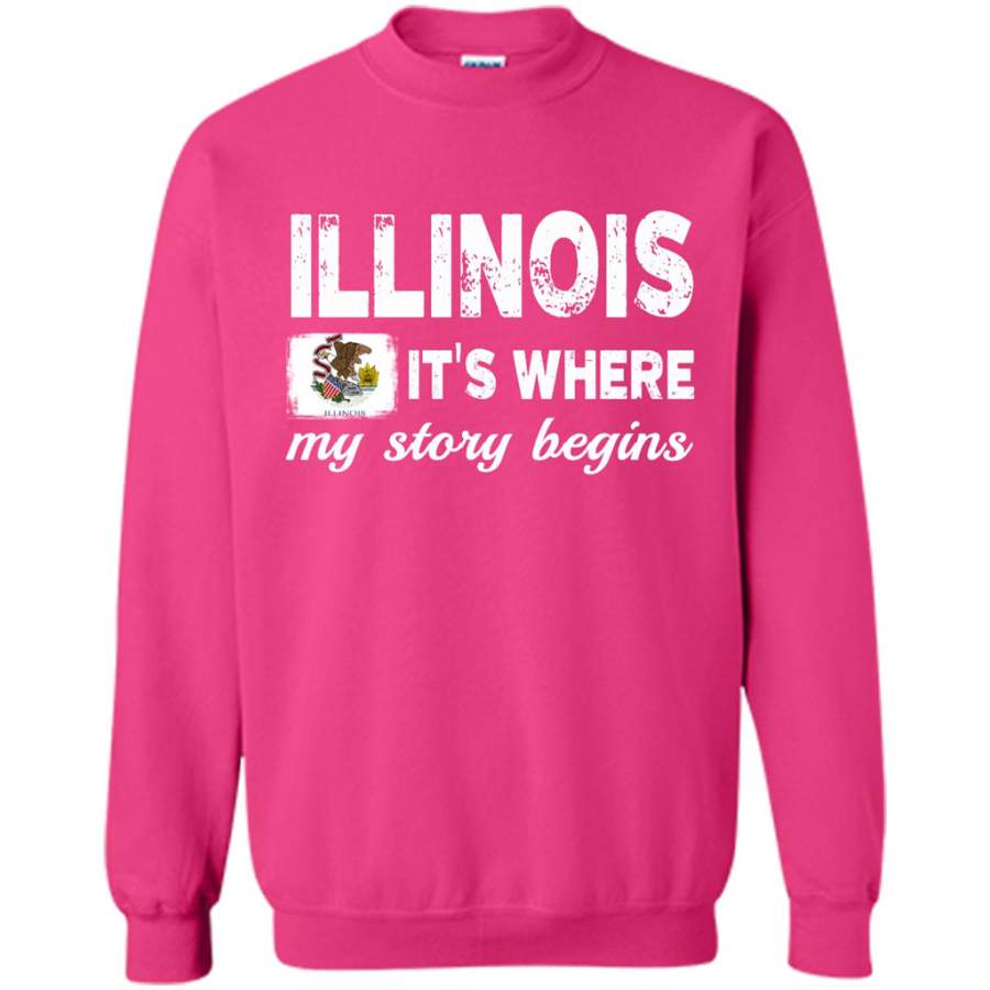 Illinois States – It’s Where My Love Story Begins – Gildan Crewneck Sweatshirt