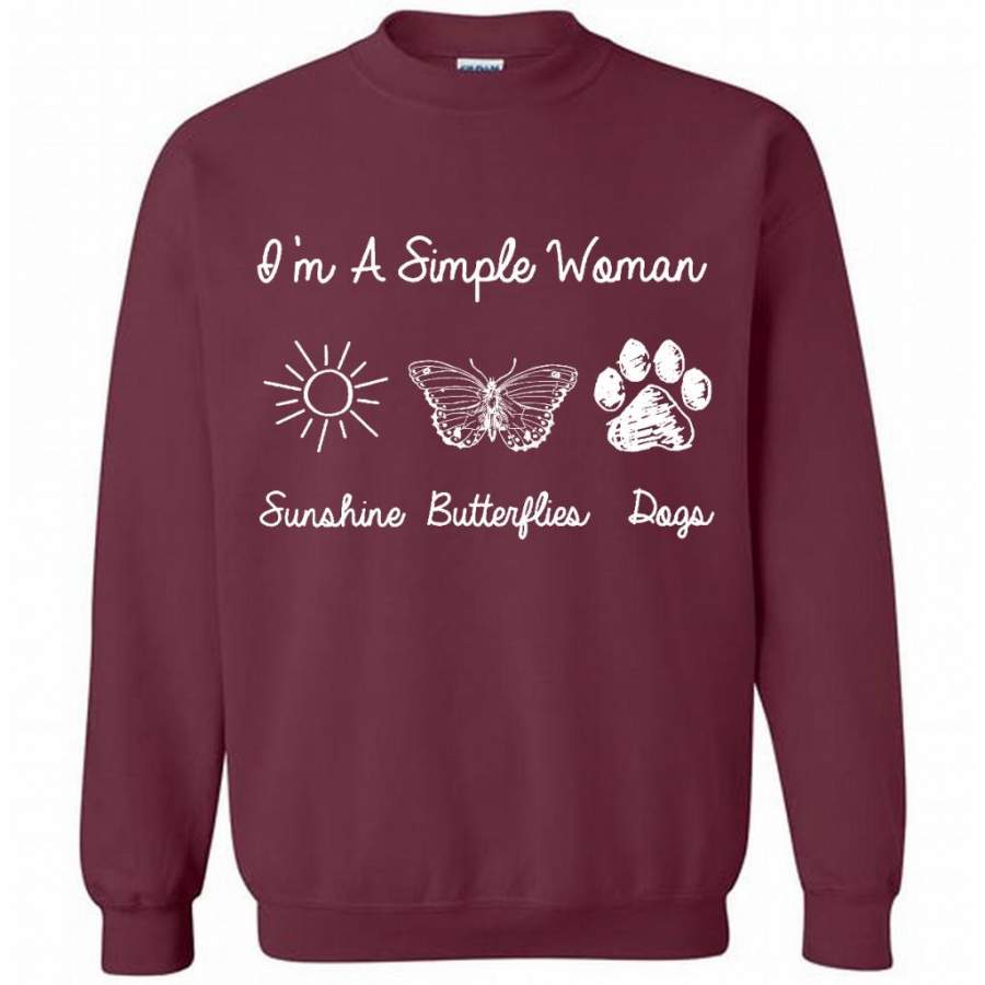 I’m A Simple Who Loves Woman Sunshine Butterflies Dogs B – Gildan Crewneck Sweatshirt