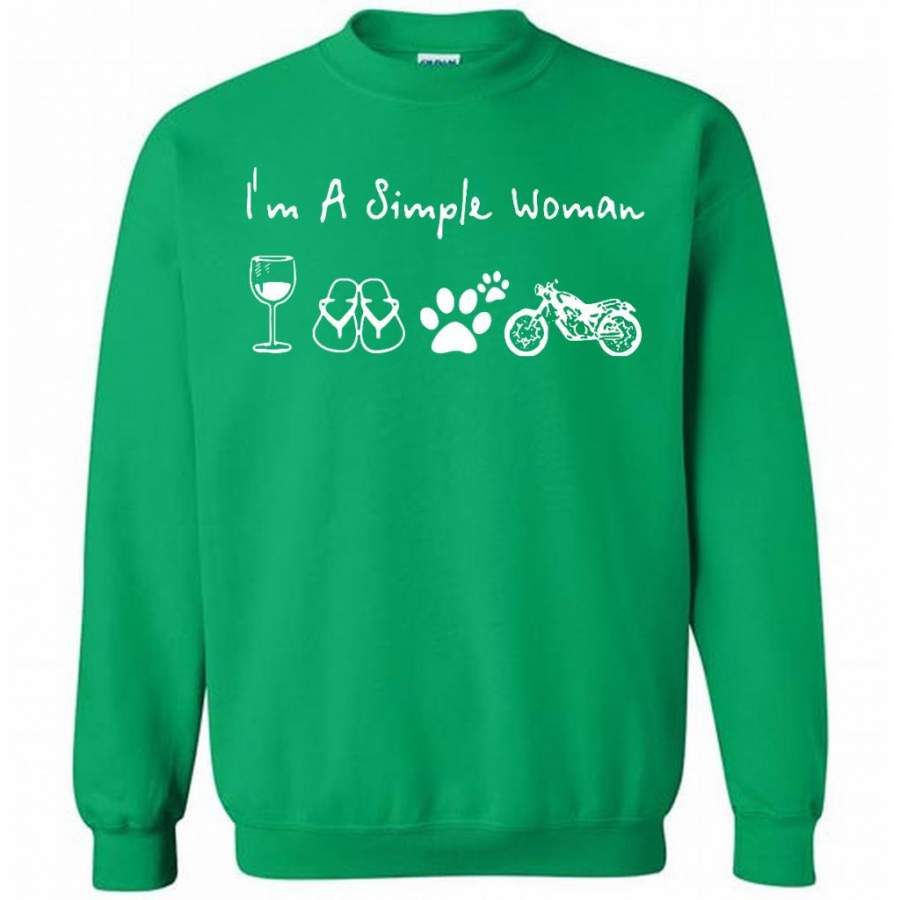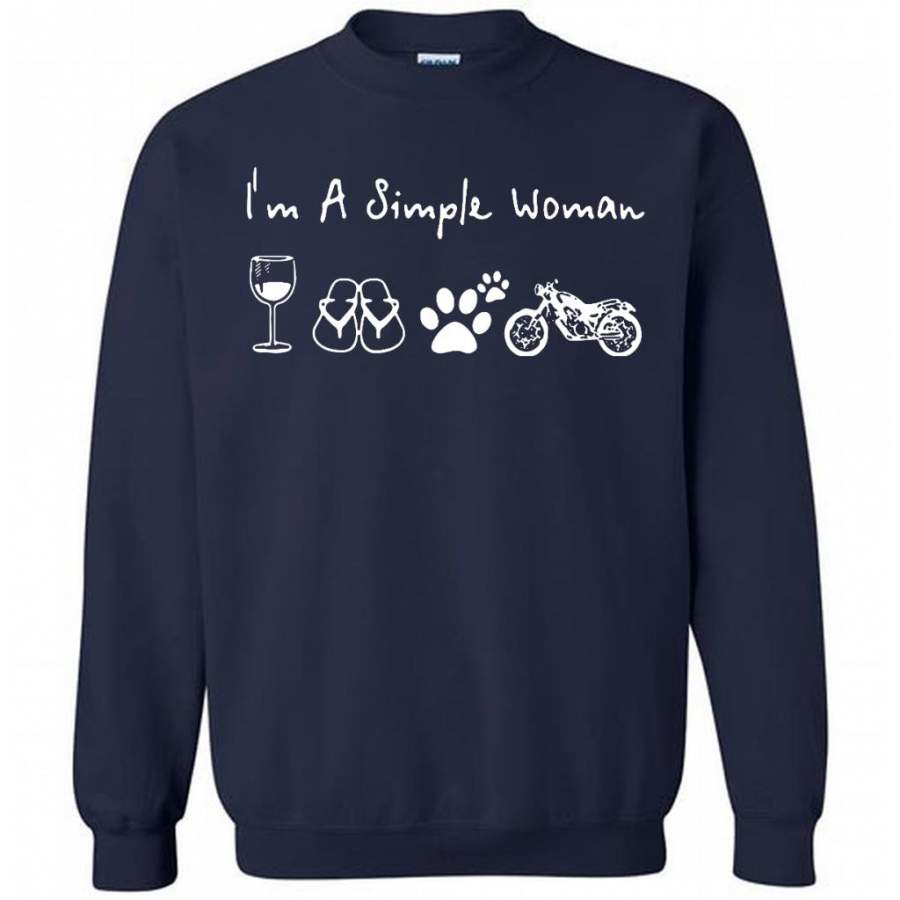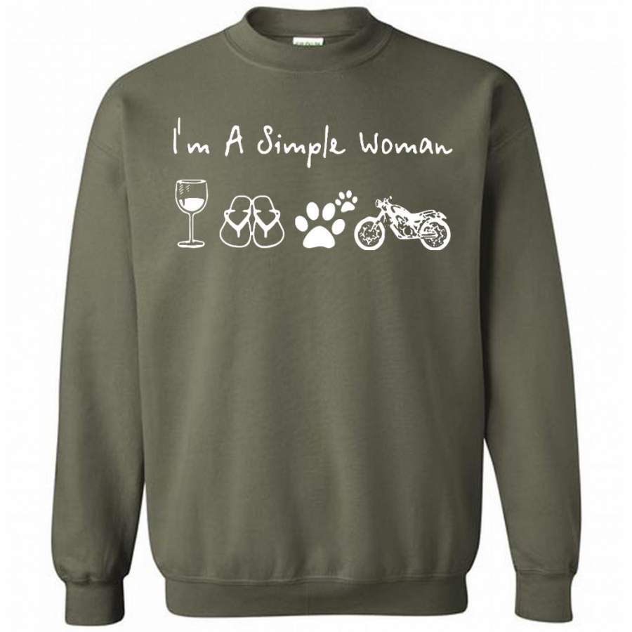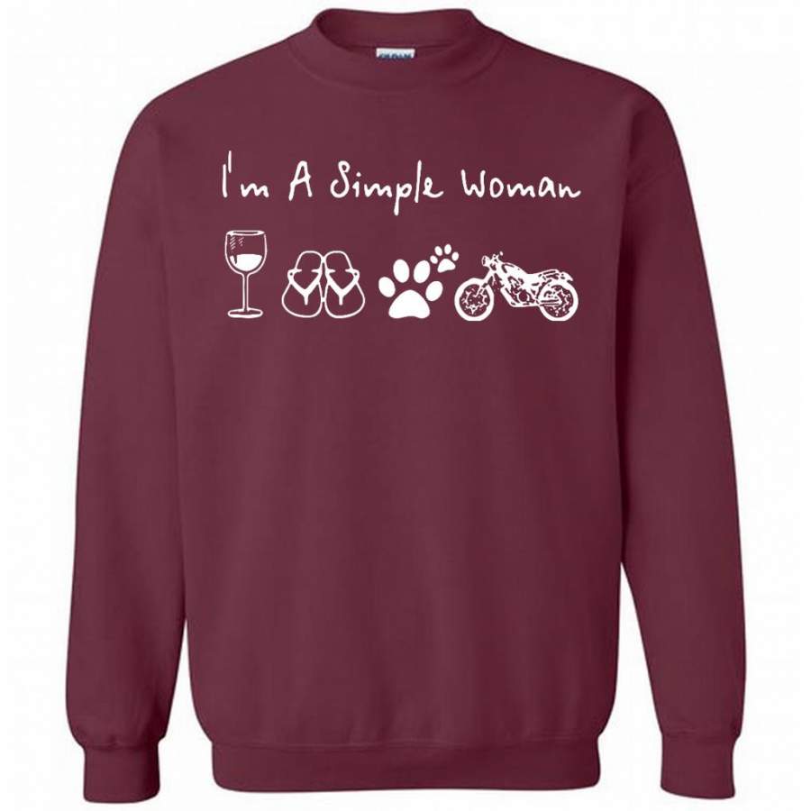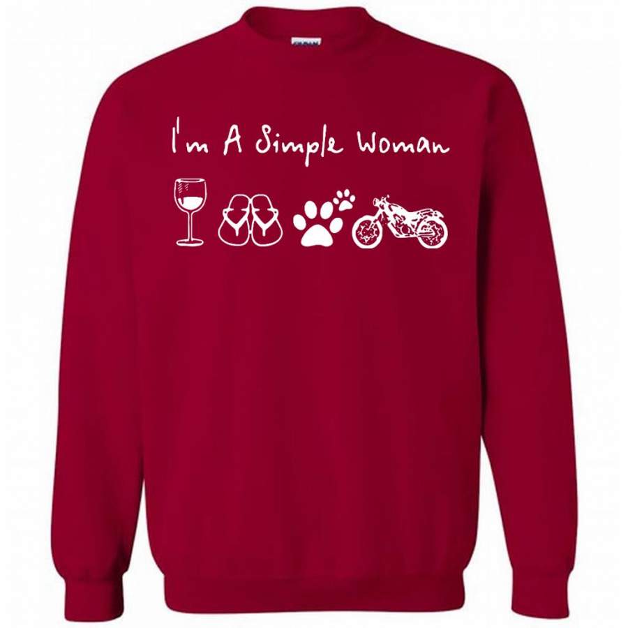 I’m A Simple Woman Love Wine, Flip Flop, Dog and Motorcycle – Gildan Crewneck Sweatshirt