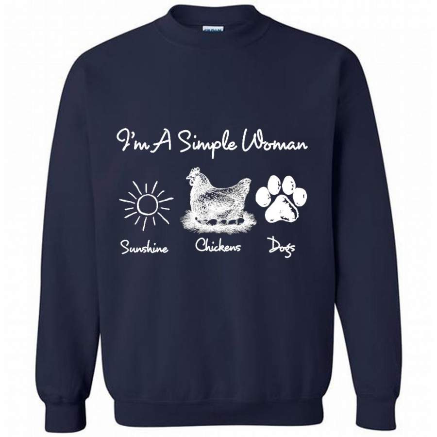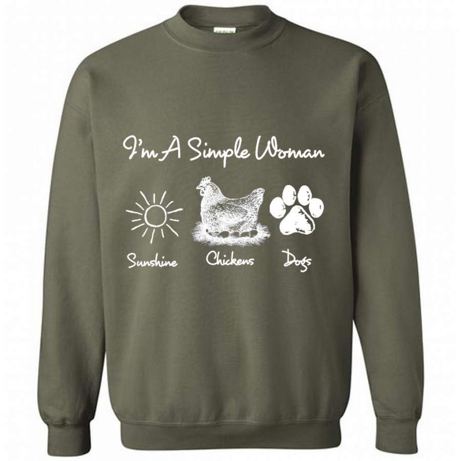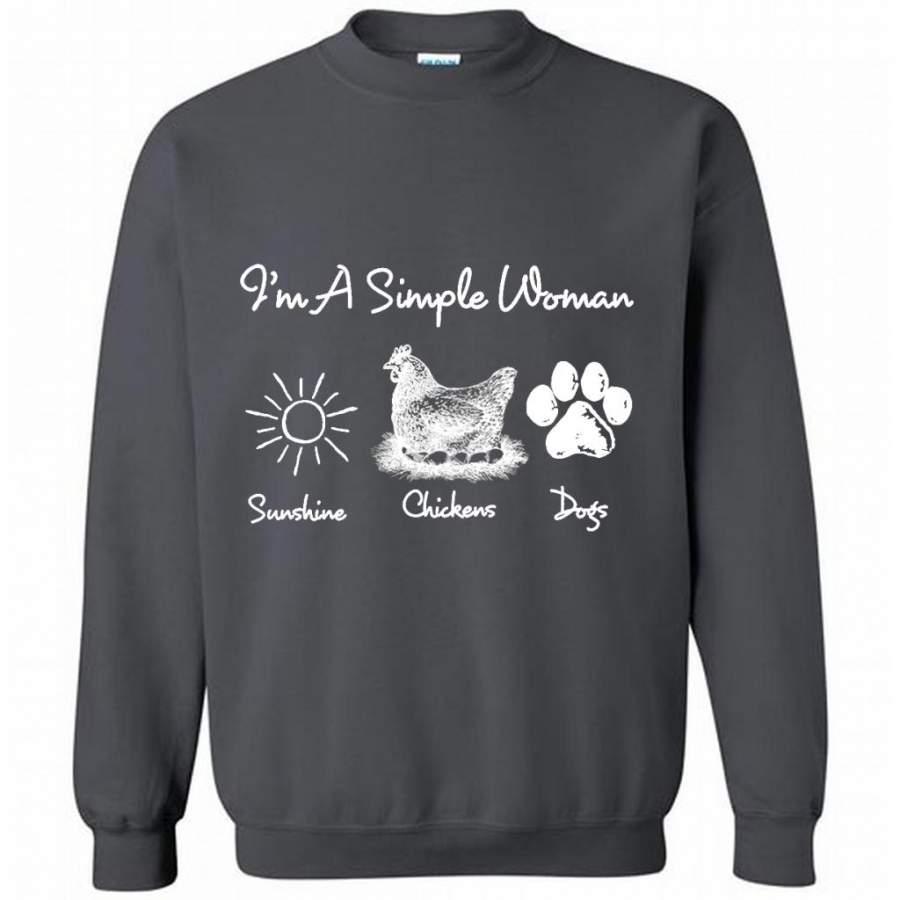 I’m A Simple Woman Loves Sunshine Chickens Dogs – Gildan Crewneck Sweatshirt