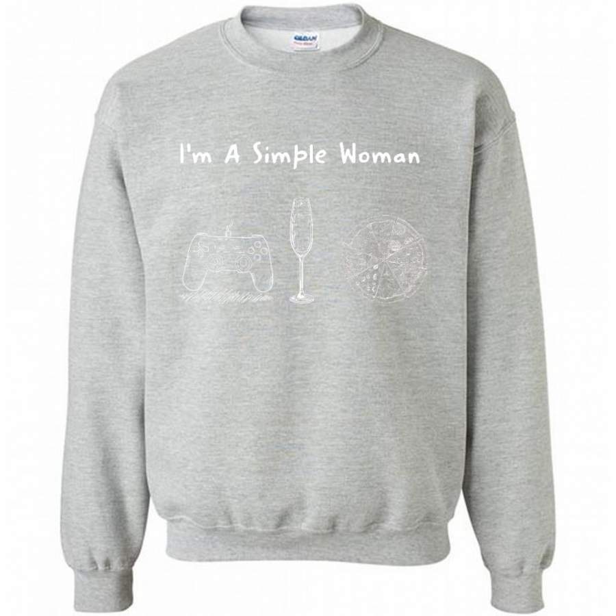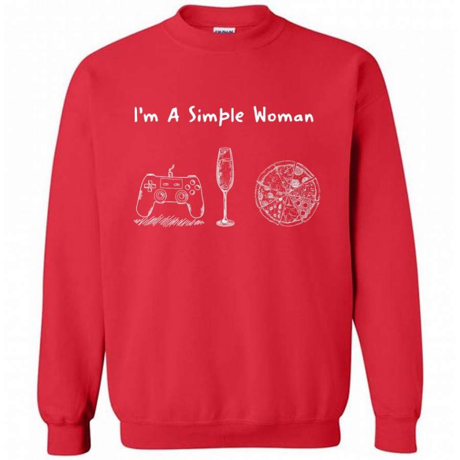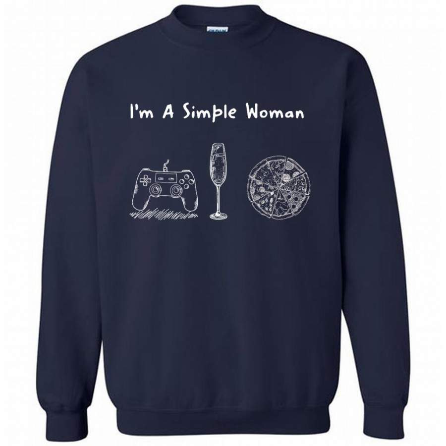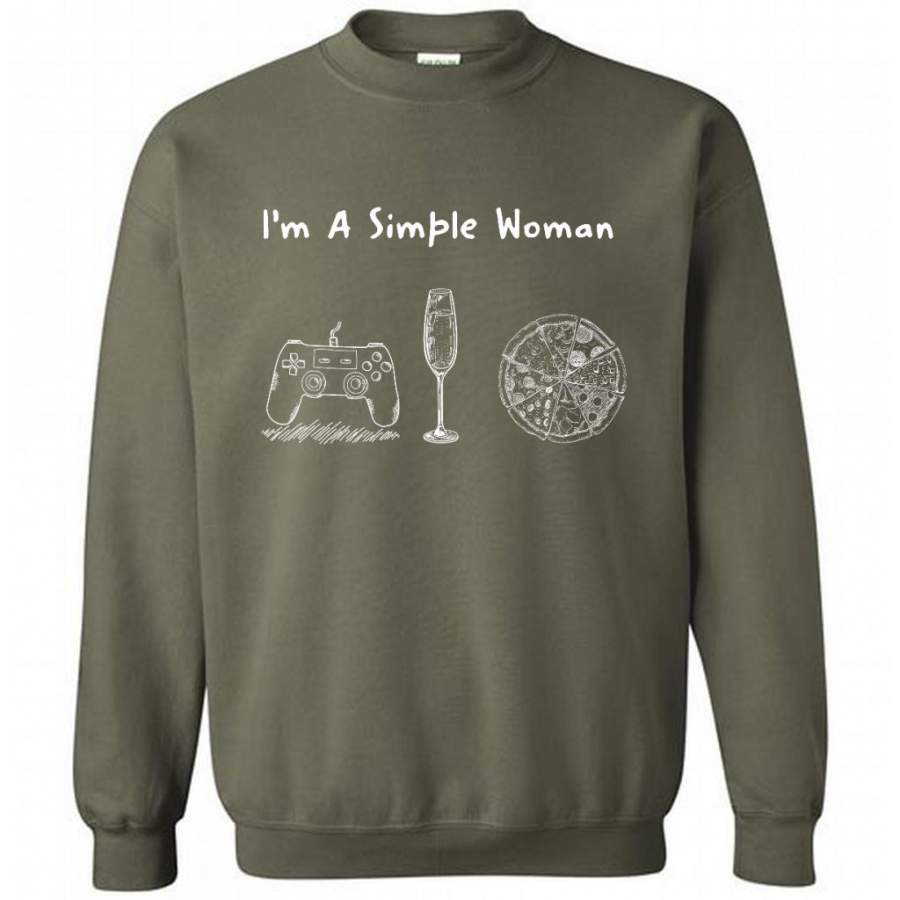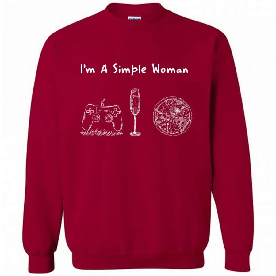 I’m A Simple Woman Who Loves Games Wine And Pizza – Gildan Crewneck Sweatshirt
